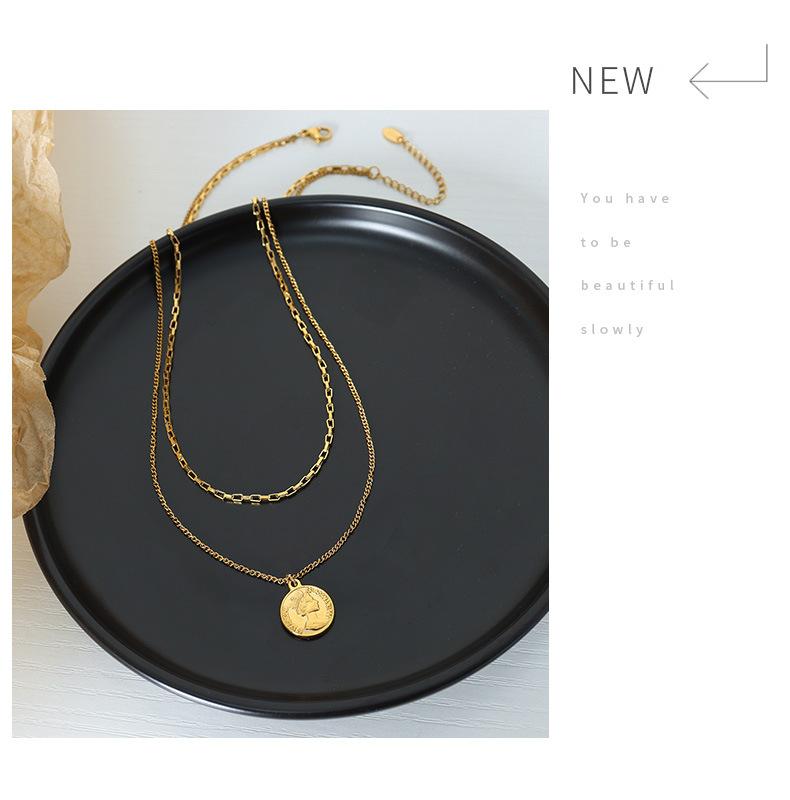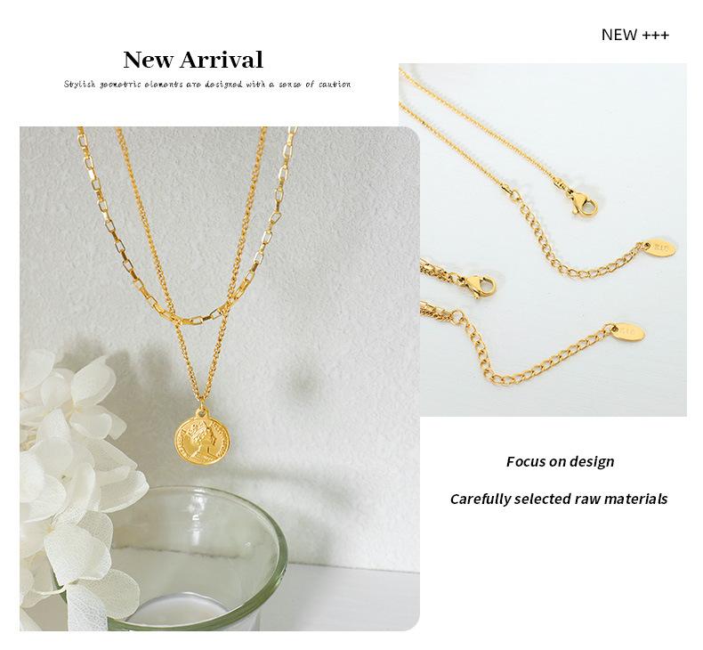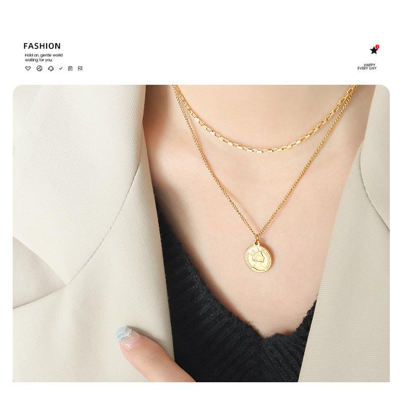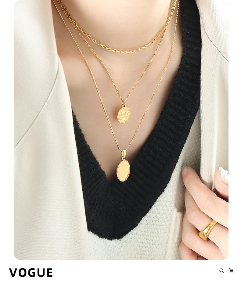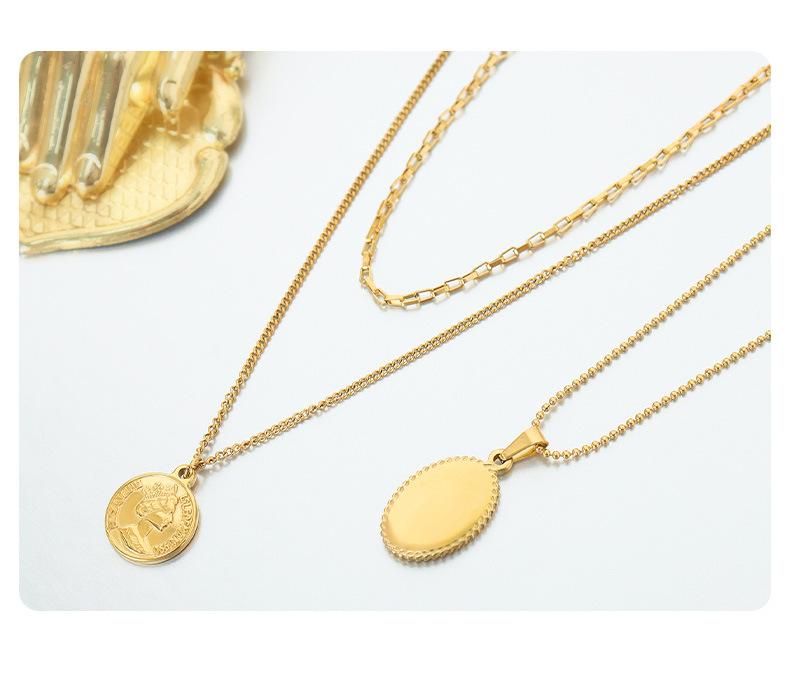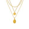 Joyería de moda de estilo occidental acero titanio chapado en oro que no se desvanece collar con colgante redondo de figura apilada de tres capas