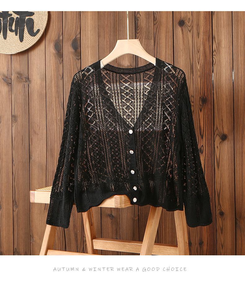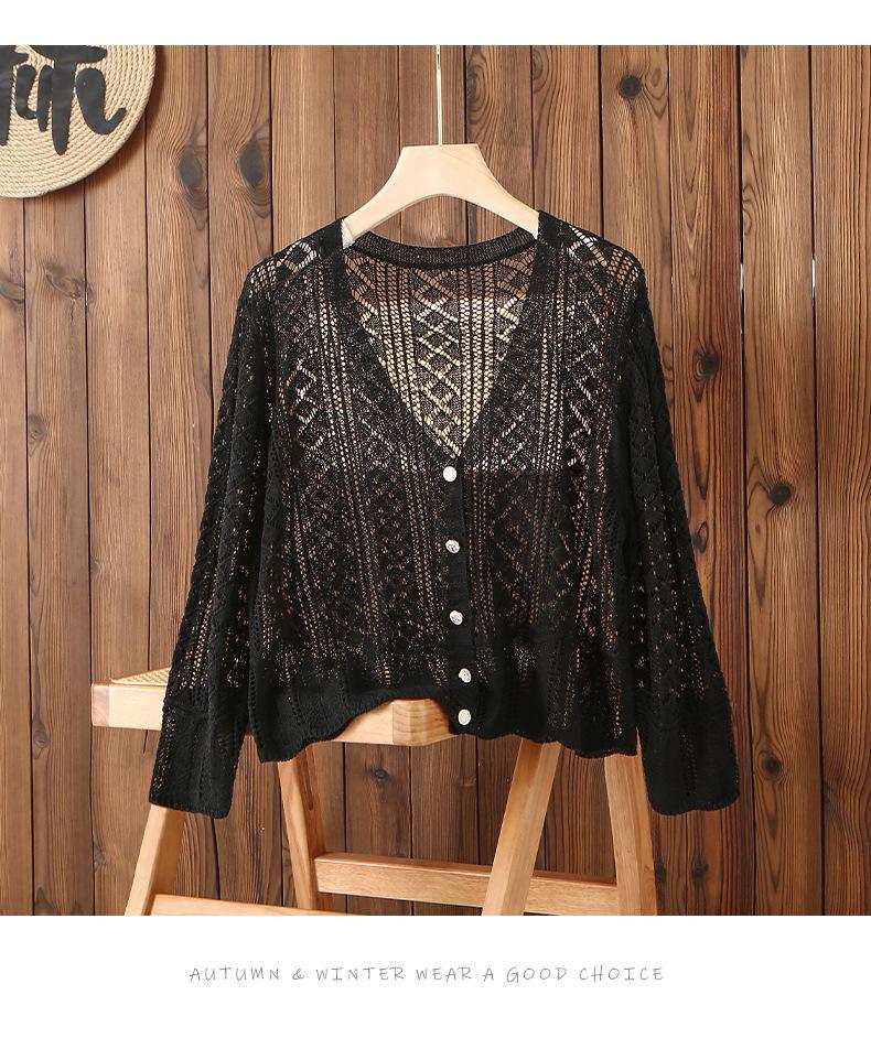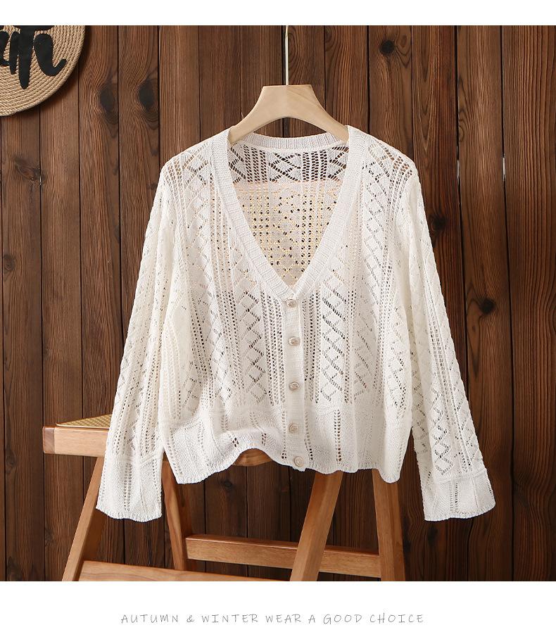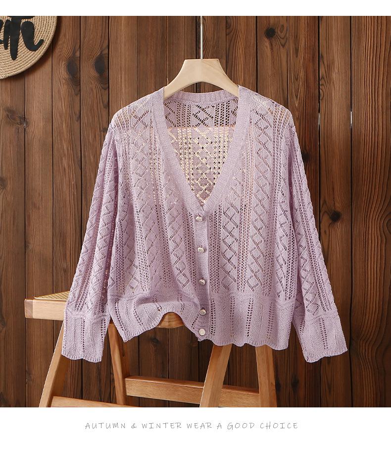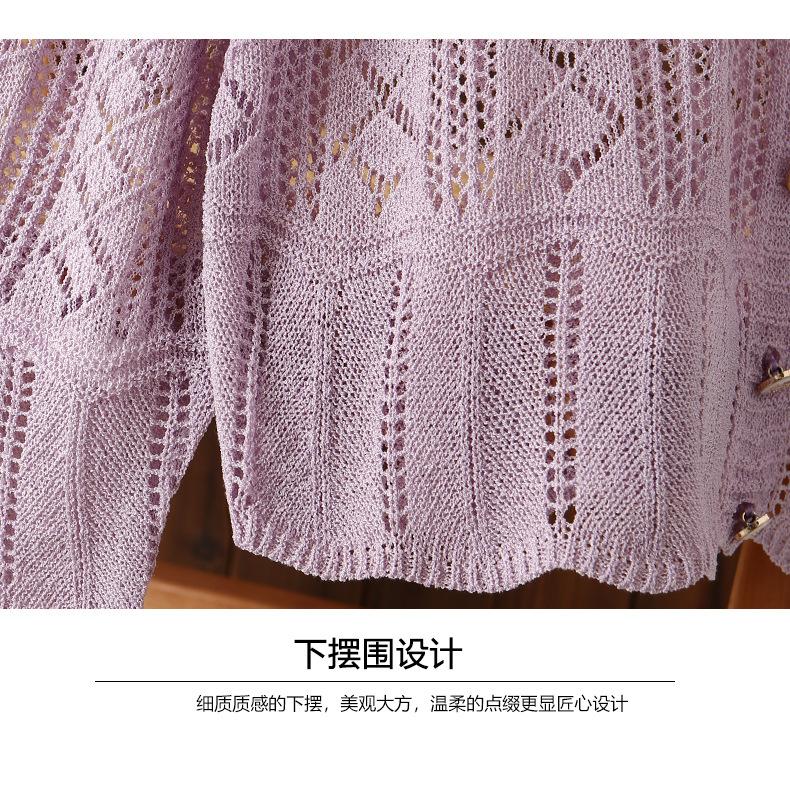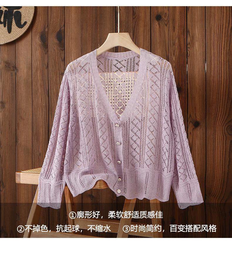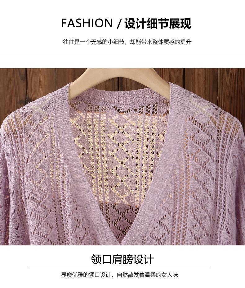 Cárdigan de punto de seda helada hueca para mujer, talla grande 200 kg, abrigo tipo chal de verano holgado de manga larga estilo extranjero, fino