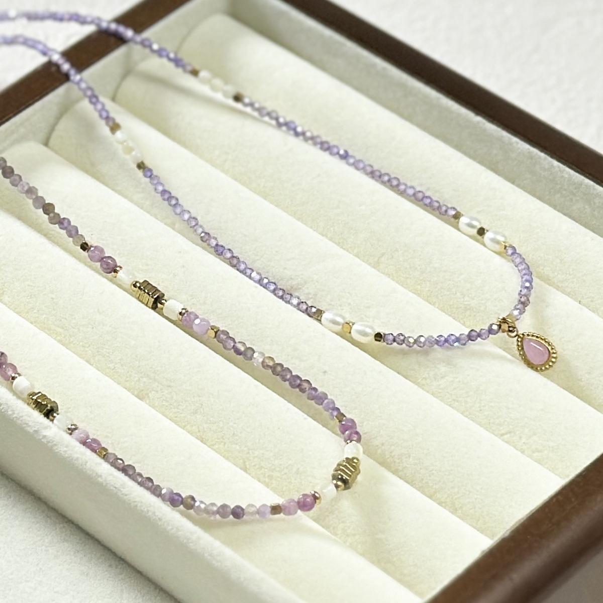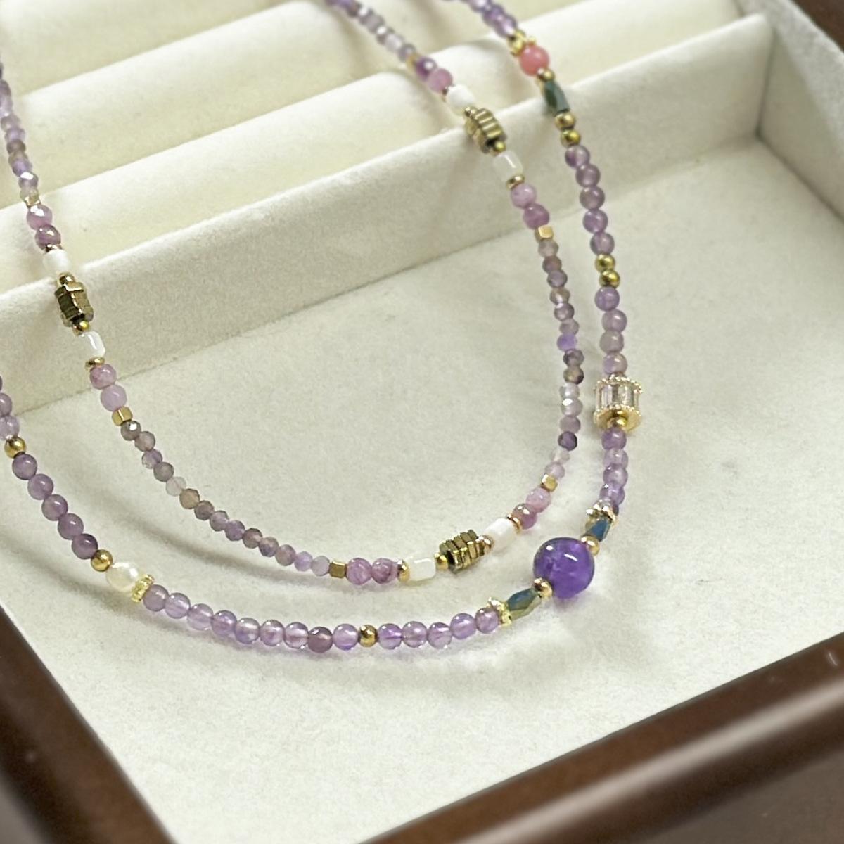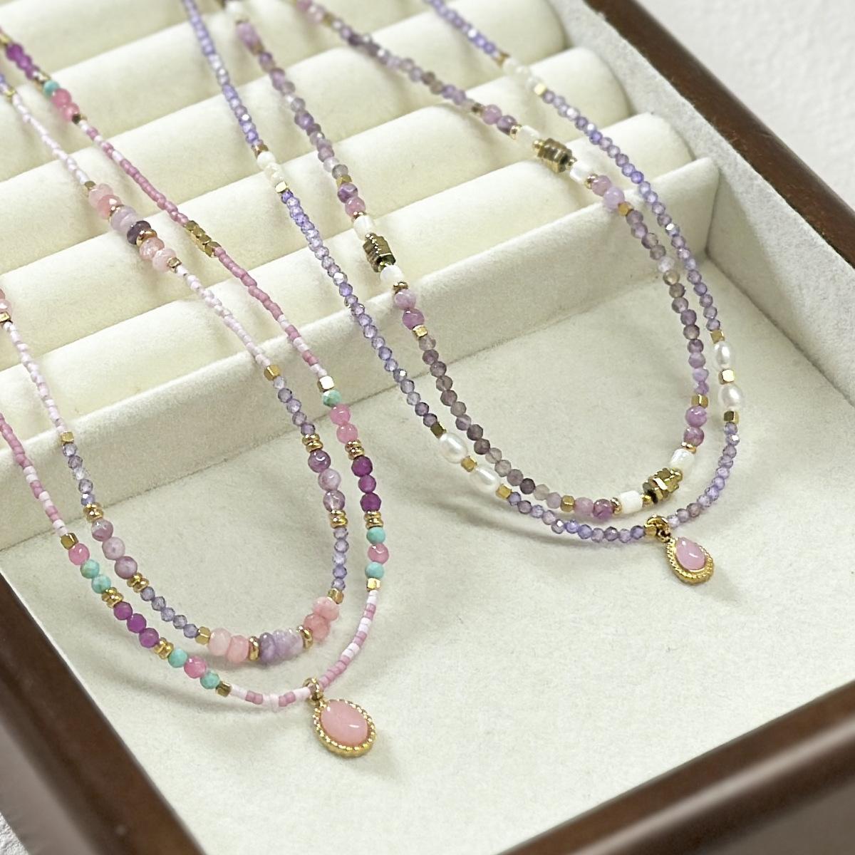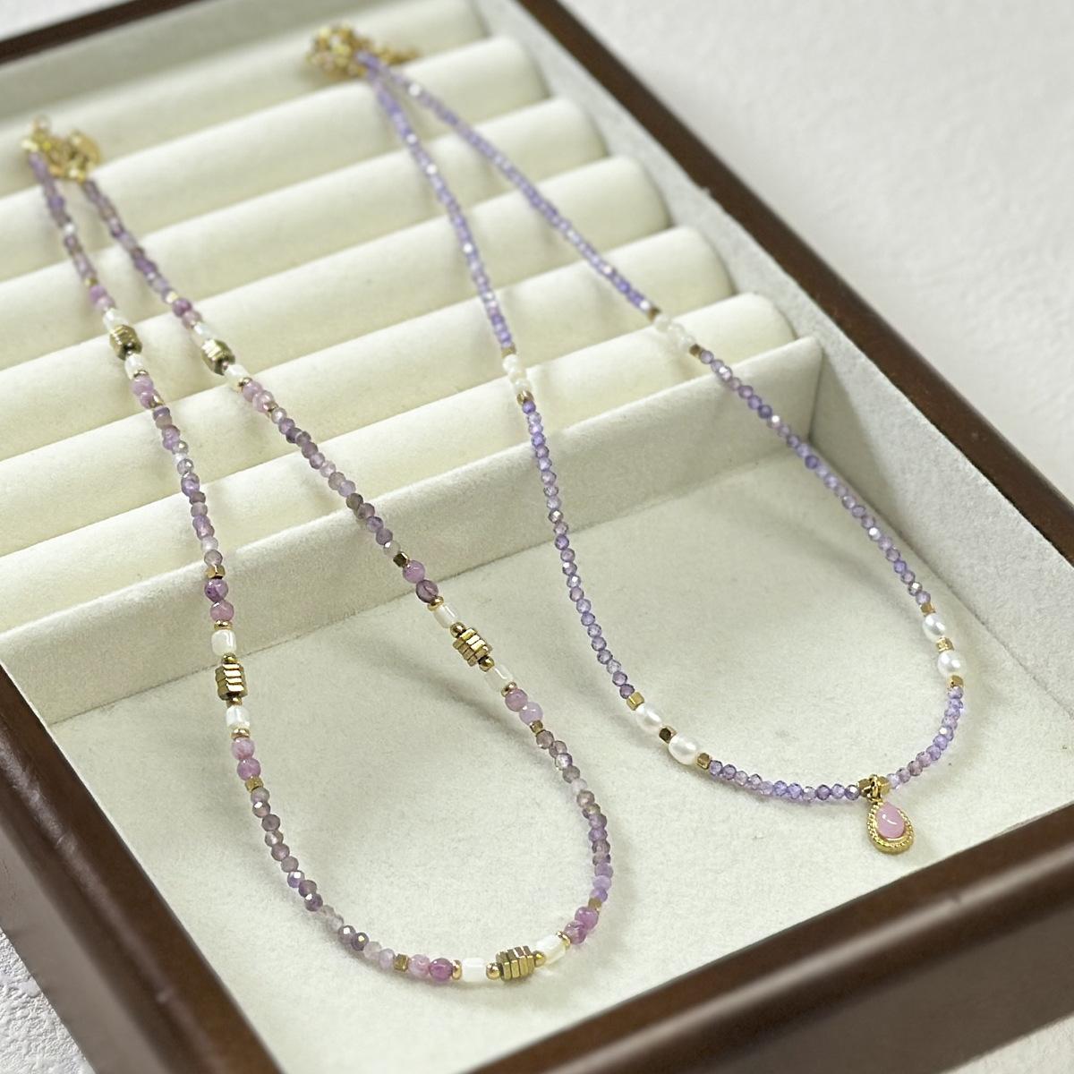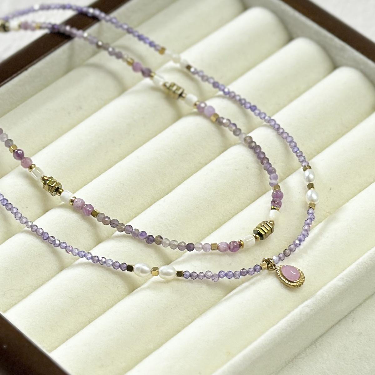 1# pink purple mixed color natural stone double layer suit necklace, 2# freshwater pearl purple natural stone ...