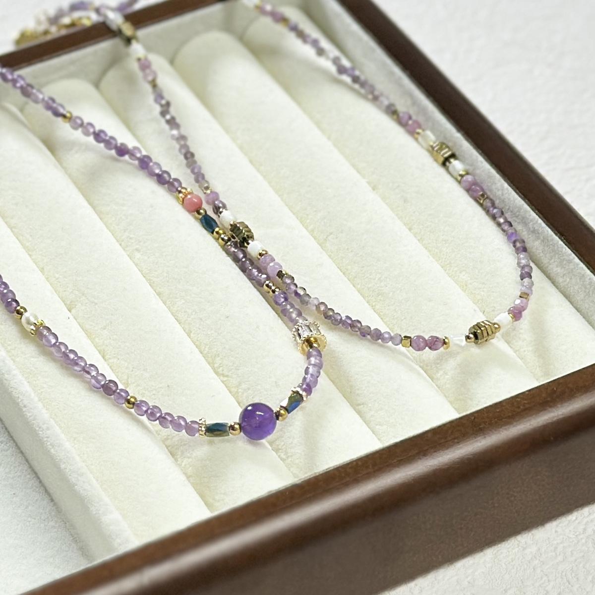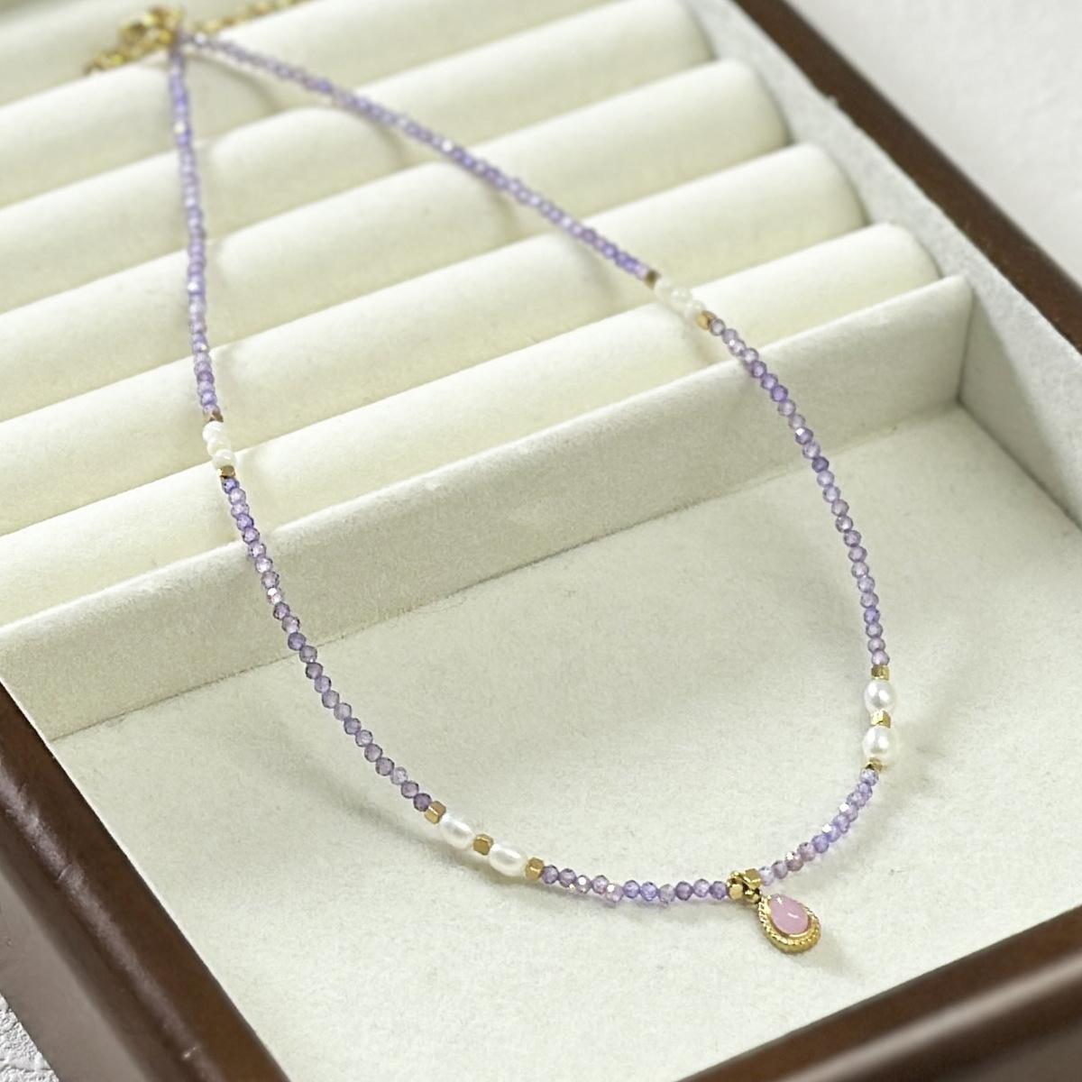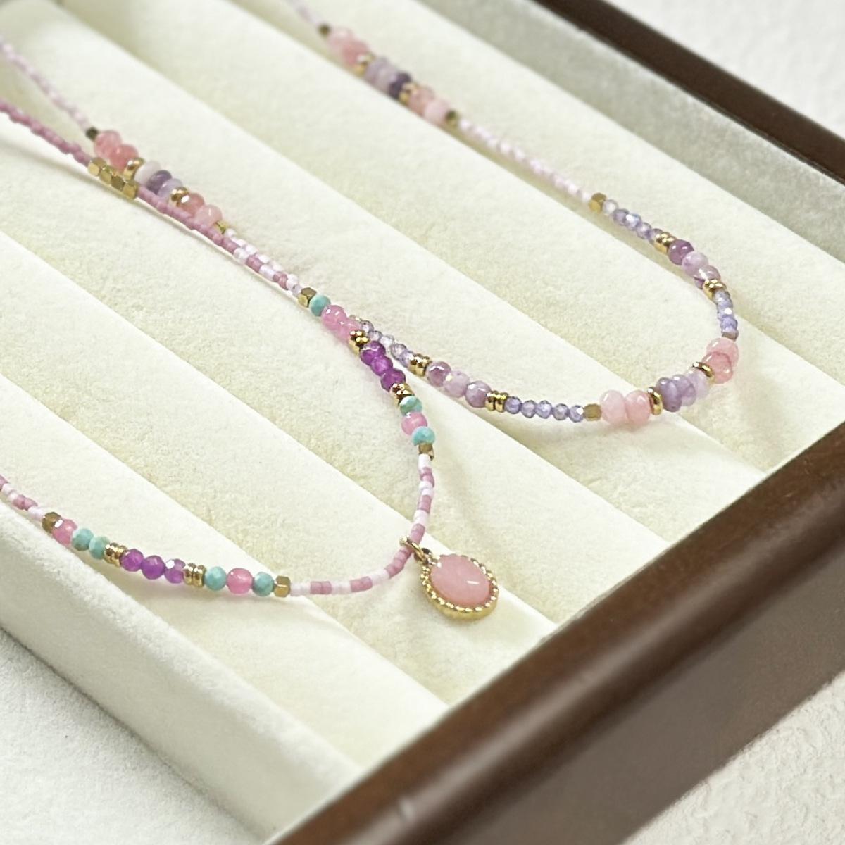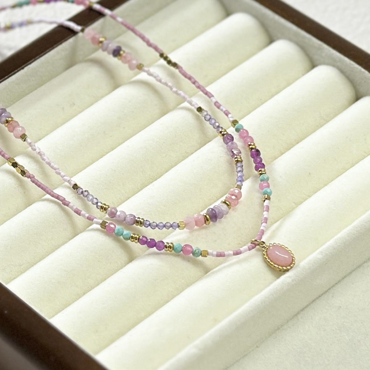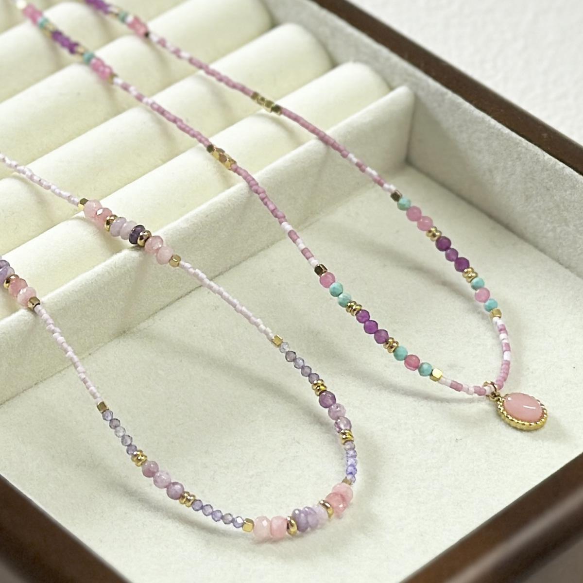 1# pink purple mixed color natural stone double layer suit necklace, 2# freshwater pearl purple natural stone ...