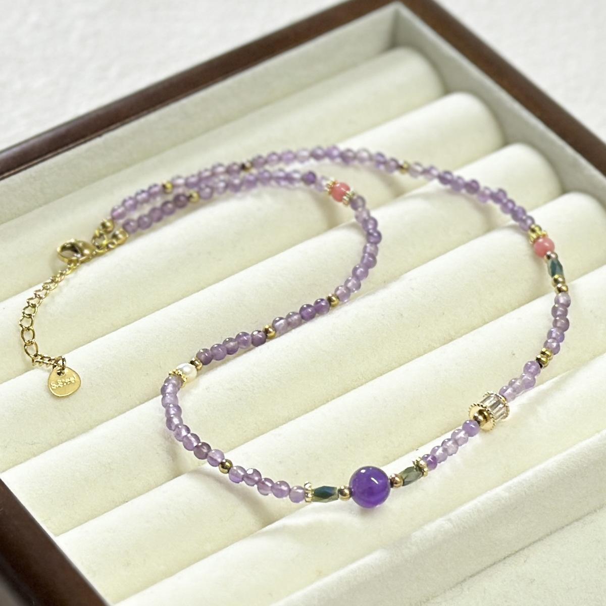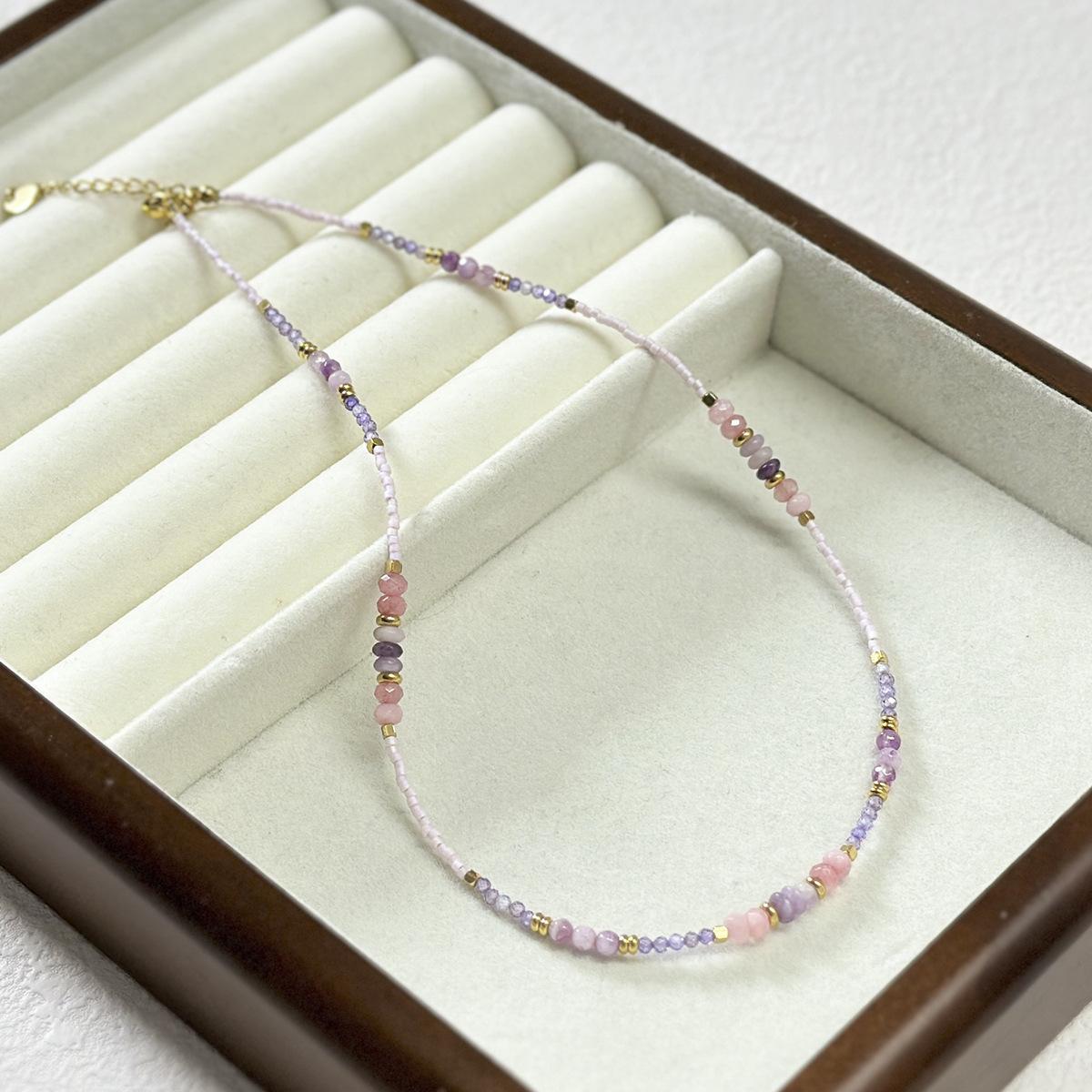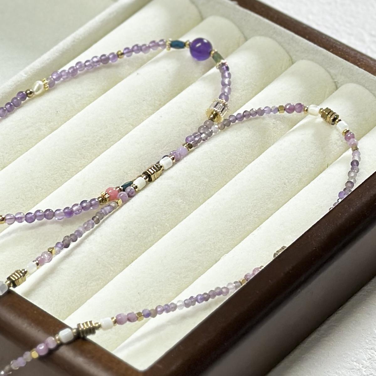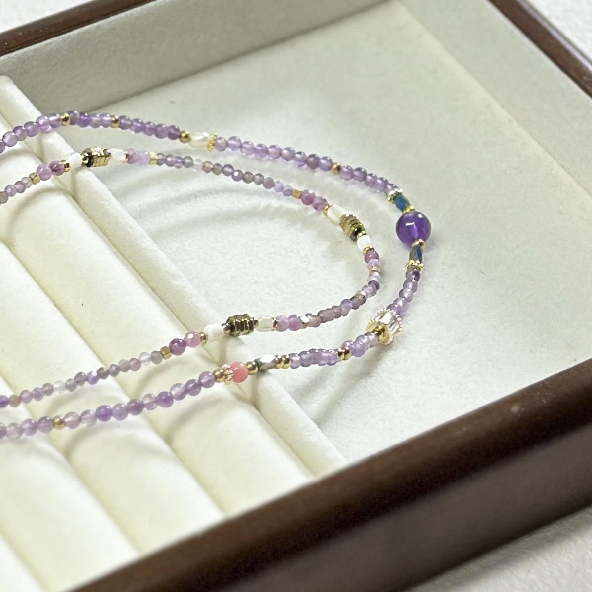1# pink purple mixed color natural stone double layer suit necklace, 2# freshwater pearl purple natural stone ...