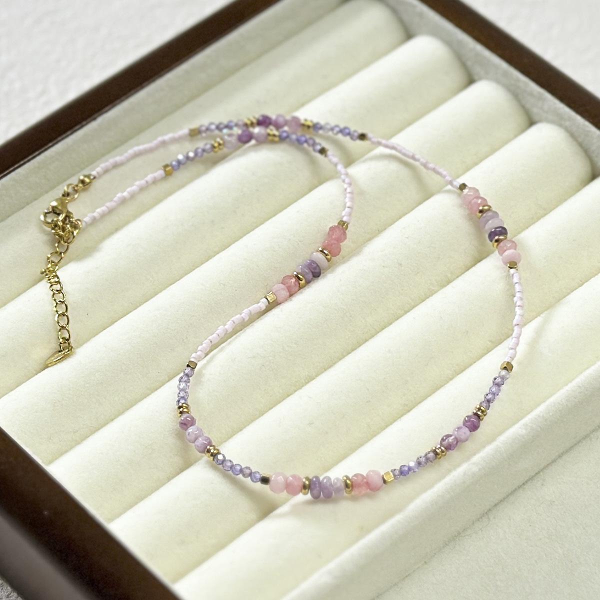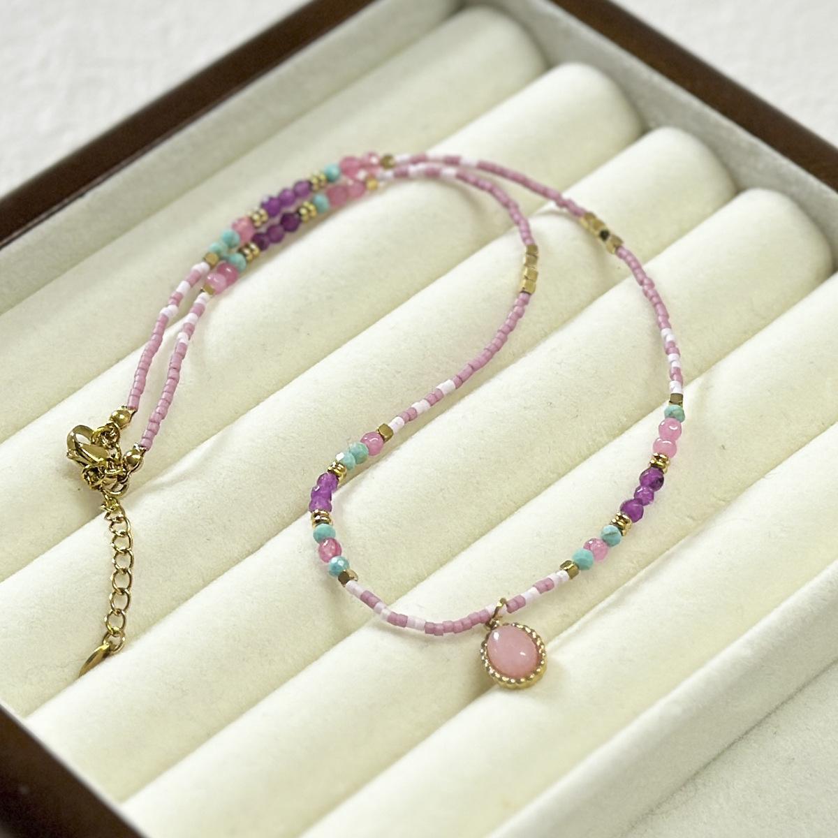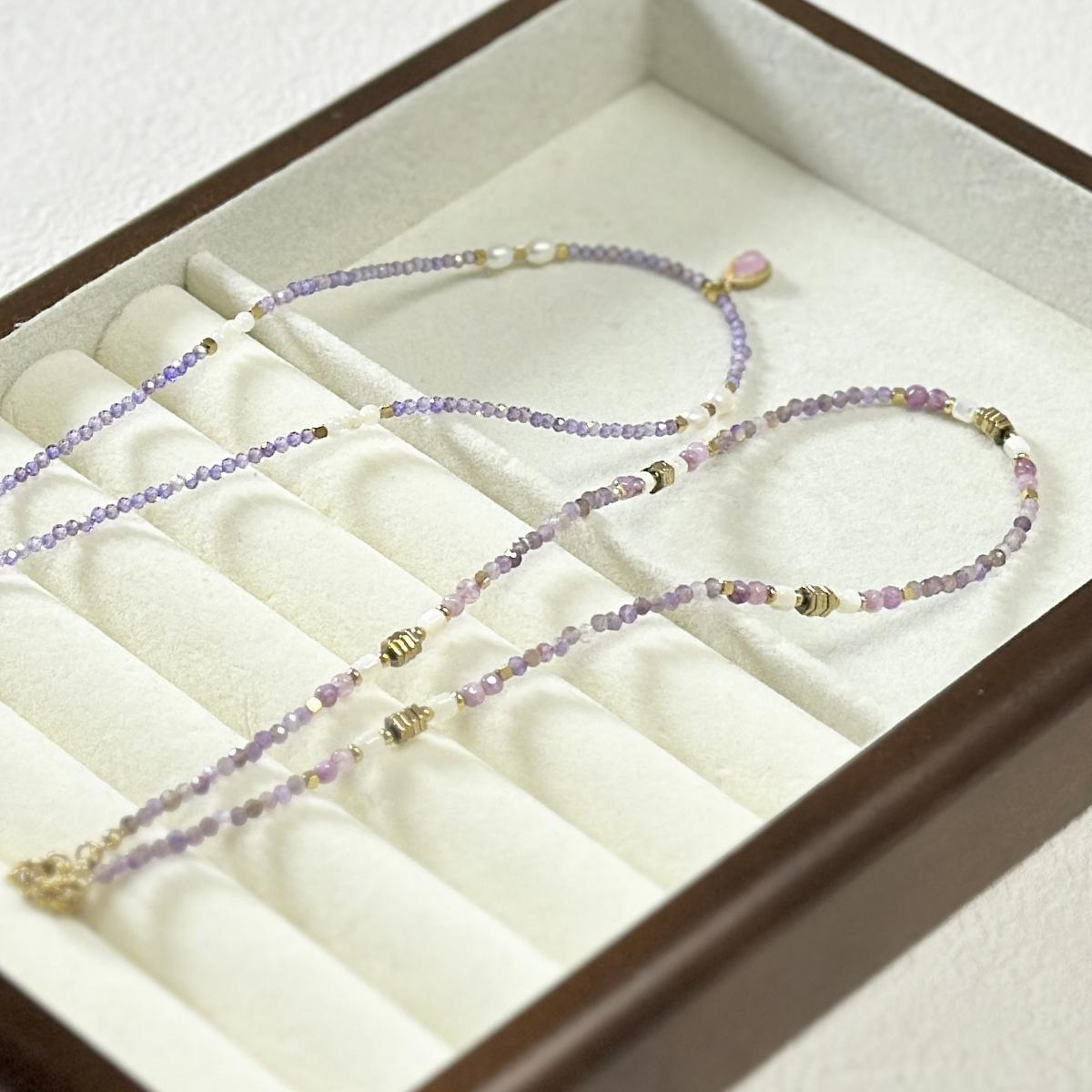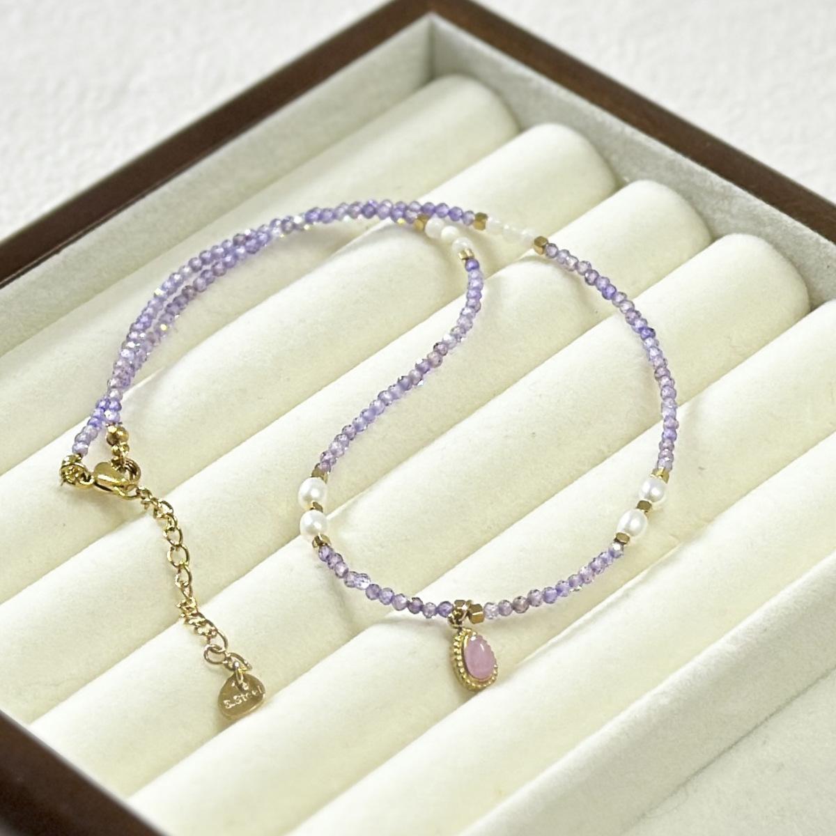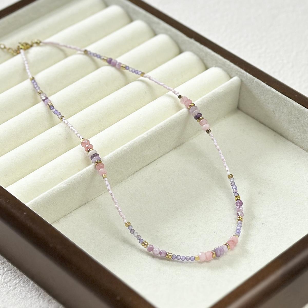 1# pink purple mixed color natural stone double layer suit necklace, 2# freshwater pearl purple natural stone ...