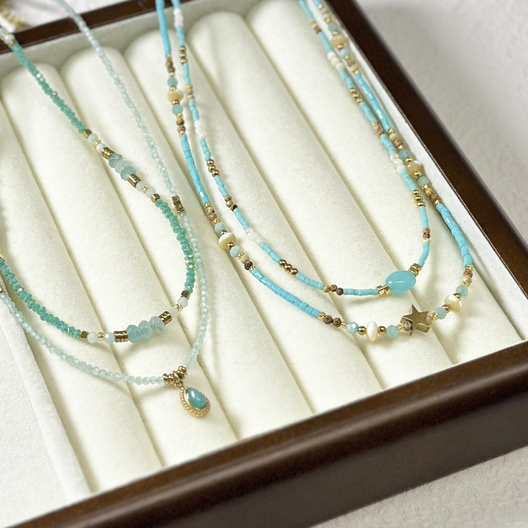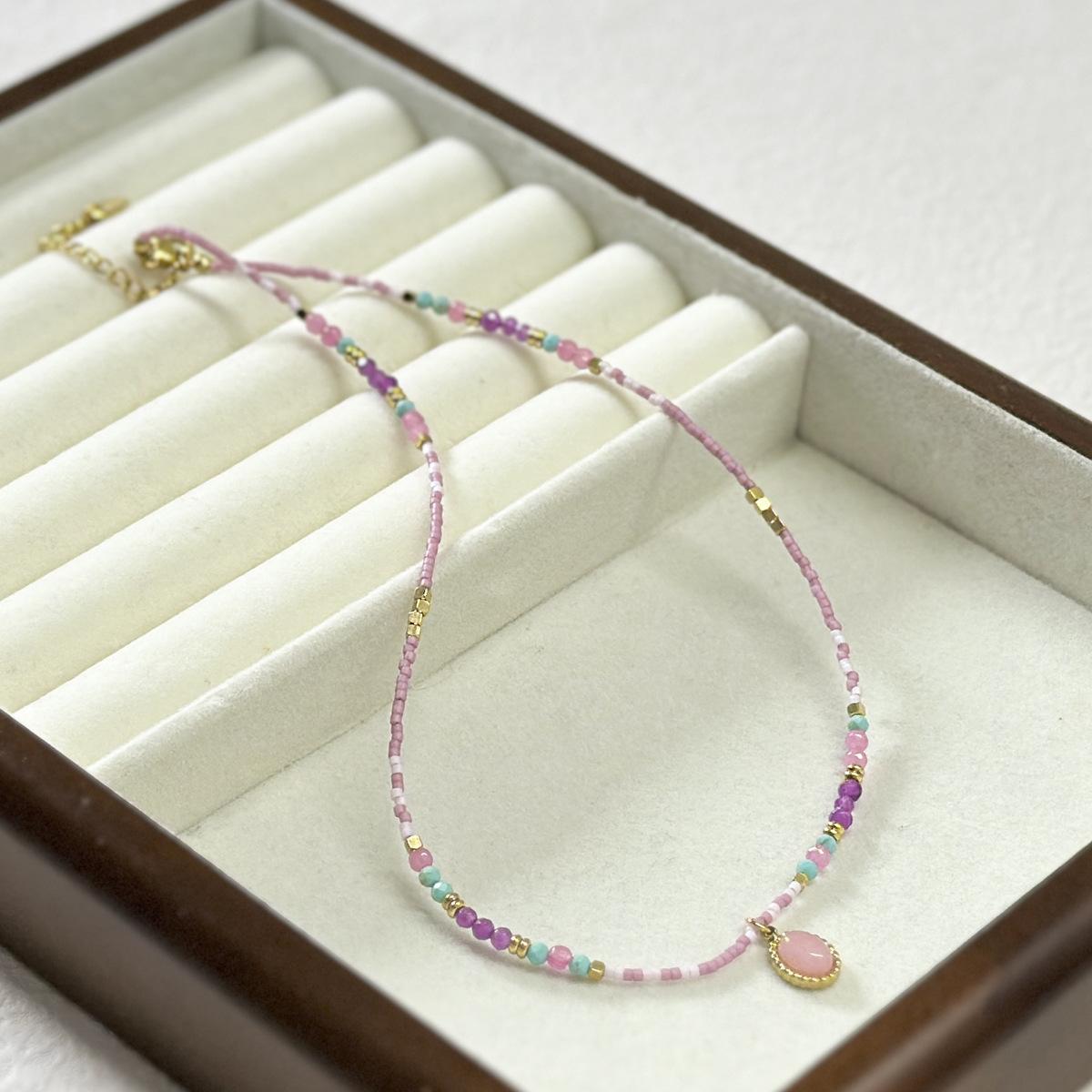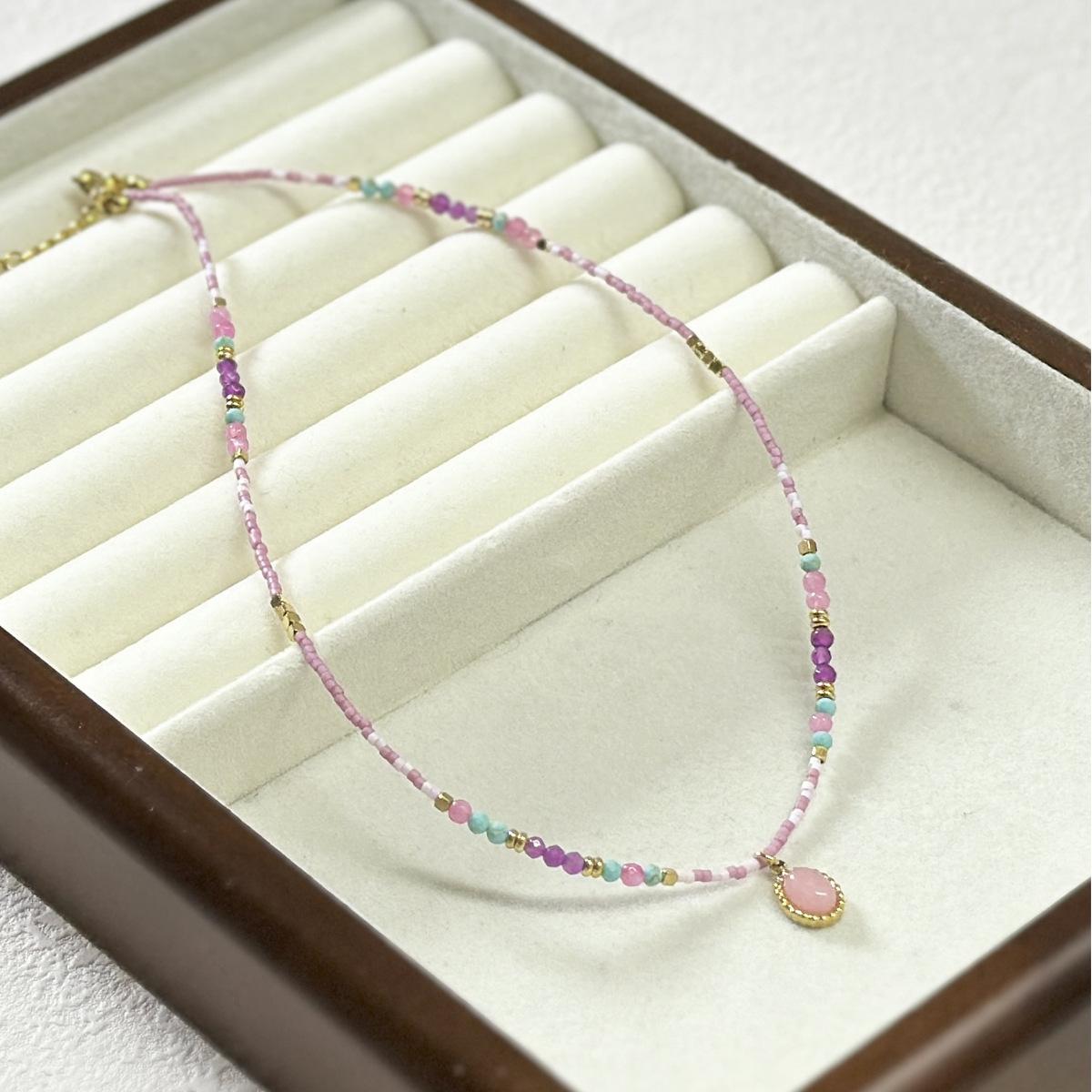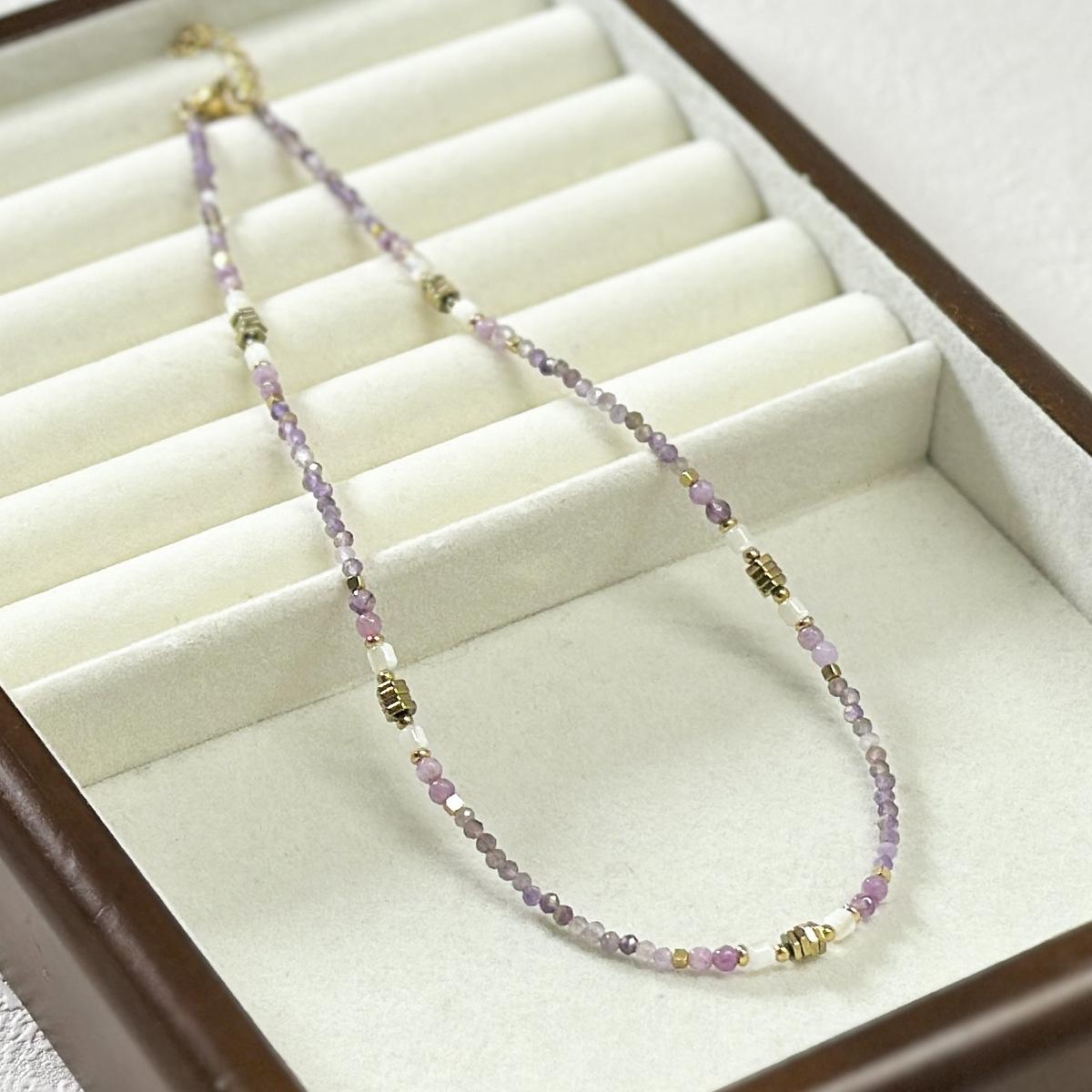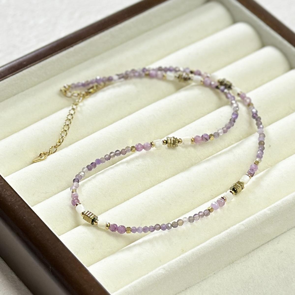 1# pink purple mixed color natural stone double layer suit necklace, 2# freshwater pearl purple natural stone ...