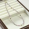 Collar de Acero de Titanio con Perla de Agua Dulce Otoño e Invierno Color Mezclado Púrpura Collar de Cuentas de Piedra Natural Cadena de Clavícula Apilada de Alta Gama