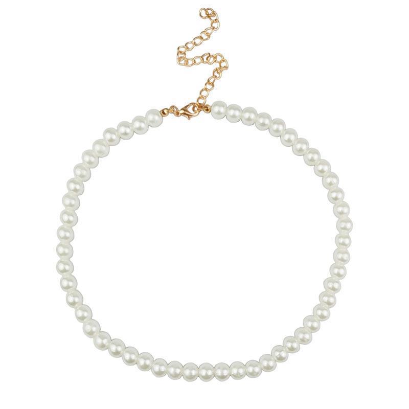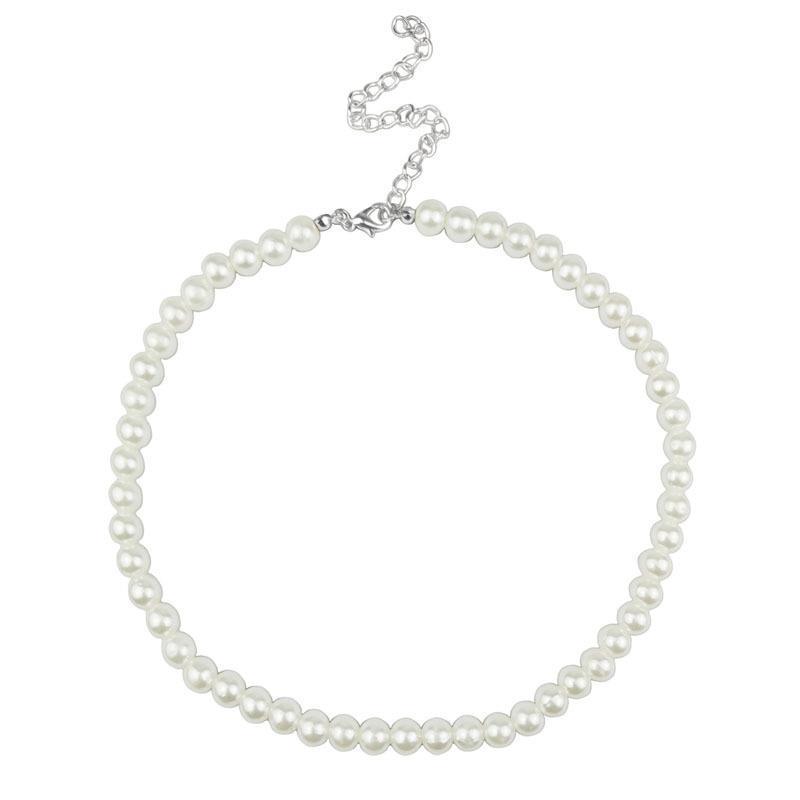 Collar de cadena de clavícula para mujer con perlas de imitación blancas de 6-12 mm, venta al por mayor