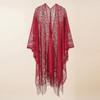 Cárdigan playero nuevo para mujer, camisa de gasa estampada para vacaciones en la playa, traje de baño europeo y americano, ropa de protección solar, pareo con borlas