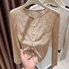 El elegante chal Douyin de Miss He, de seda dorada y plateada, con aberturas laterales, para cubrirse el bikini y protegerse del sol, es una prenda nueva y hueca.