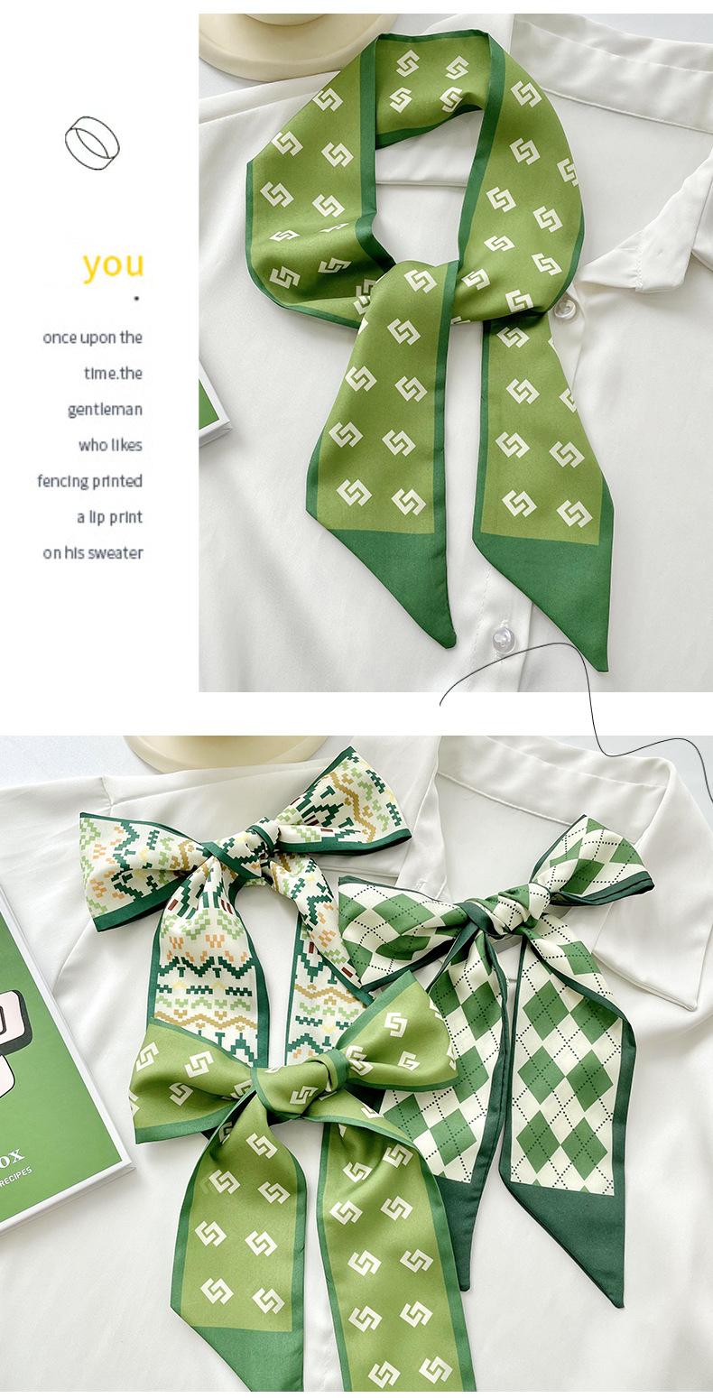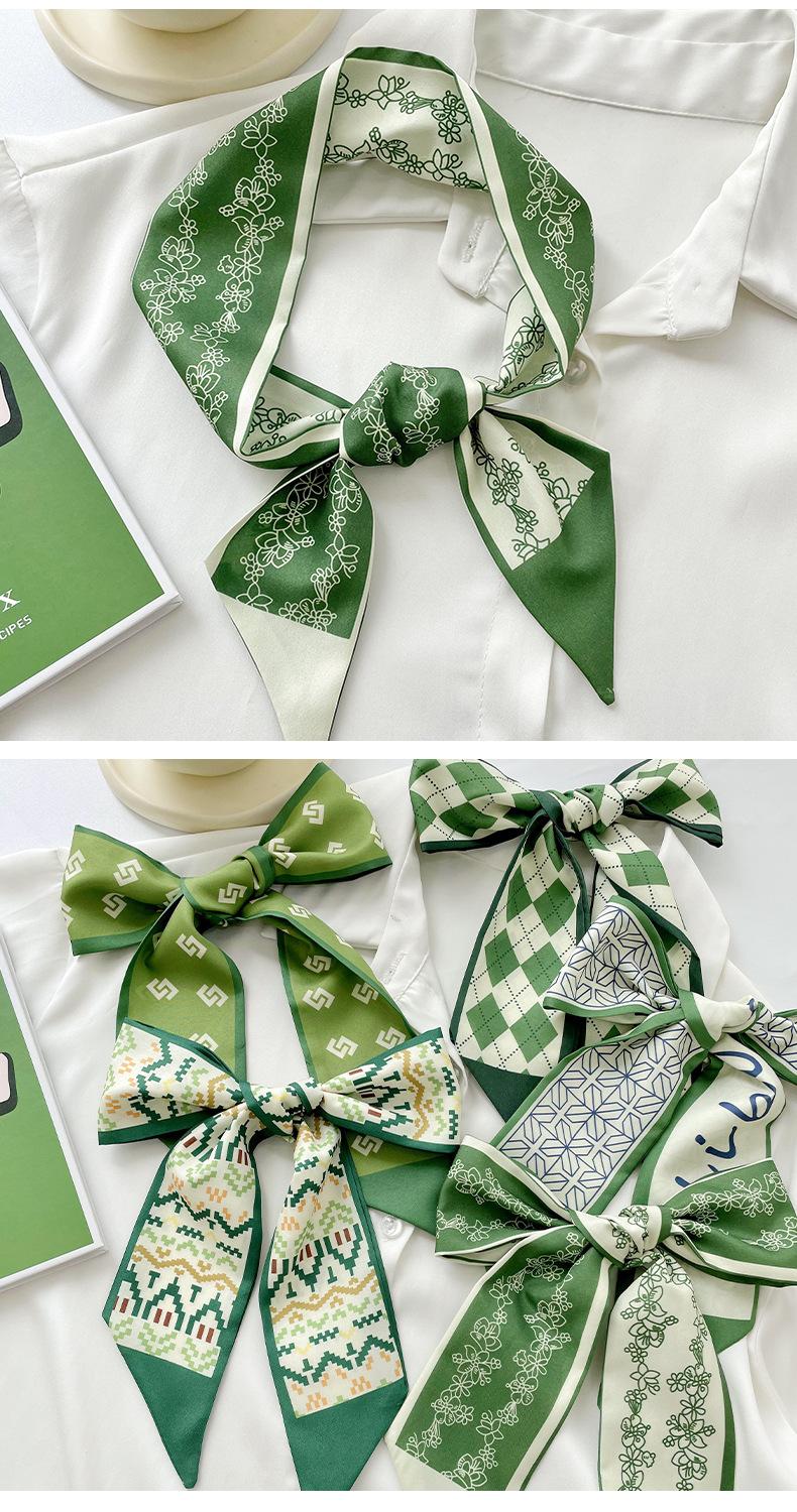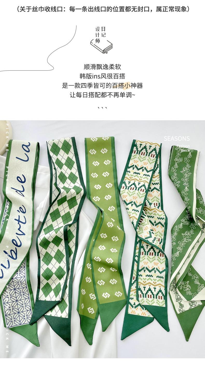 Bufanda Larga de Seda para Mujer 2025 Nuevo Estilo Coreano de Alta Gama Verde Verano Bufanda Fina de Seda Lazo para el Cabello Bufanda de Seda Diadema
