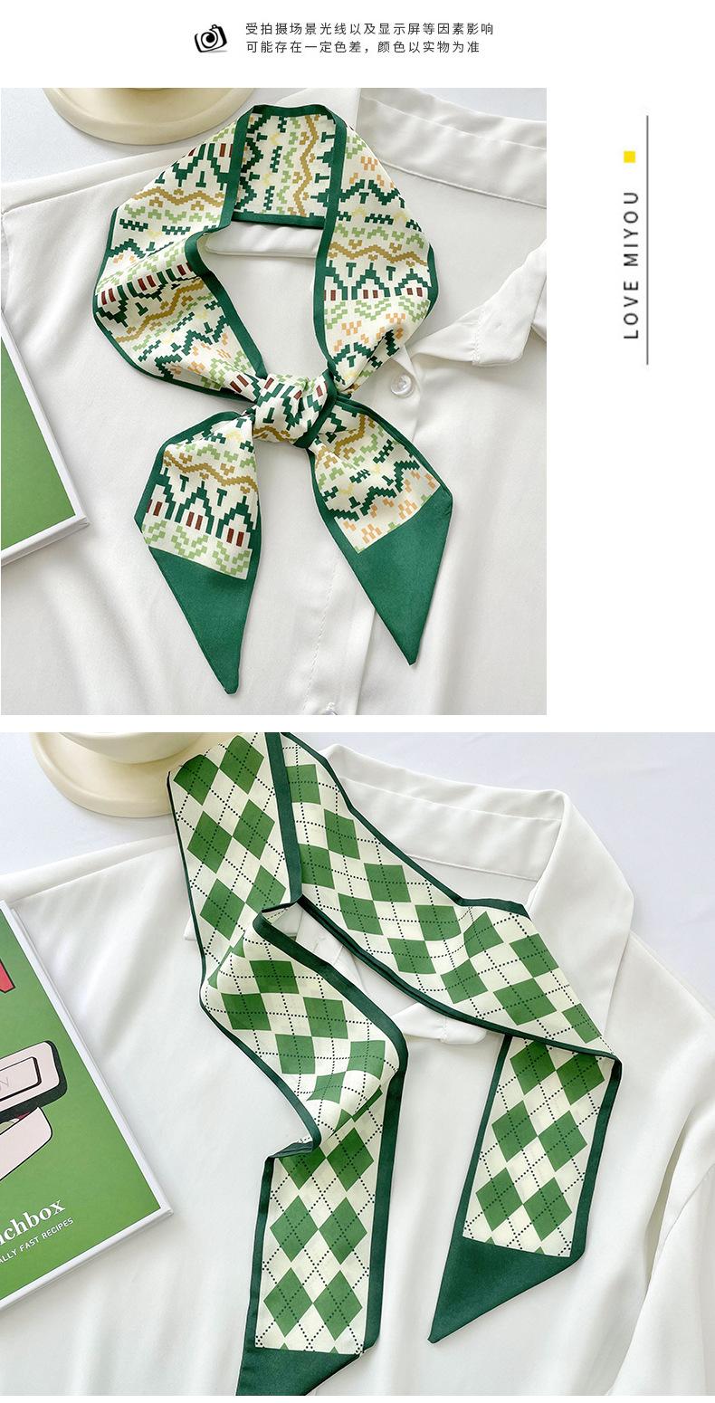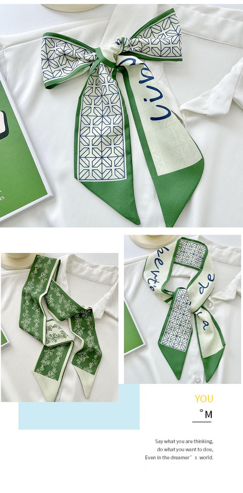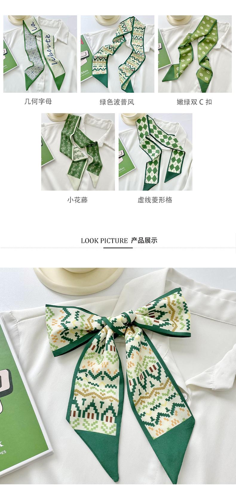 Bufanda Larga de Seda para Mujer 2025 Nuevo Estilo Coreano de Alta Gama Verde Verano Bufanda Fina de Seda Lazo para el Cabello Bufanda de Seda Diadema