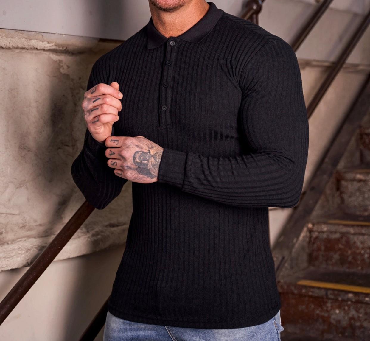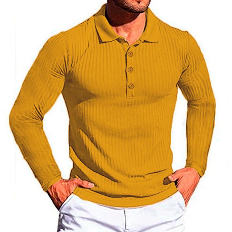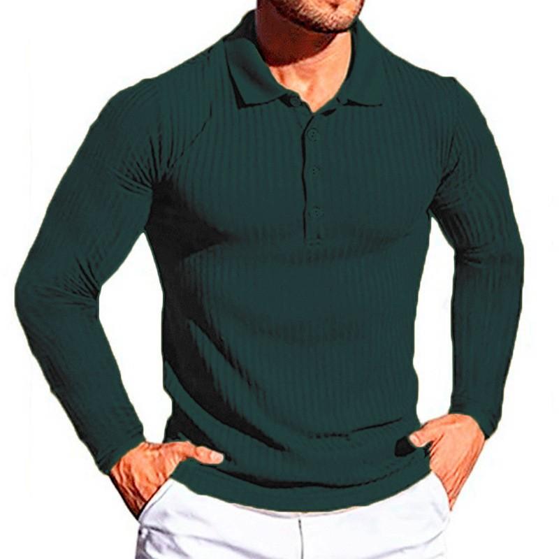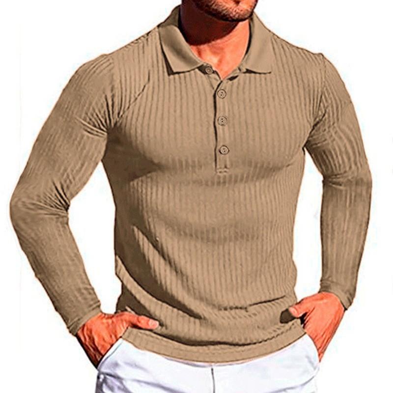 Camisa polo de manga larga con rayas verticales elásticas y solapa informal deportiva de verano para hombre, con deseo de comercio exterior transfronterizo europeo y americano.