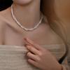 Collar de perlas naturales de agua dulce con temperamento francés para mujer, gargantilla retro de lujo de alta gama, cadena de doble clavícula