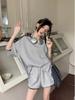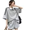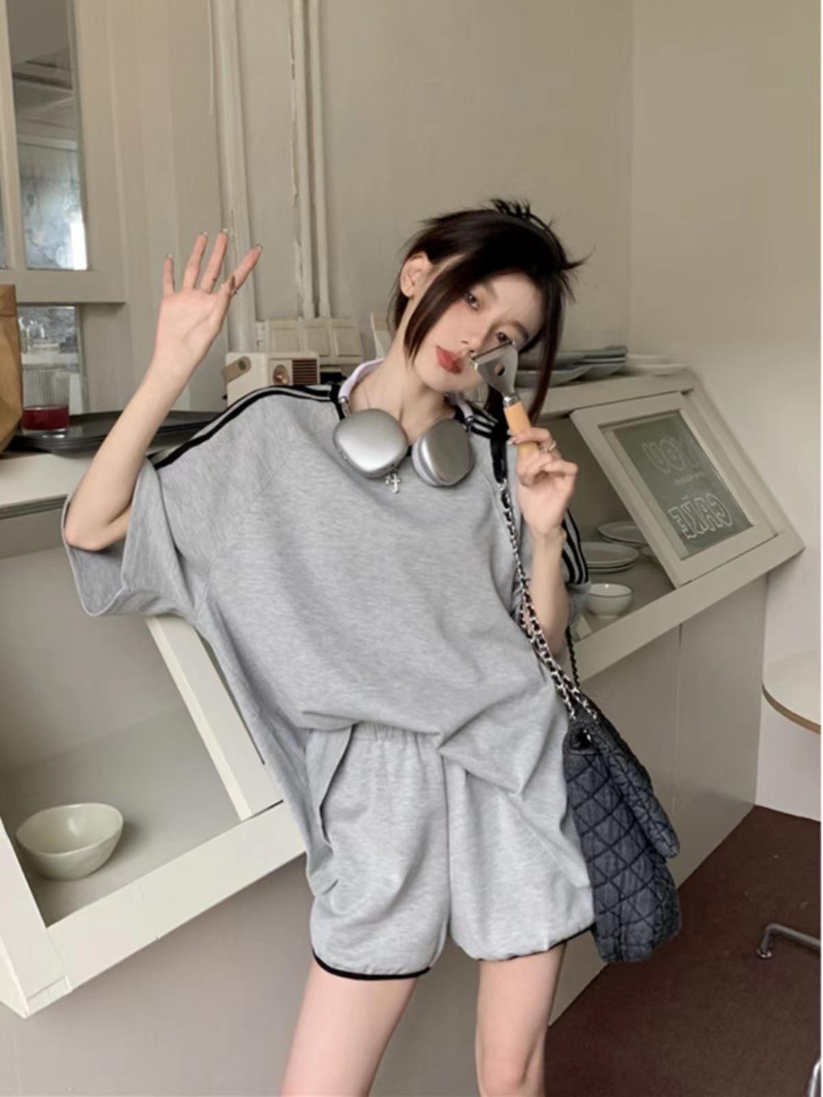 Traje deportivo de verano para mujer, 24 años, nuevo, con contraste de color, cuello redondo, camiseta holgada versátil + pantalones cortos casuales, ropa deportiva para estudiantes