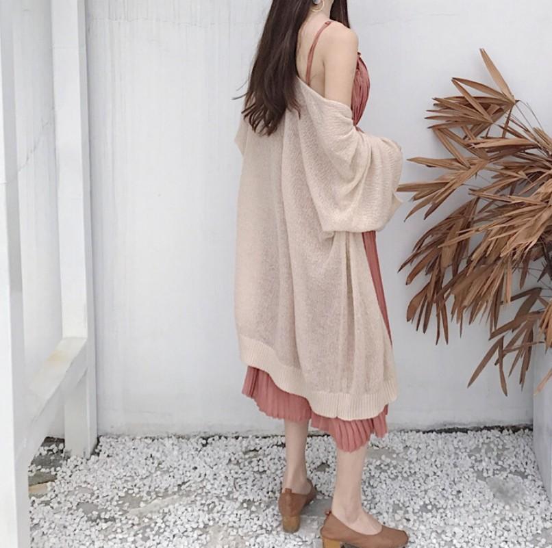 Novedad de verano 2025, suéter holgado de punto de estilo perezoso para mujer, camisa de protección solar de longitud media, cárdigan fino, suéter con aire acondicionado