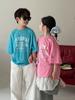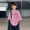 Camiseta informal de verano para niños, estilo coreano, sencilla, suave, con cuello redondo y estampado de letras, de algodón, de manga corta, para niños y niñas.