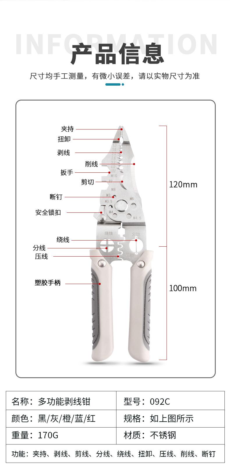 Alicates Pelacables Multifuncionales Especiales para Electricista, Alicates para Cortar Cables, Herramienta Alicates para Crimpar Cables Robusta y Duradera