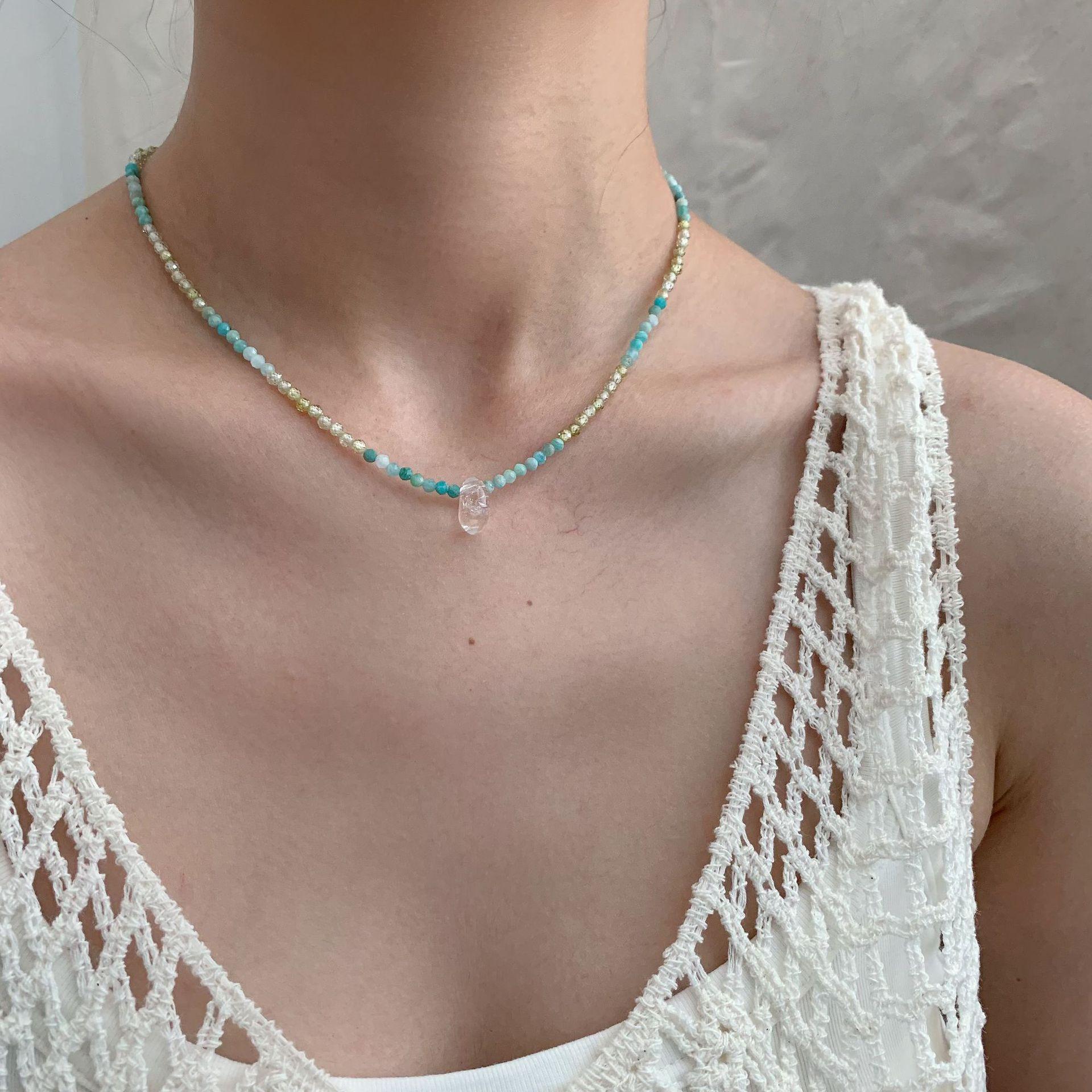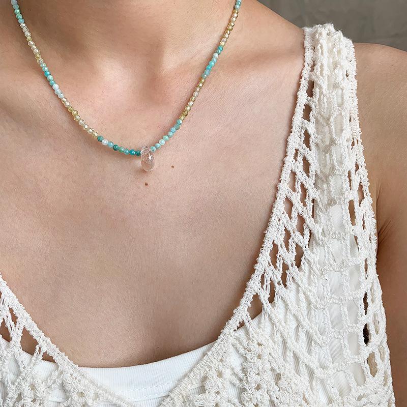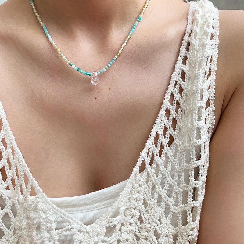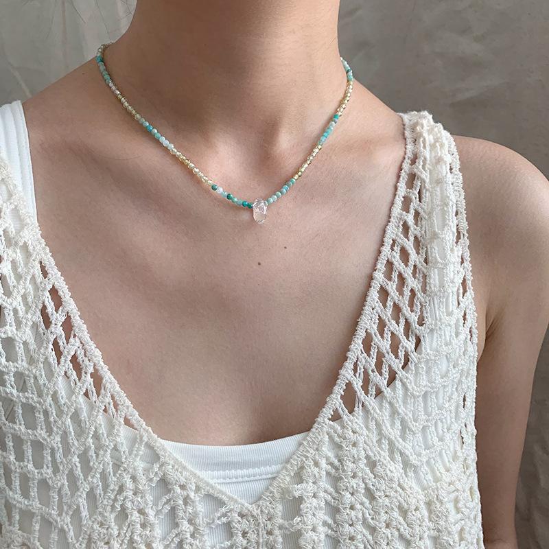 Nuevo collar de cuentas de circón natural, diseño de nicho de verano, cadena de clavícula de cristal blanco con sentido del estilo, x45