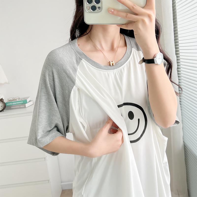 Ropa de lactancia materna para salir, ropa interior de manga corta para primavera y verano, ropa de lactancia, traje de casa para embarazadas, pijamas de lunares.