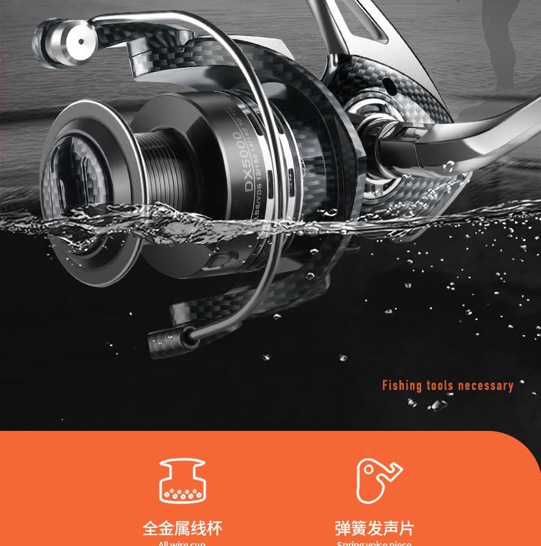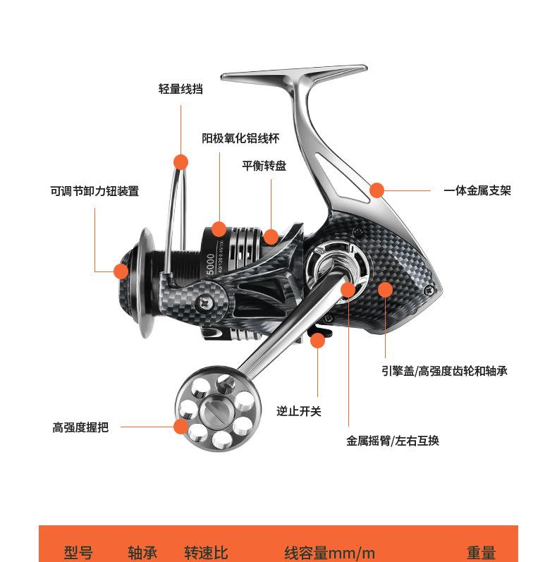 Rueda de pesca Qianrui de metal sin huecos y doble cojinete, rueda giratoria, rueda de pesca de larga distancia con caña marina, rueda Luya, equipo de pesca