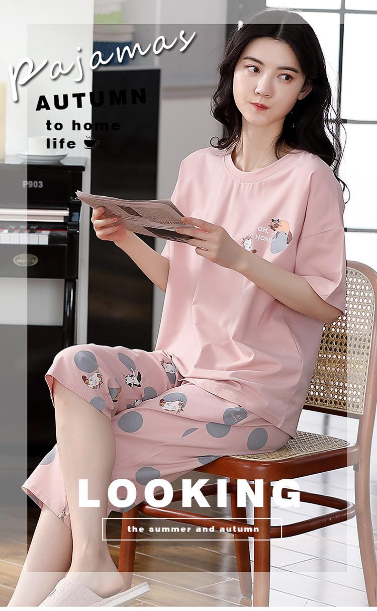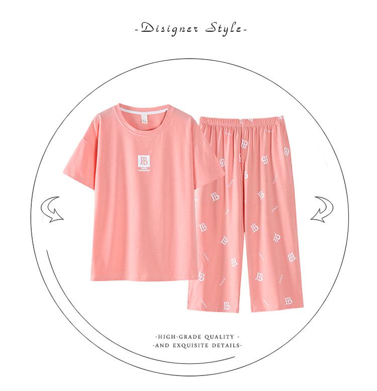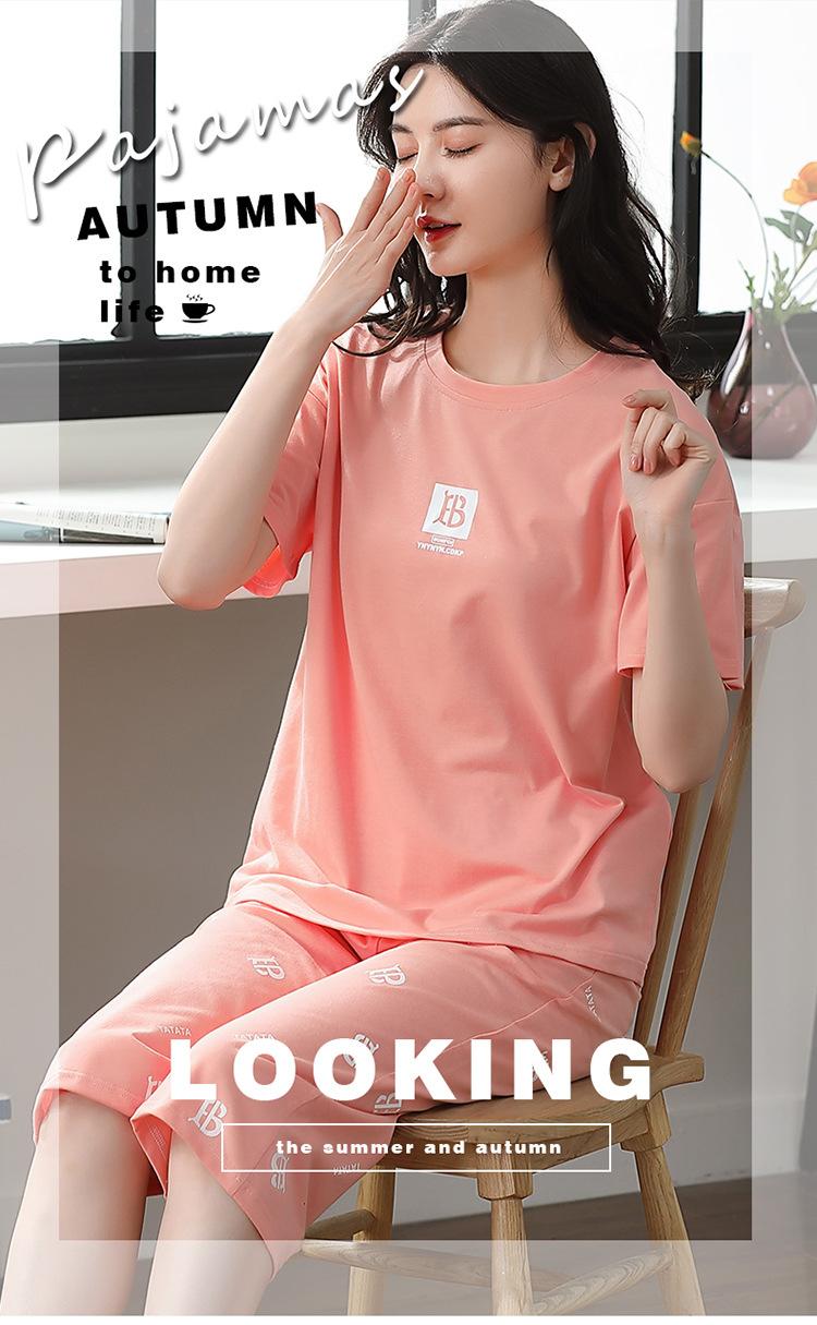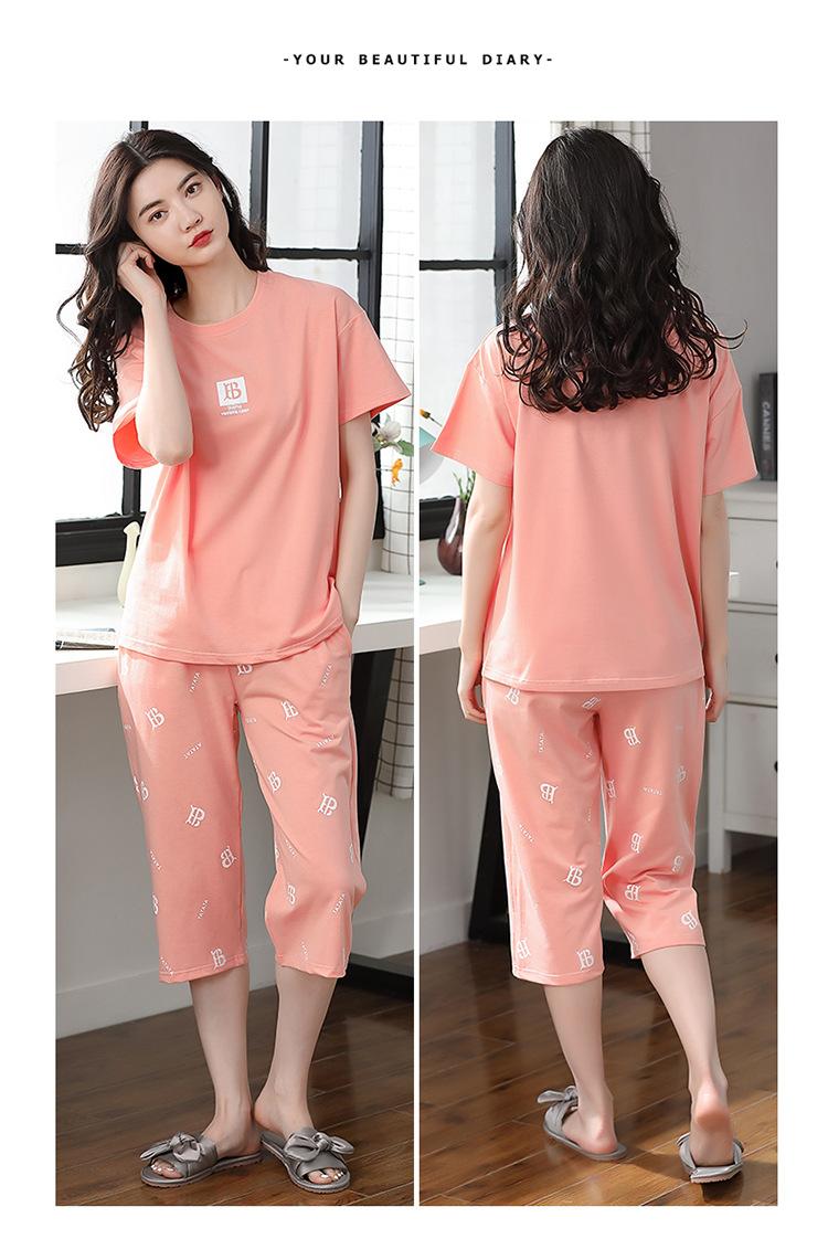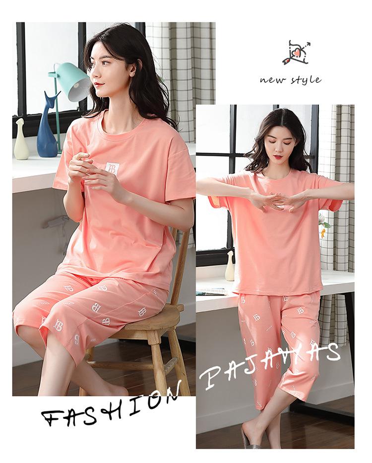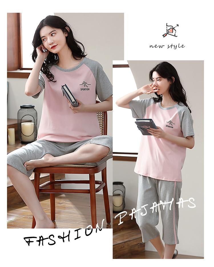 Pijama Delgado de Algodón 100% de Verano para Mujer de Manga Corta, Pantalón Capri, Jersey de Cuello Redondo, Conjunto de Ropa para el Hogar de Moda Casual