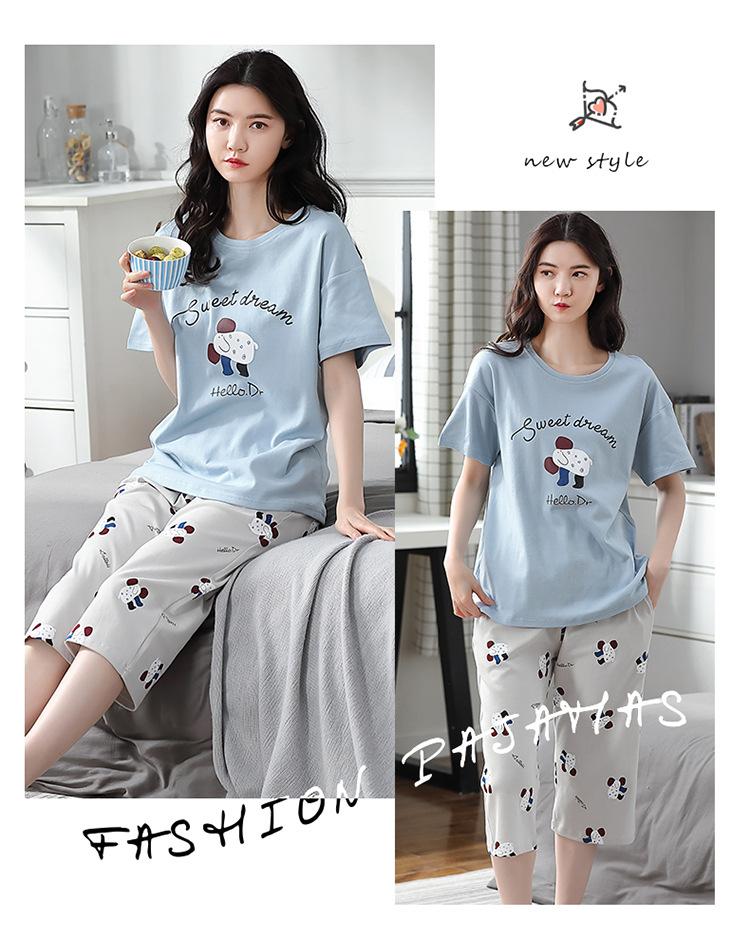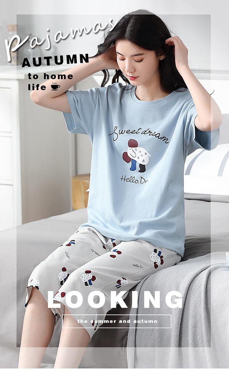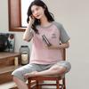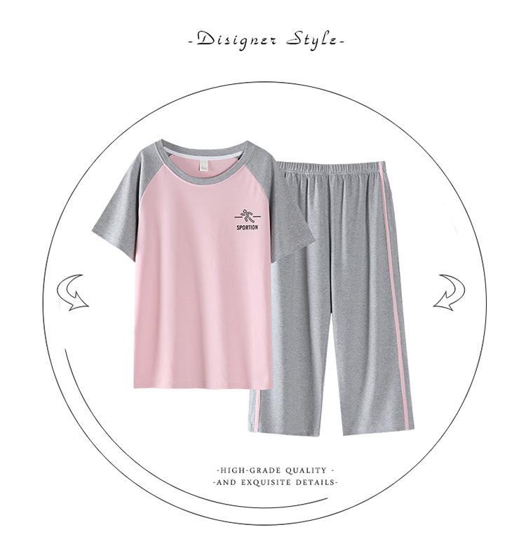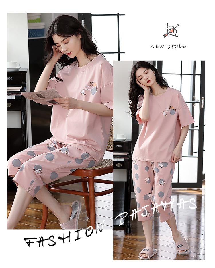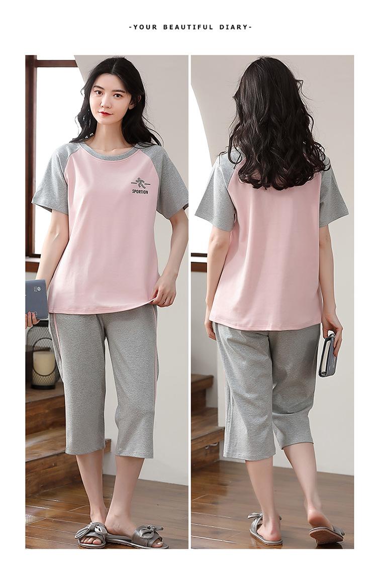 Pijama Delgado de Algodón 100% de Verano para Mujer de Manga Corta, Pantalón Capri, Jersey de Cuello Redondo, Conjunto de Ropa para el Hogar de Moda Casual