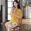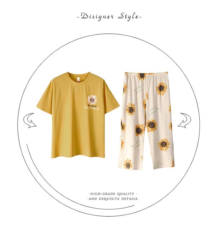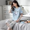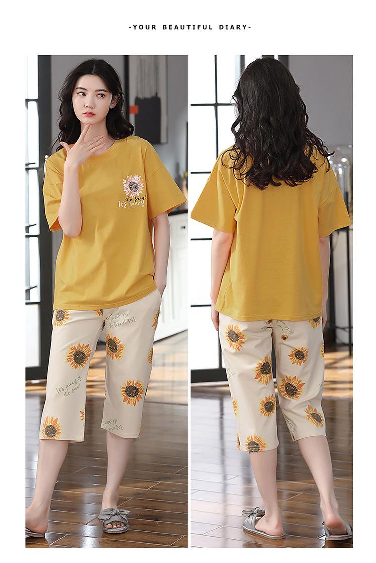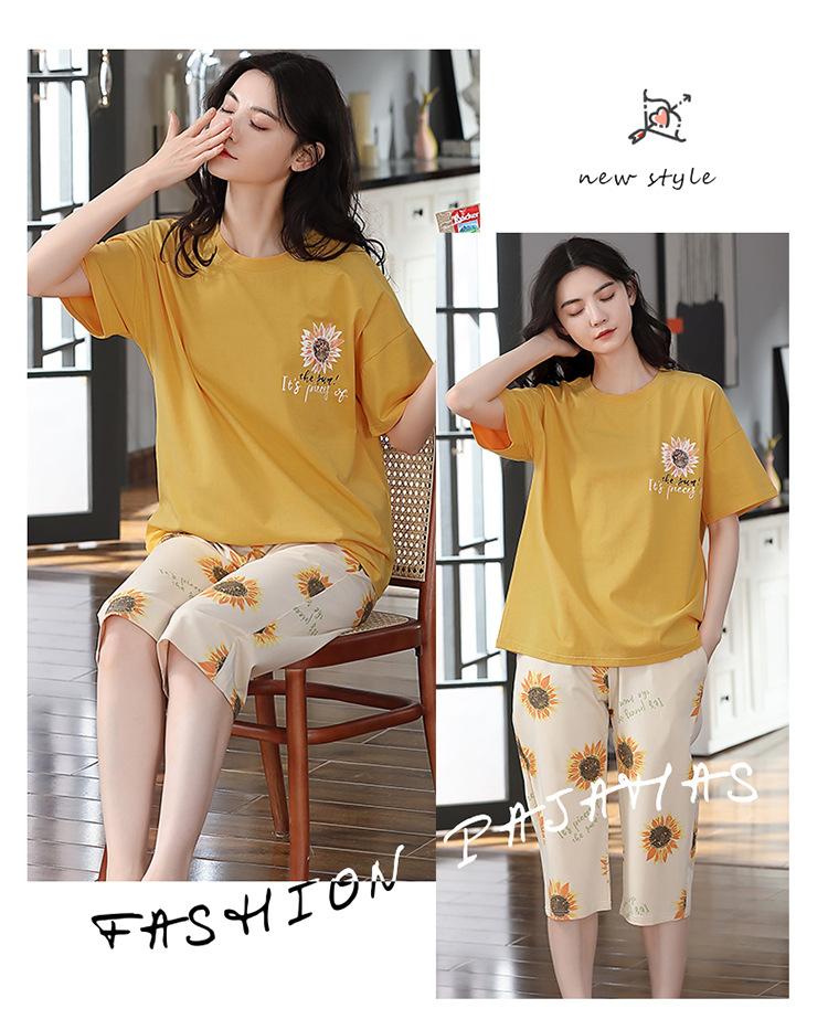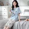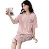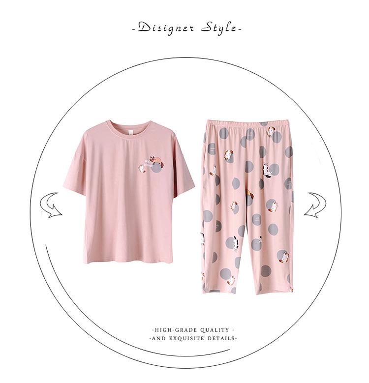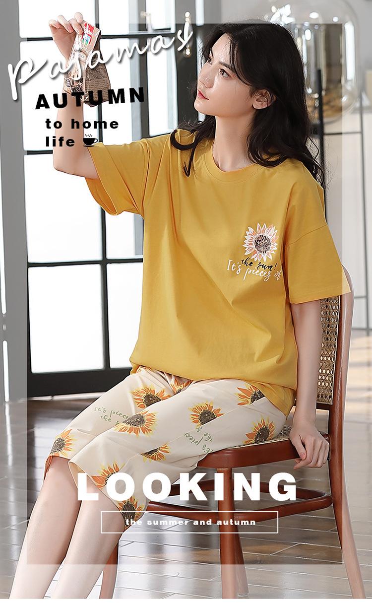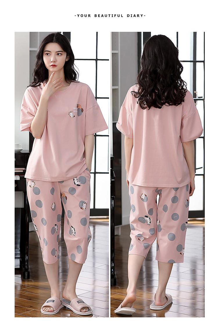 Pijama Delgado de Algodón 100% de Verano para Mujer de Manga Corta, Pantalón Capri, Jersey de Cuello Redondo, Conjunto de Ropa para el Hogar de Moda Casual