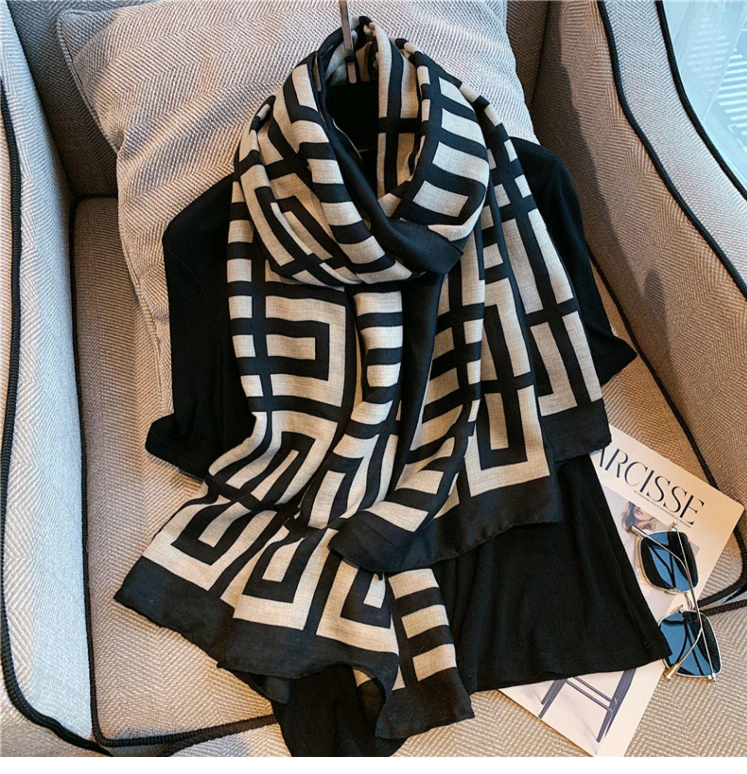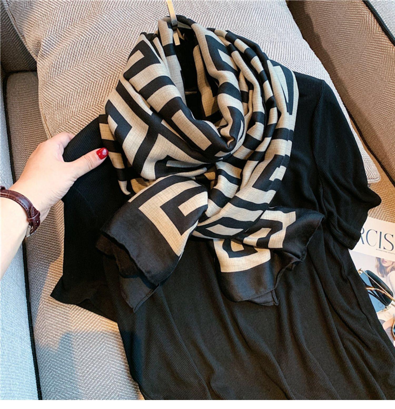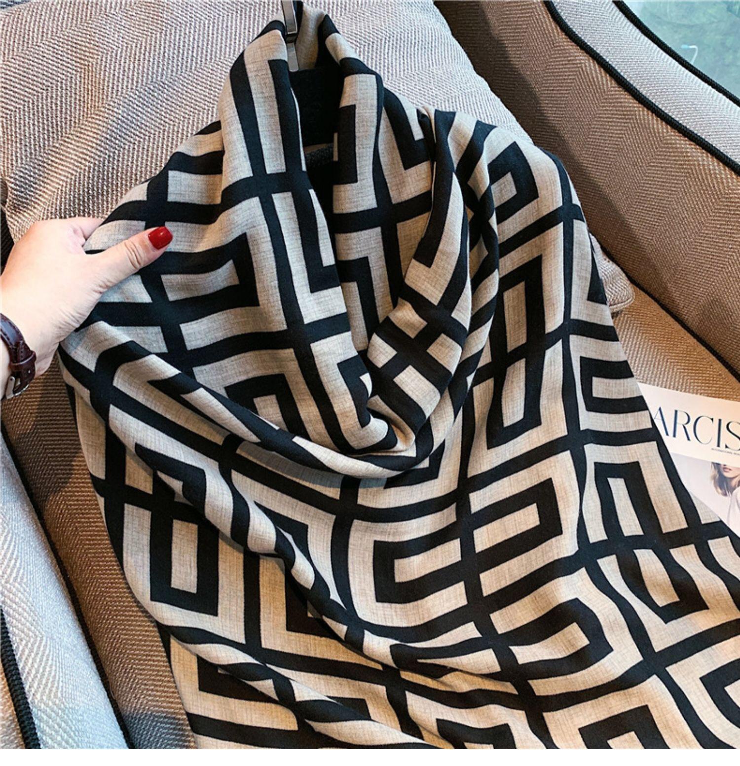 Bufanda nueva para mujer otoño e invierno algodón y lino estampado estilo étnico versátil longitud media chal cálido en vivo Amazon bufanda