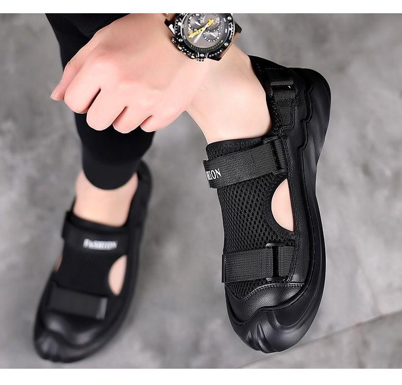 Sandalias deportivas de verano para hombre, antideslizantes, para playa, con punta cerrada, para conducir al aire libre, con agujeros de malla