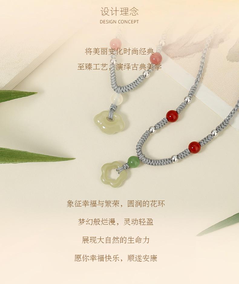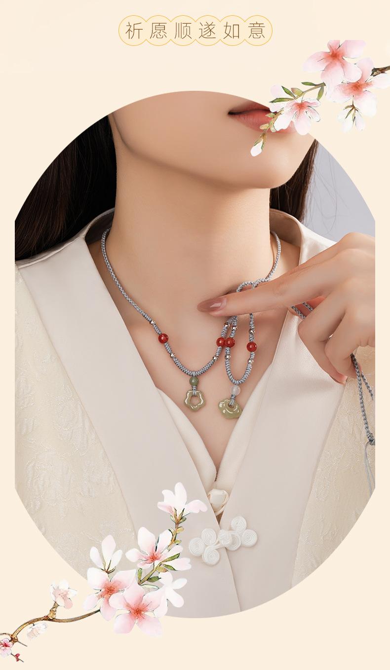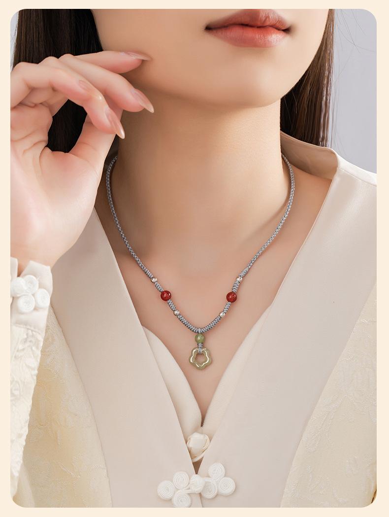 Collar de plata de ley 925 con calcedonia y diseño de serpiente de la suerte, tendencia nacional, con hebilla de paz y cadena de clavícula, colgante estilo zodiaco.