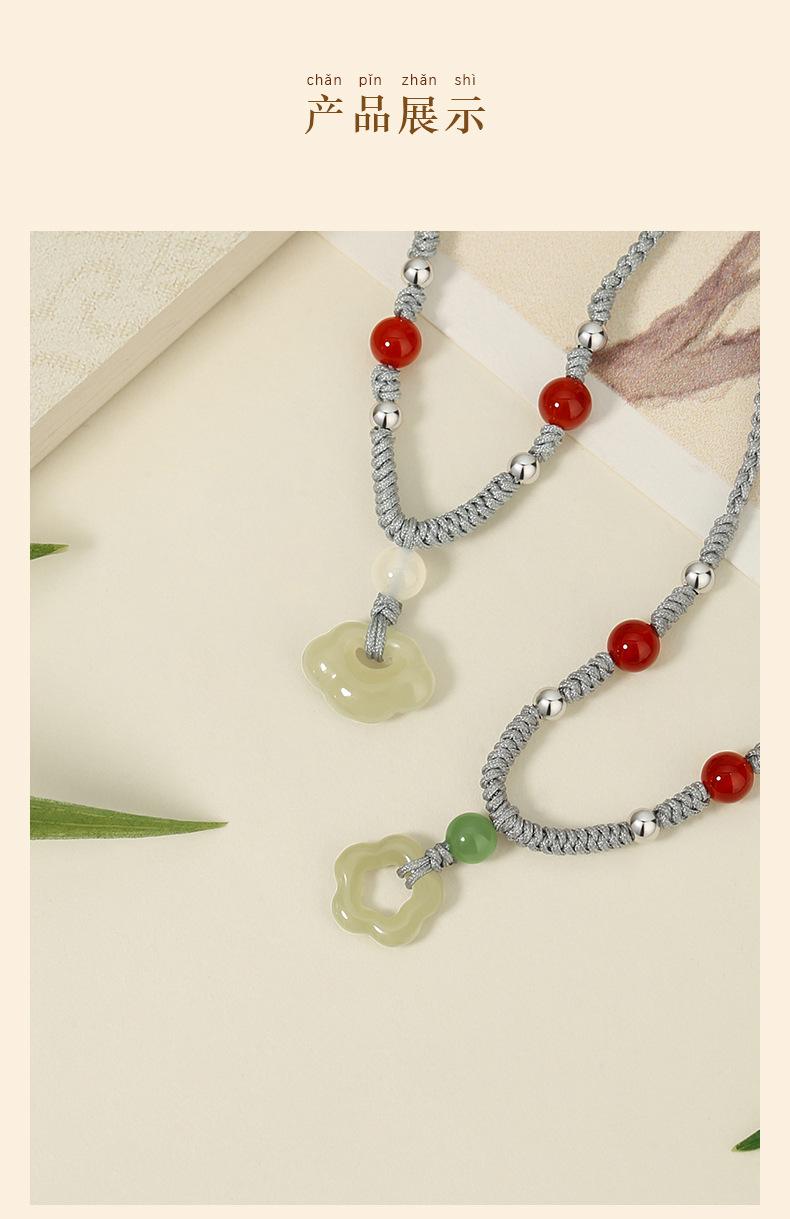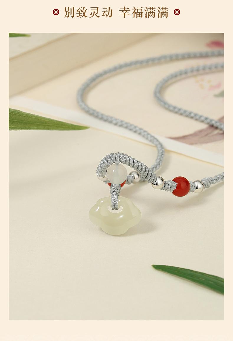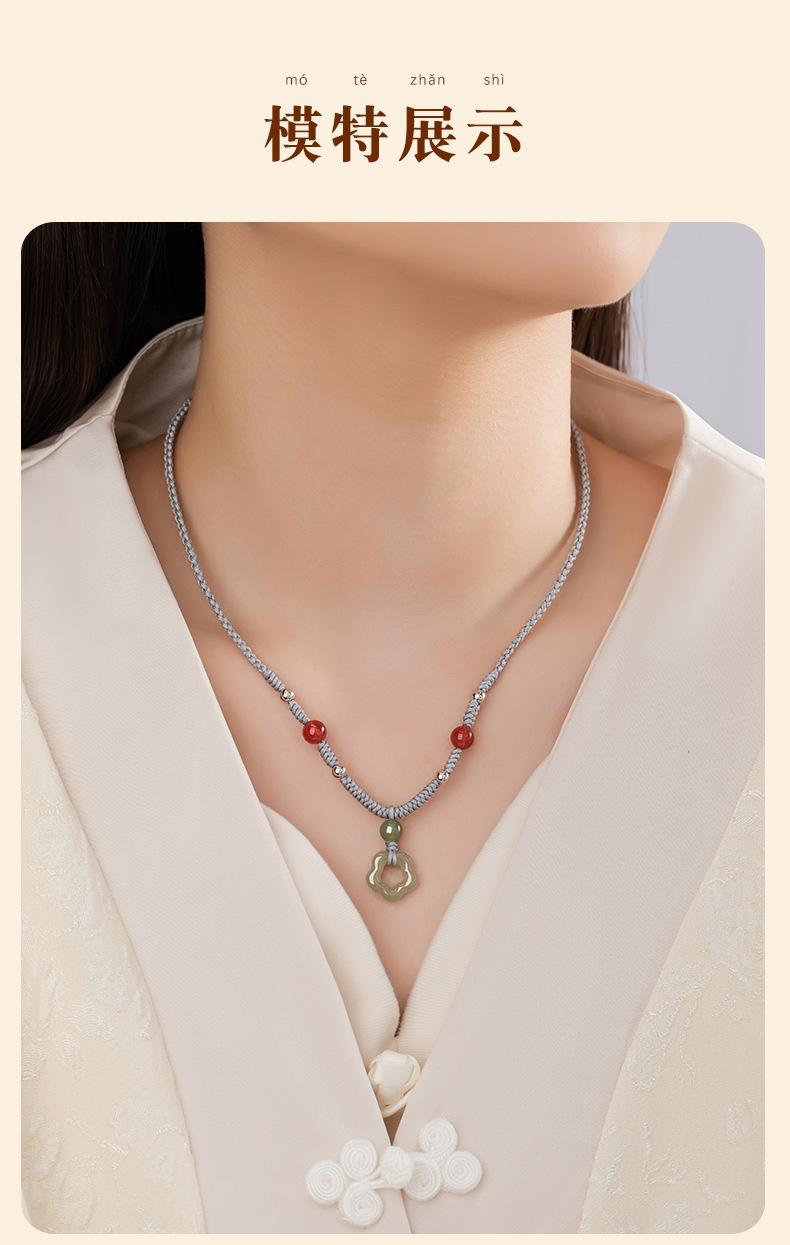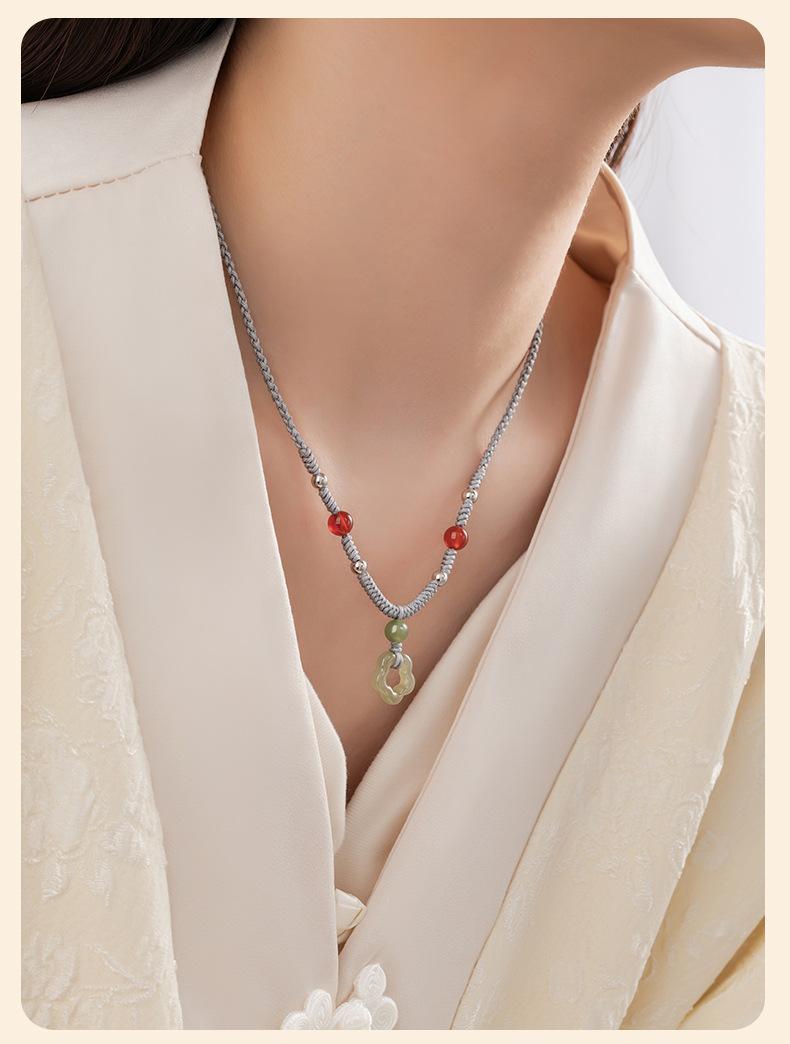 Collar de jade hetiano de plata pura 925 con el zodíaco chino, tendencia nacional, hebilla de paz del año del zodíaco, cadena de clavícula, colgante de serpiente de la fortuna.
