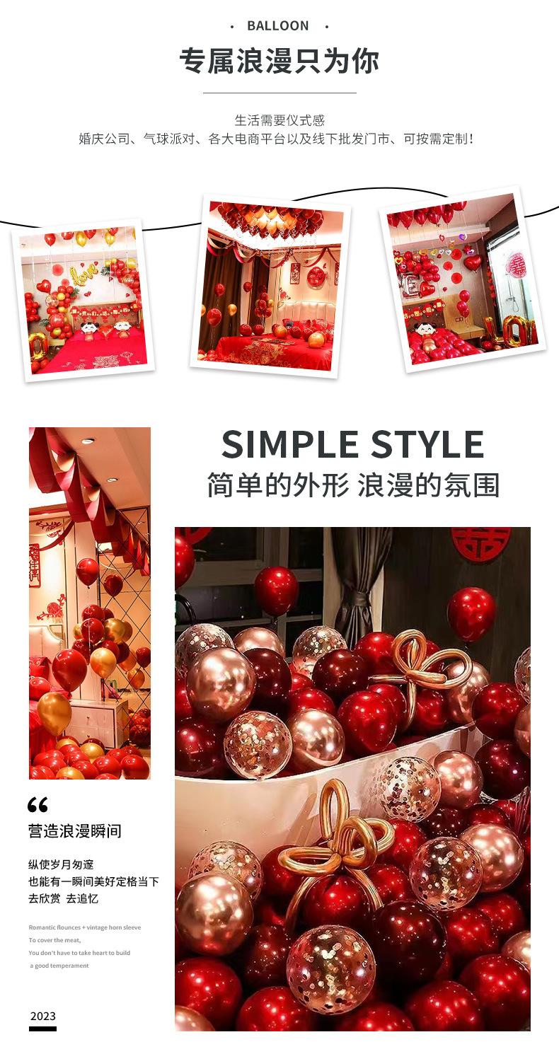 Diseño de sala de bodas, globo de boda, globo de boda de doble capa, grueso, color granada, rojo rubí, globo de compromiso para boda, suministros para boda