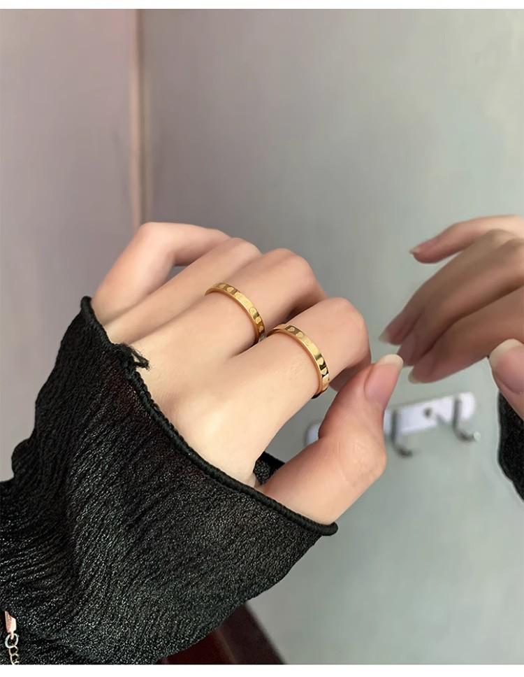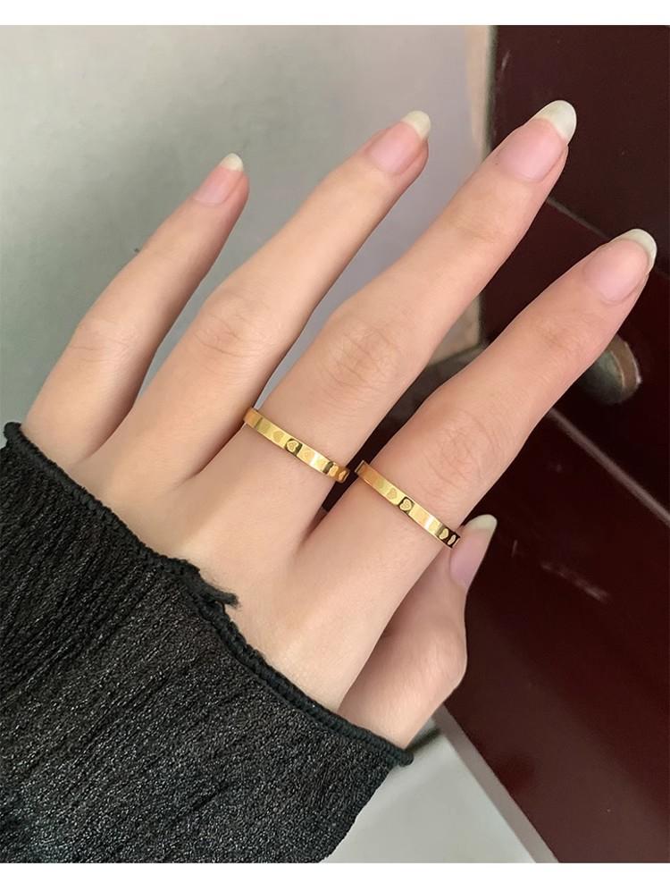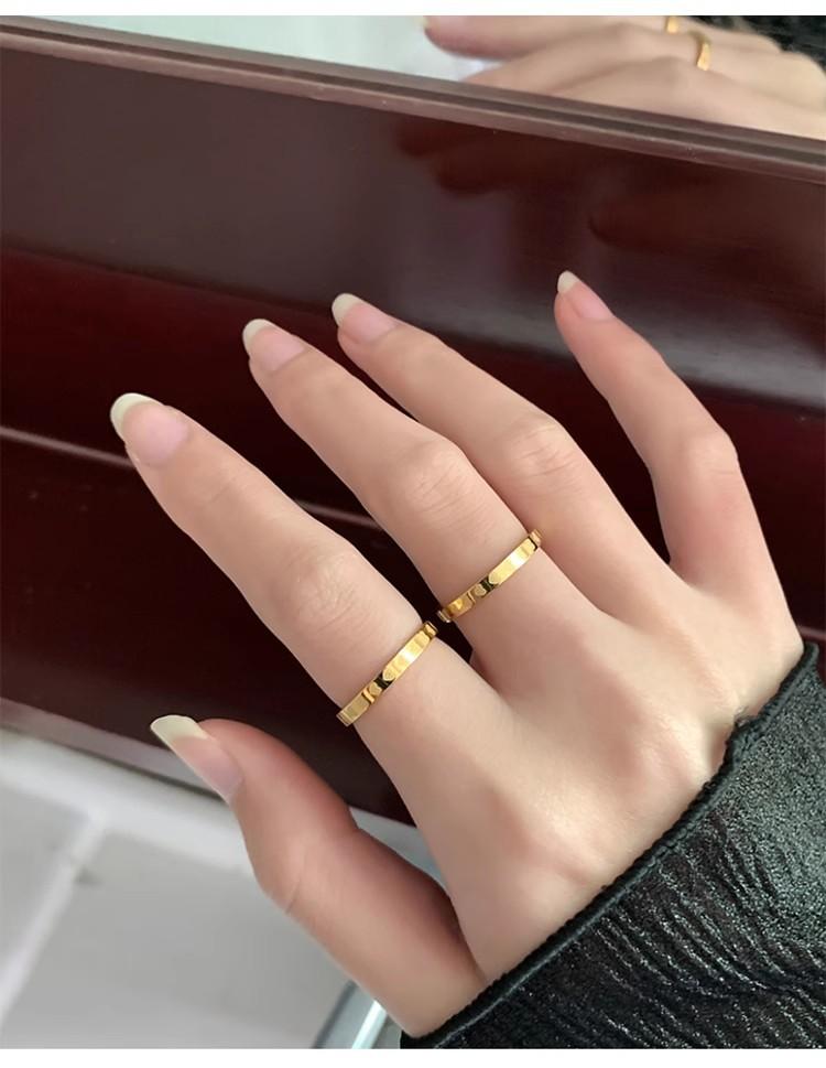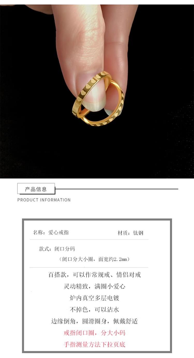 Anillo de amor de círculo completo de oro de 18 quilates de acero de titanio que no se desvanece, diseño de nicho femenino, ins simple, anillo liso para pareja, anillo de comida, marea