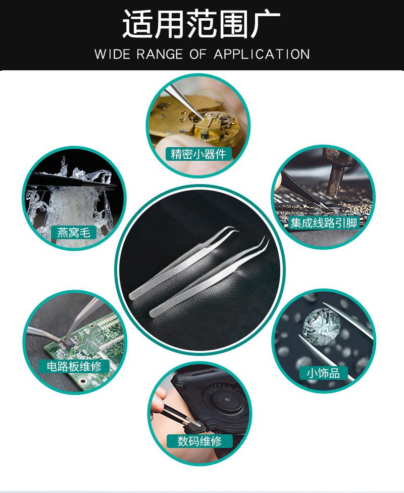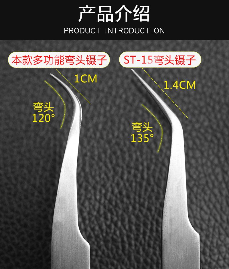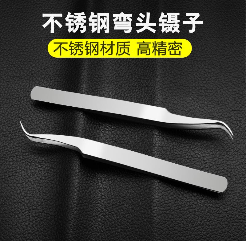 Oferta caliente pinzas de acero inoxidable punta doblada codo desmontaje teléfono móvil computadora máquina reparación clip injerto pestañas pinzas florecientes