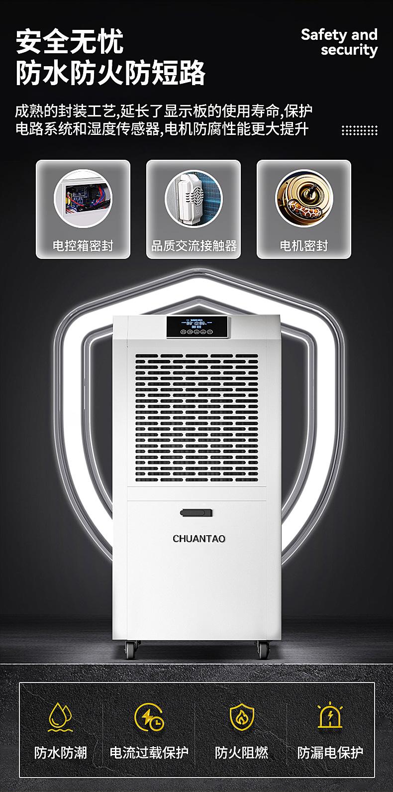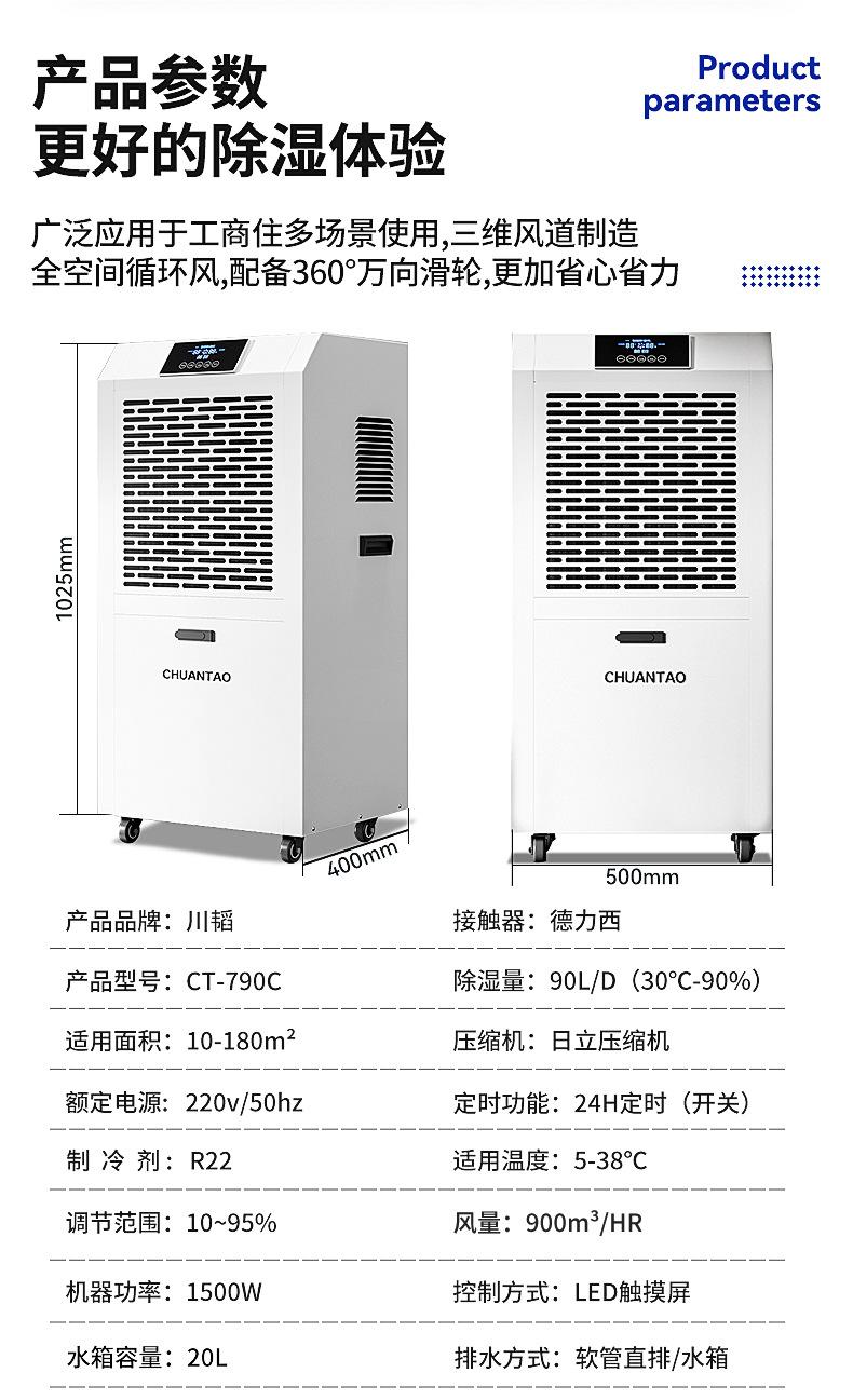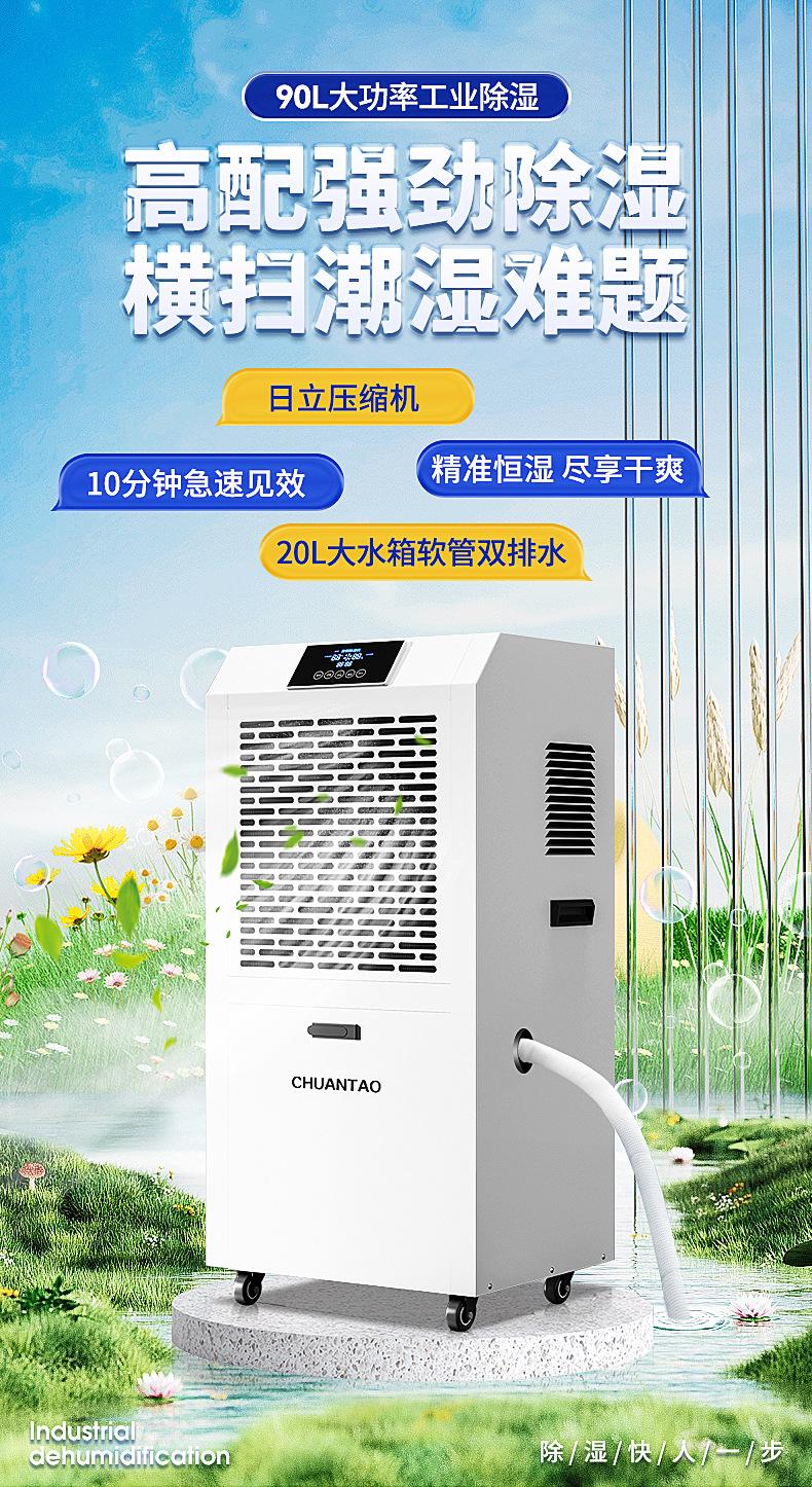 Deshumidificador industrial Chuan Tao con tanque de agua de 90 l, de alta potencia, para sótanos, villas, talleres y almacenes.
