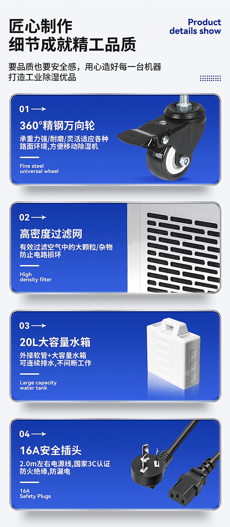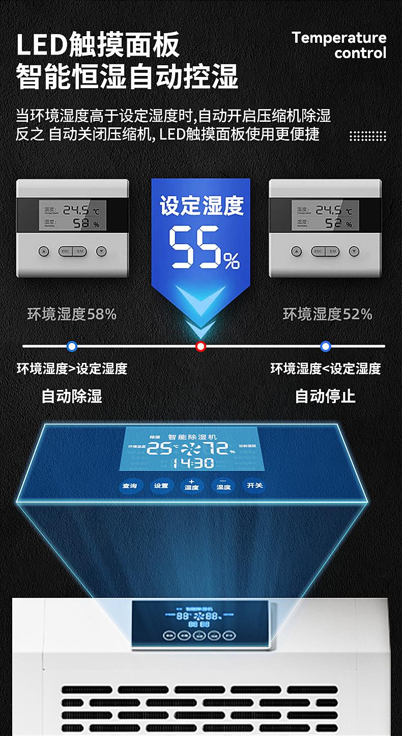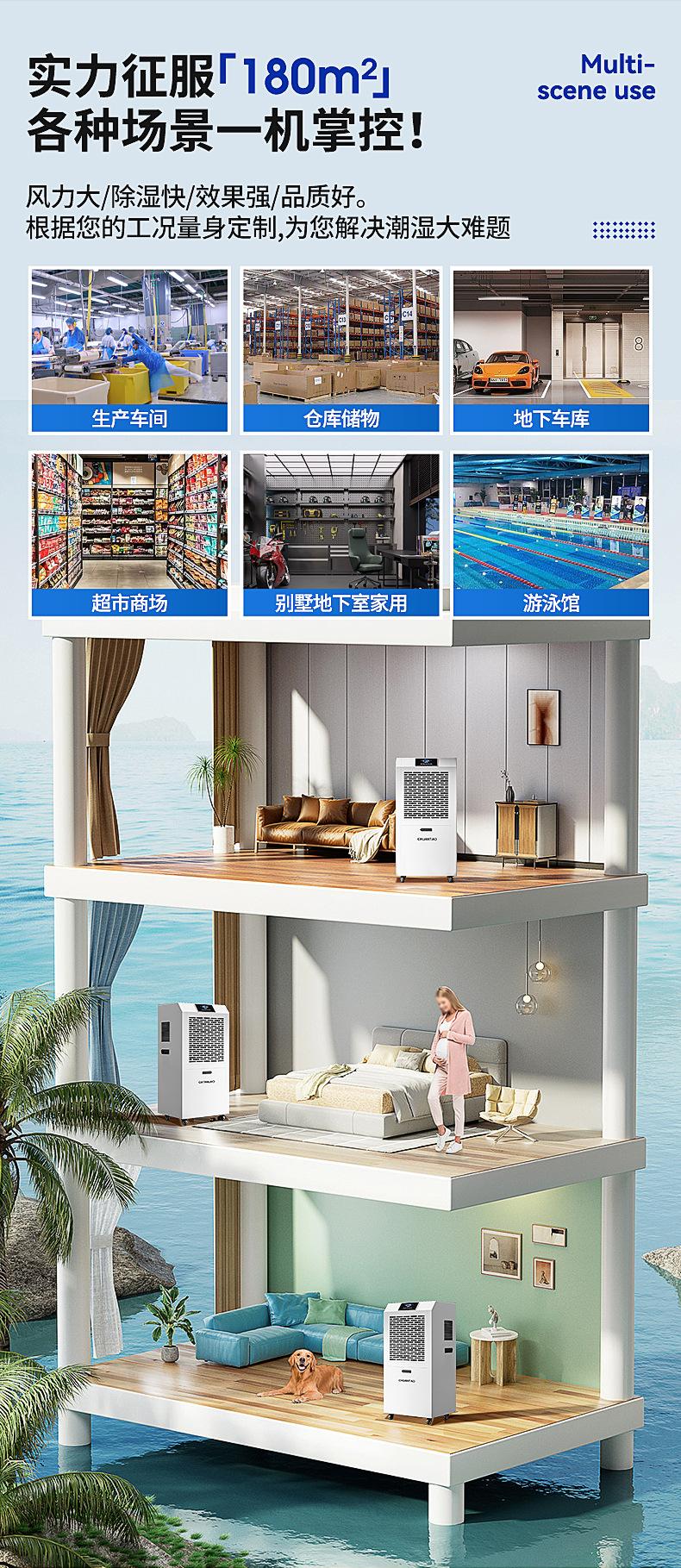 Deshumidificador industrial Chuan Tao con tanque de agua de 90 l, de alta potencia, para sótanos, villas, talleres y almacenes.