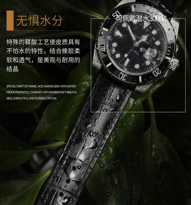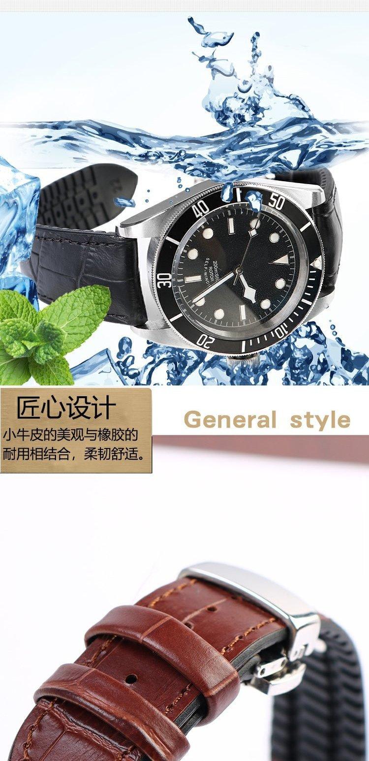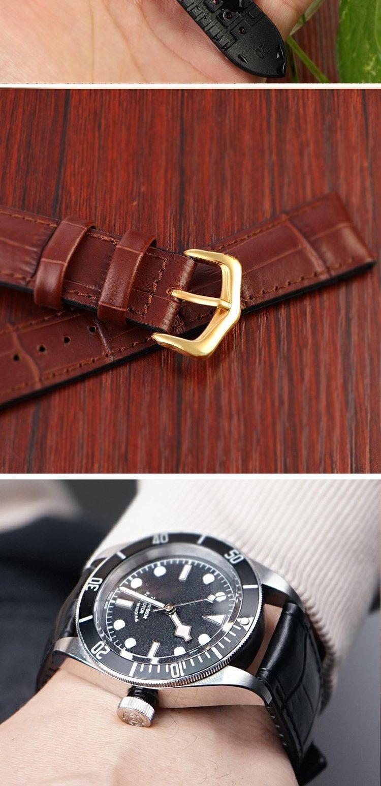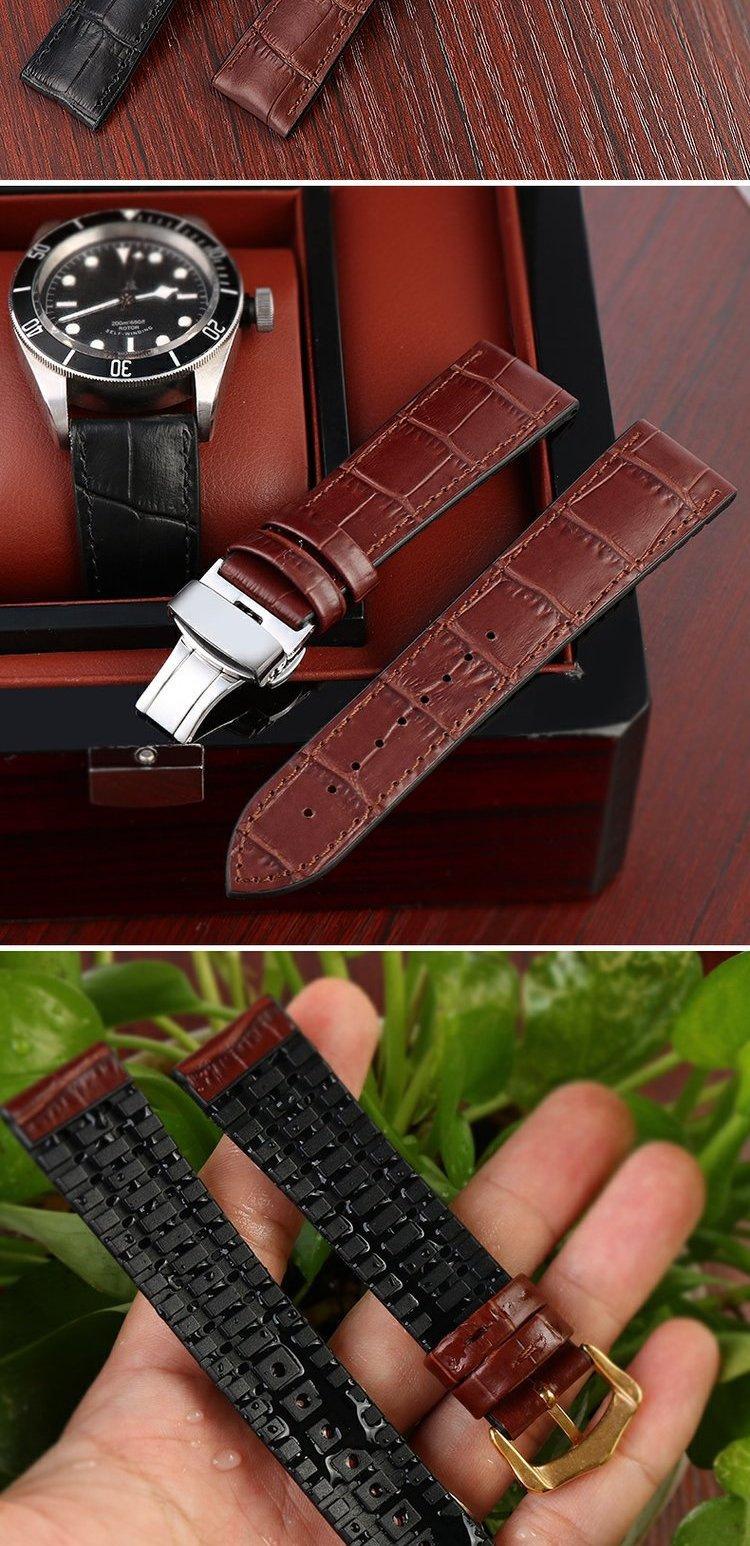 Correa de reloj de piel de cocodrilo, resistente al agua, de piel de becerro, resistente al desgaste y lavable de silicona, unisex.