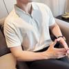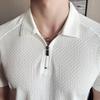 Camiseta de verano para hombre de tela de seda helada de malla seersucker, polo fino de alta elasticidad con media cremallera, camiseta de manga corta para hombre