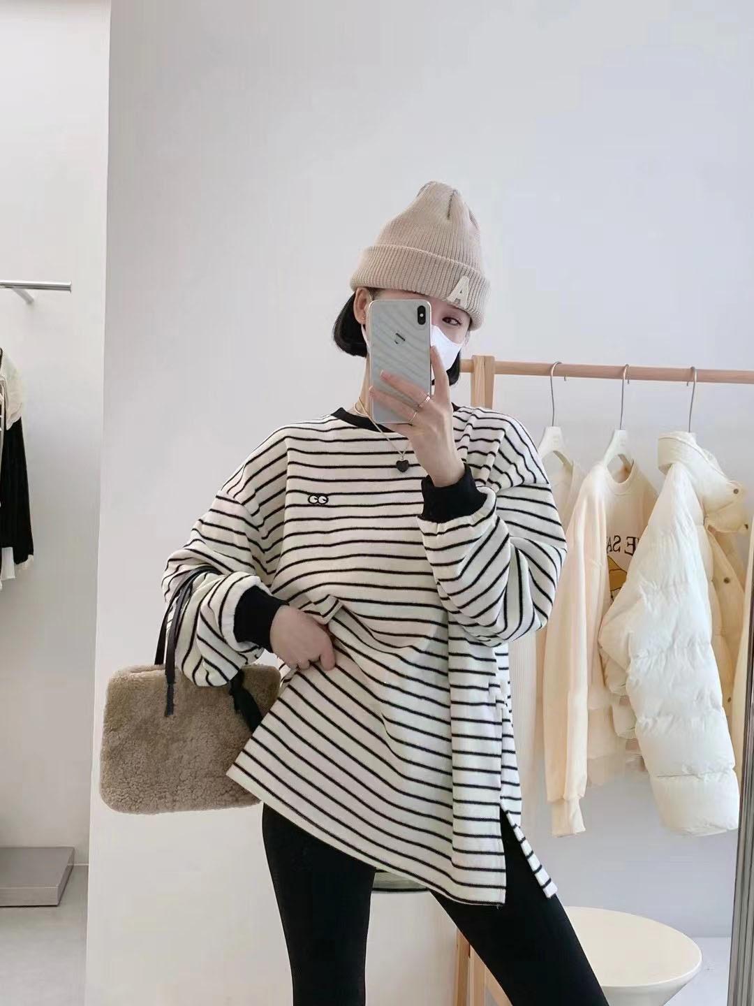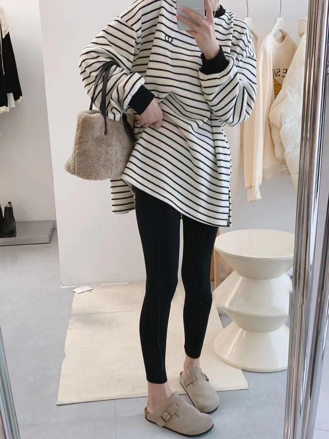 White stripes [fleece-lined thickening]], Black stripes [fleece-lined thickening]]