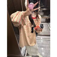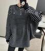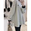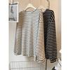 Camiseta de Manga Larga de Algodón Puro a Rayas Delgada Coreana Retro a Rayas con Bloque de Color para Mujer Primavera Otoño Top Versátil Holgado