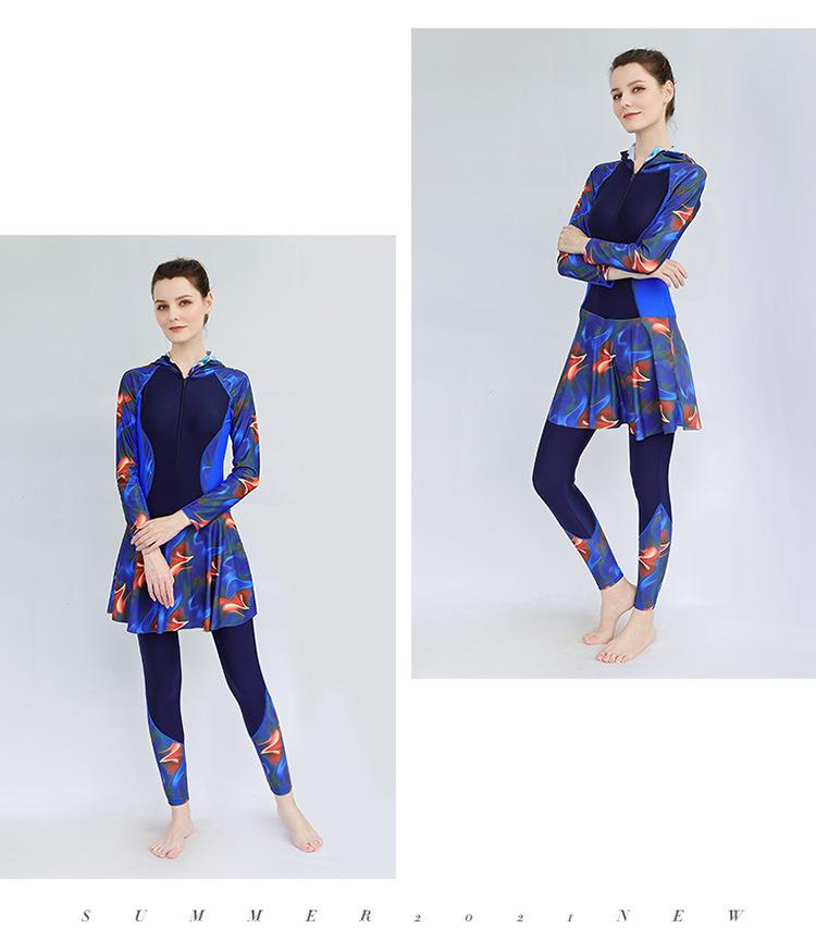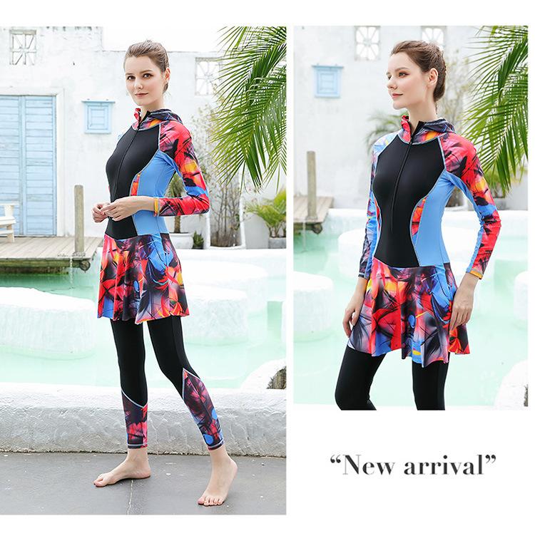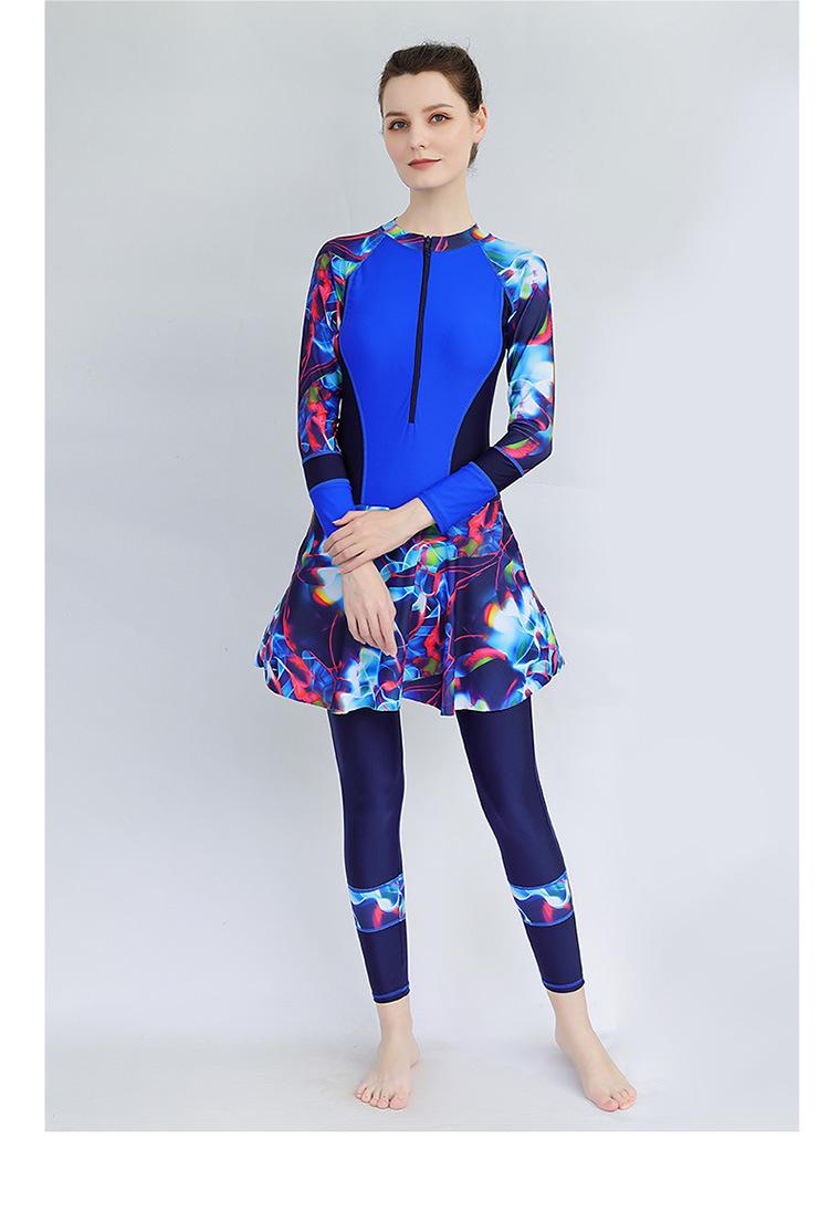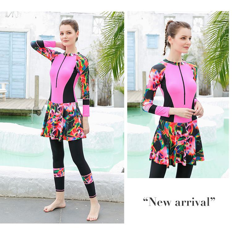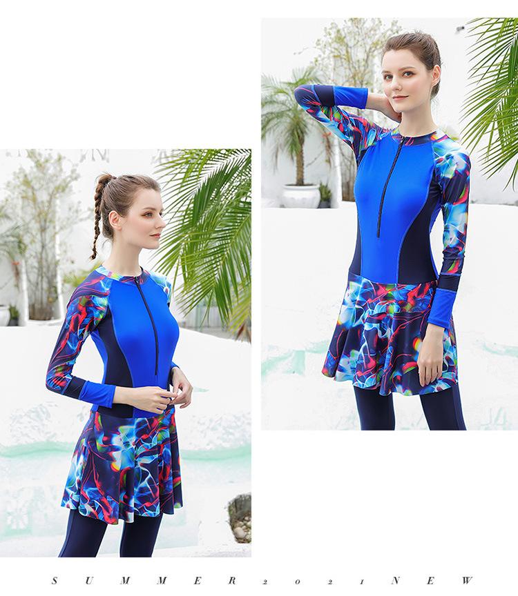 Traje de Baño Rash Guard de Cuerpo Completo de Manga Larga para Mujer con Protección Solar Estilo Falda Talla Grande