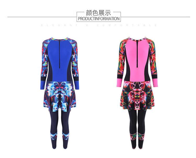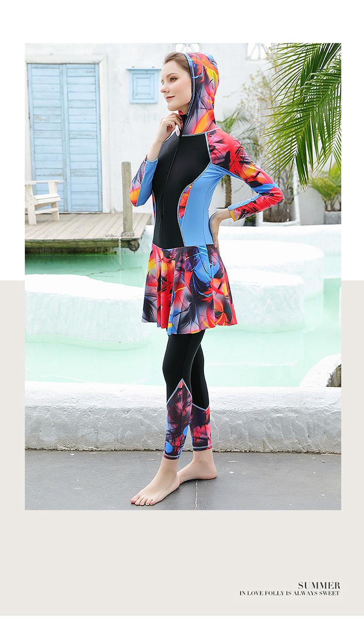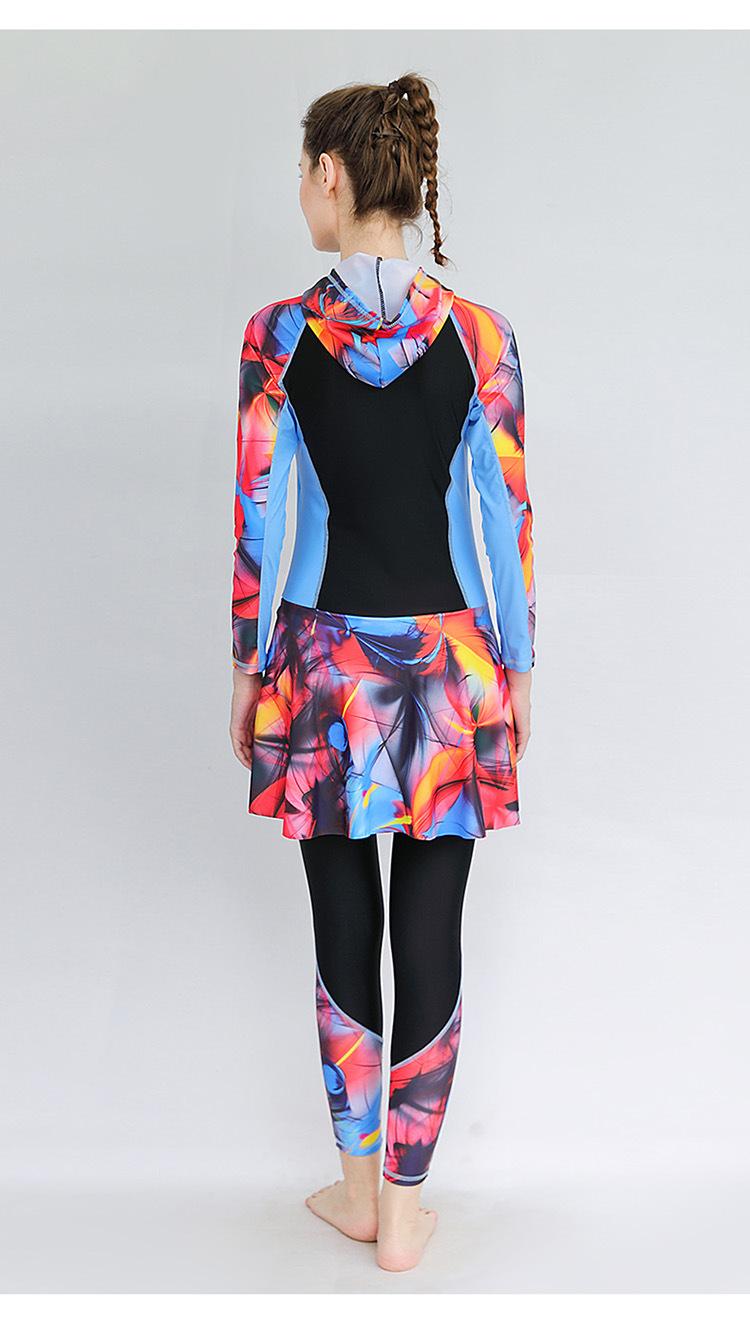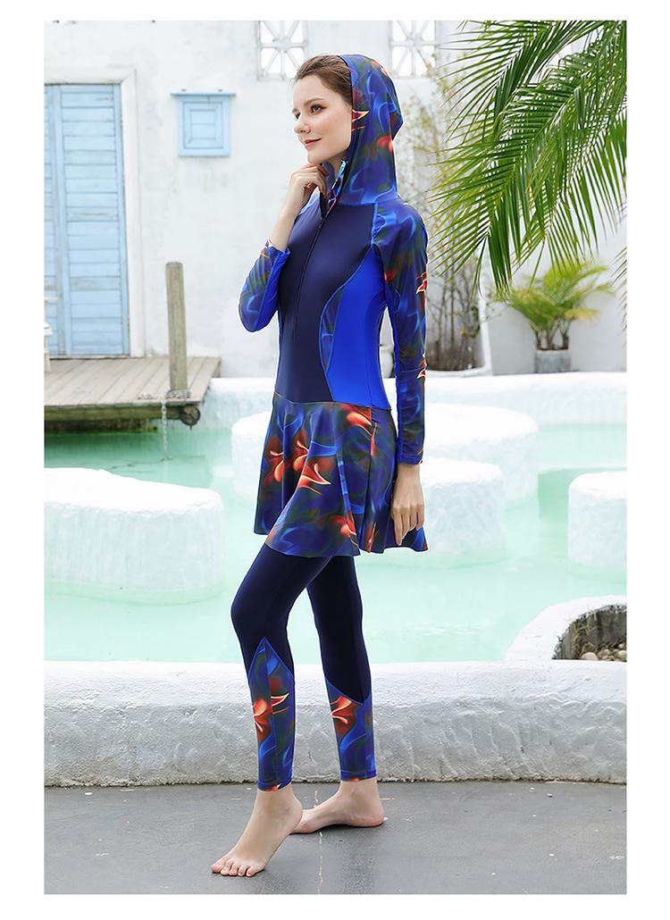 Traje de Baño Rash Guard de Cuerpo Completo de Manga Larga para Mujer con Protección Solar Estilo Falda Talla Grande