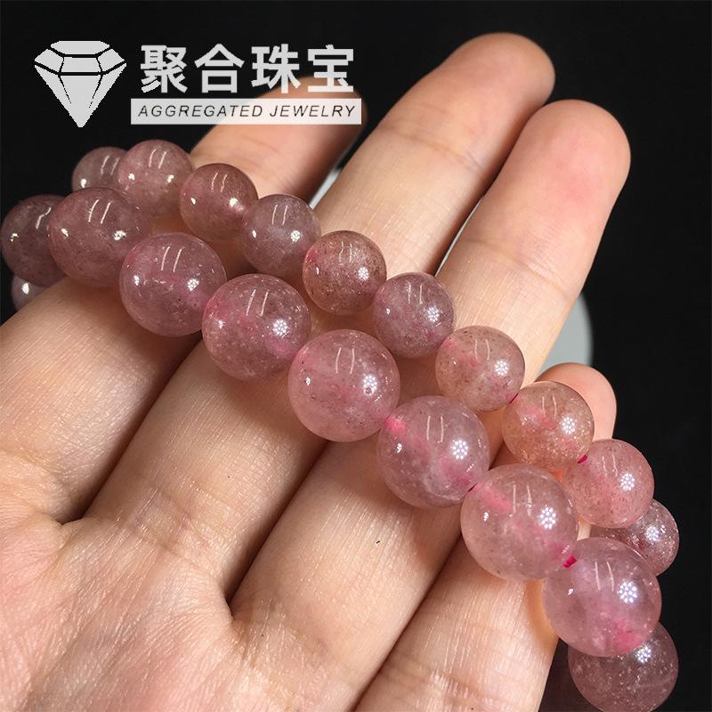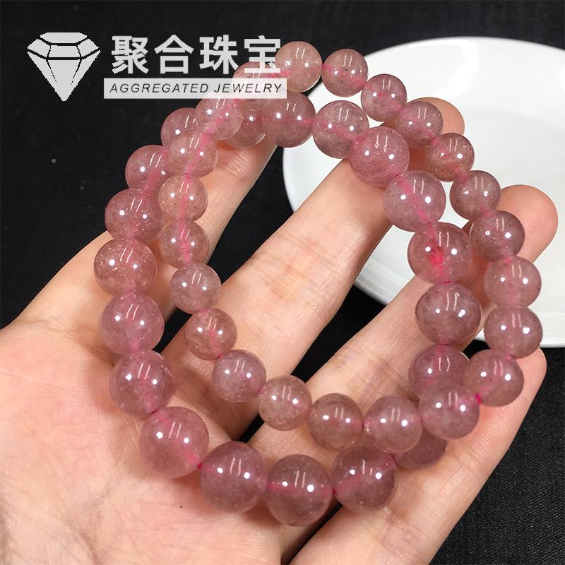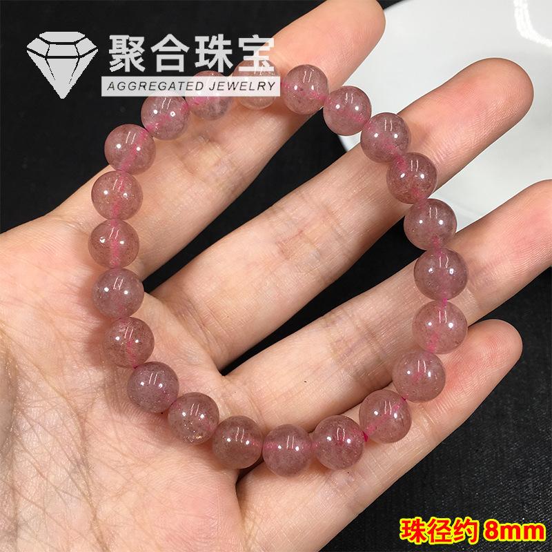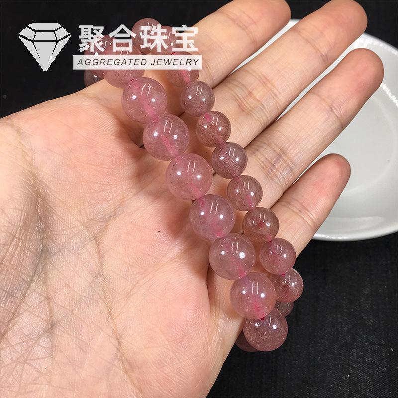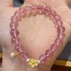 Pulsera de cristal de fresa natural pulsera anillo único cristal rosa claro cristal de fresa joyería femenina pulsera de joyería simple