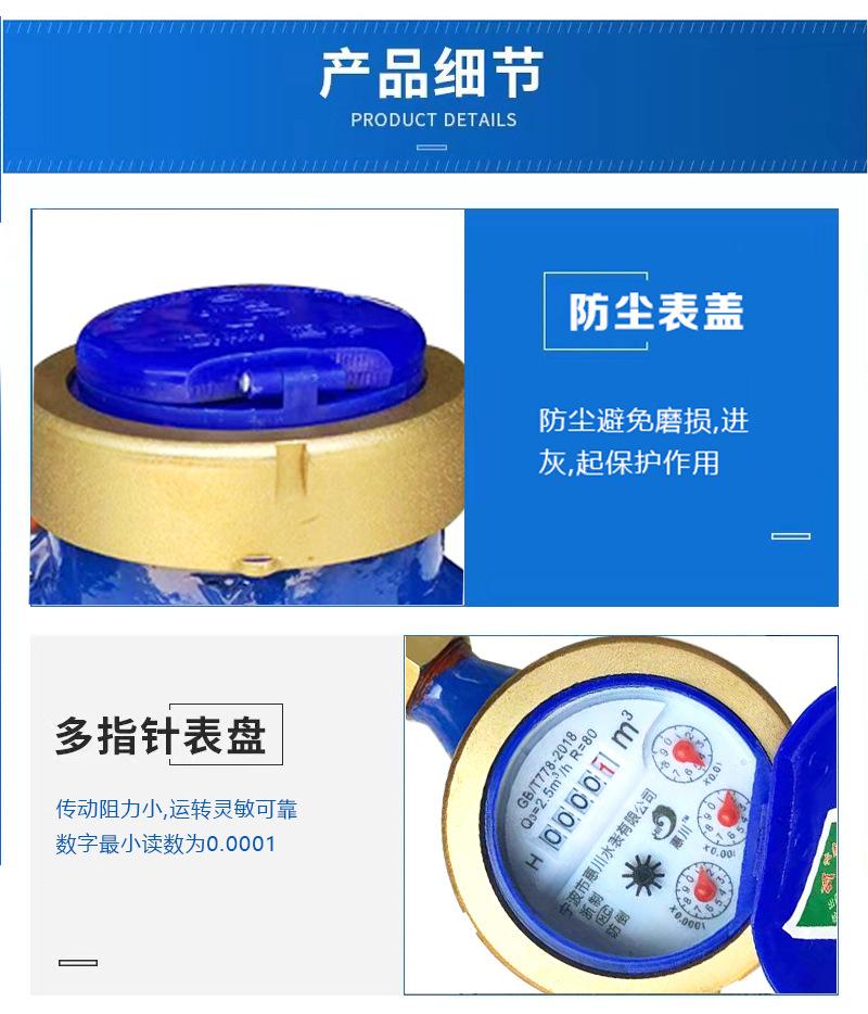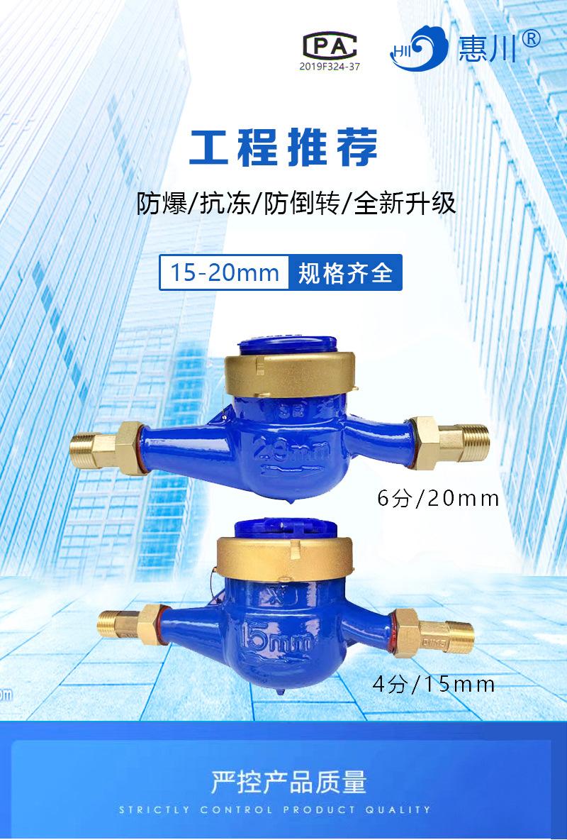 Medidor de agua Ningbo dn15 tipo rotor, agua del grifo, 4 puntos, rosca horizontal, medidor mecánico de agua fría, medidor de agua húmeda de cobre.