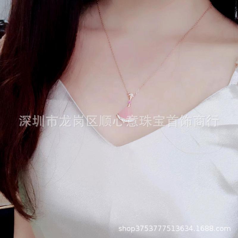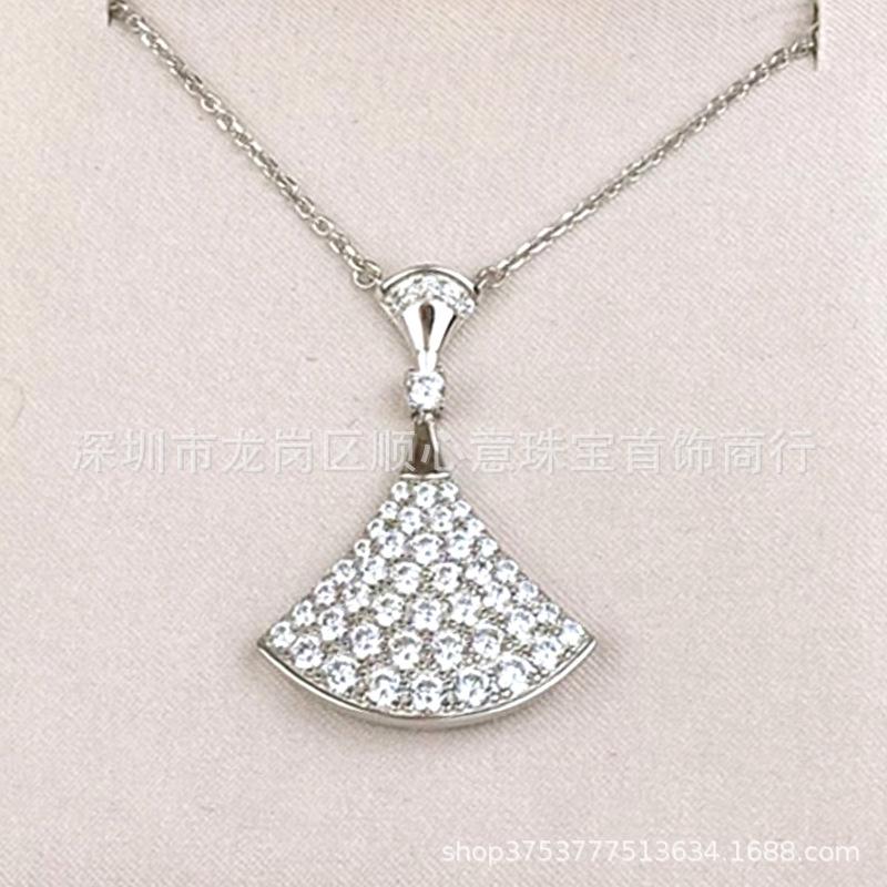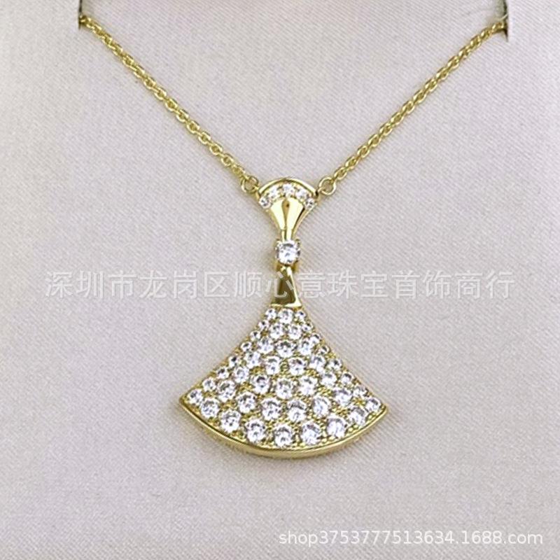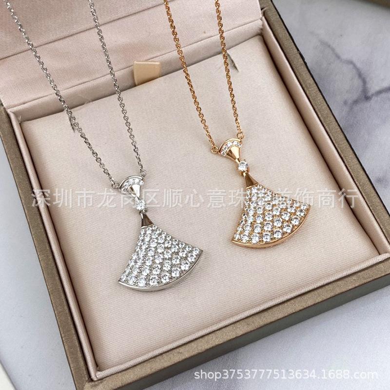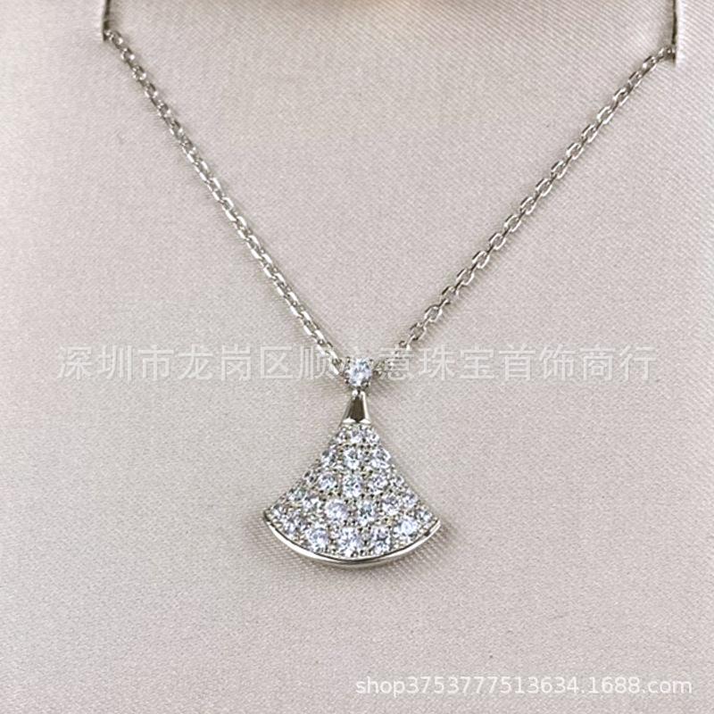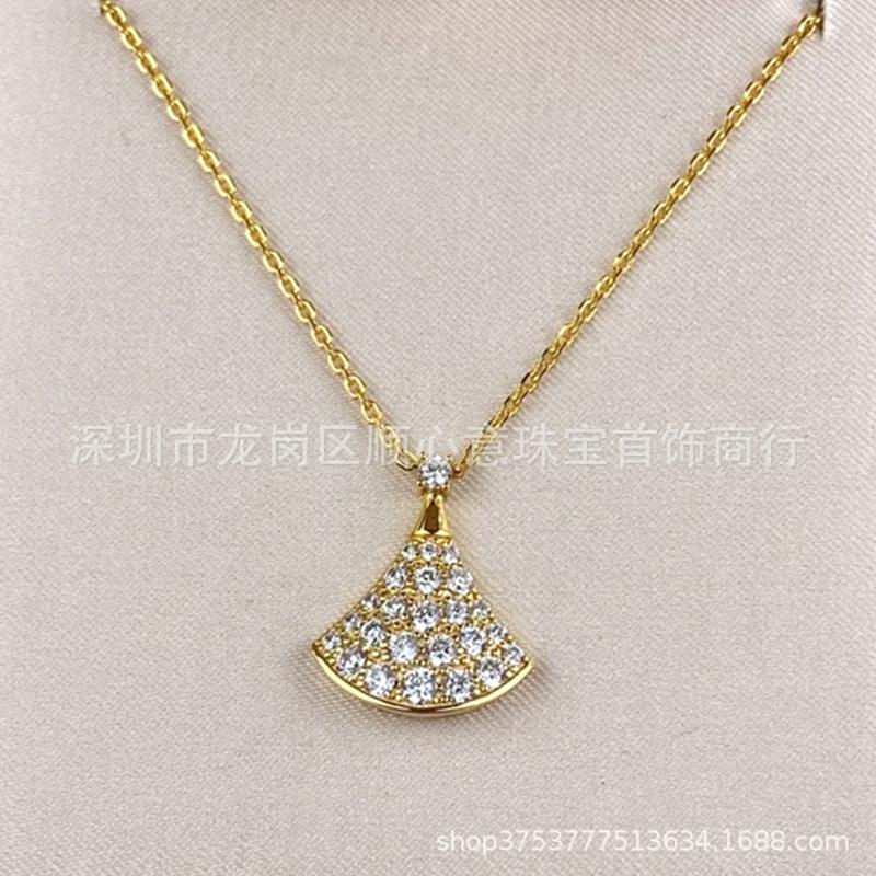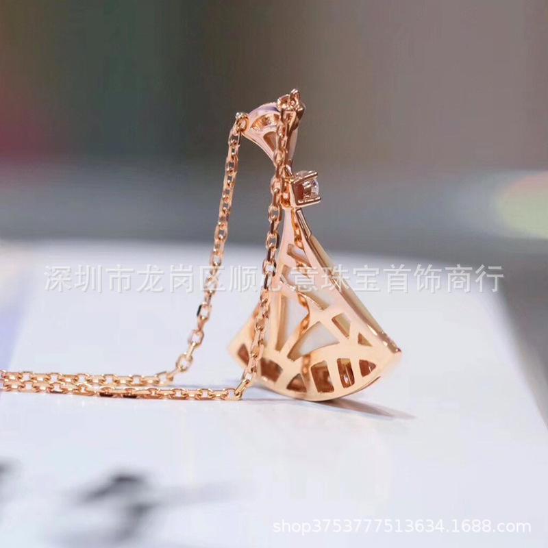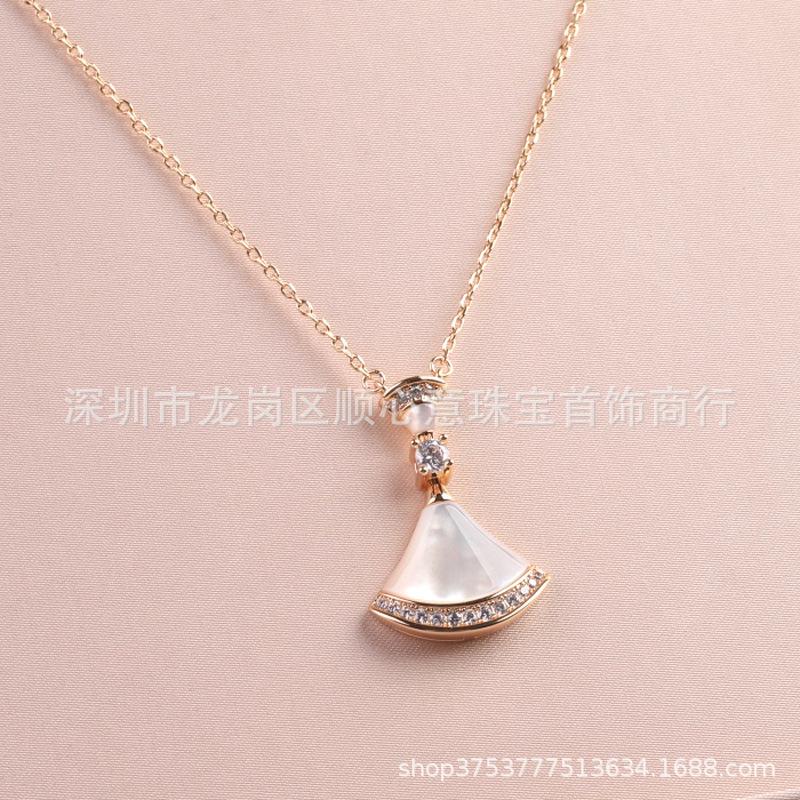 Collar Falda Plata 925 Chapado en Oro de 18K Gipsófila Calcedonia Fritillaria Forma de Abanico Personalidad Moda Dama Collar Falda