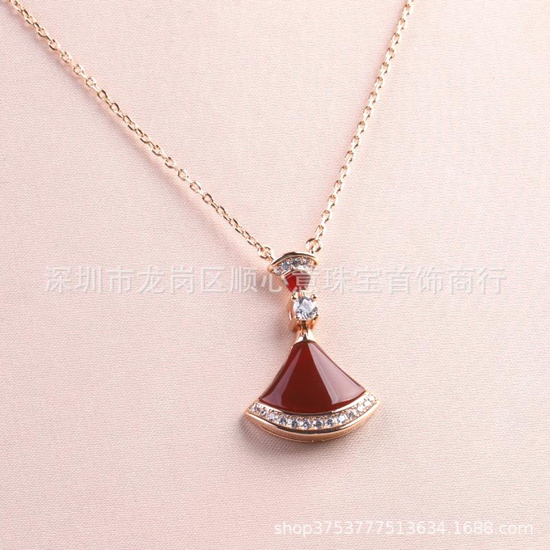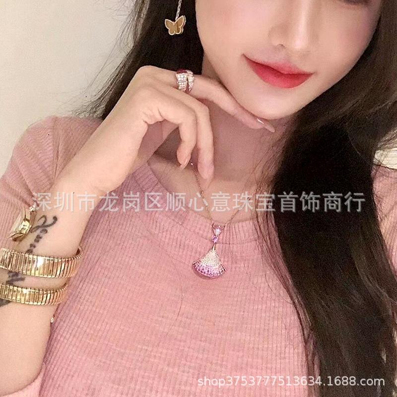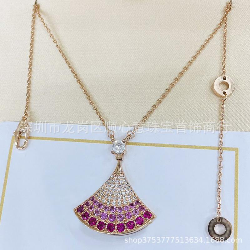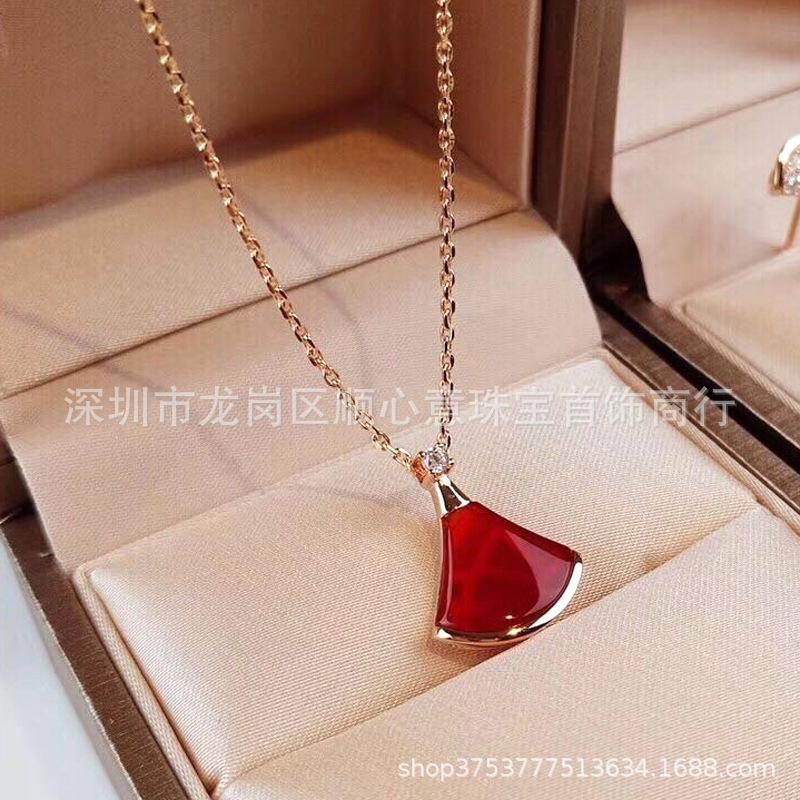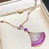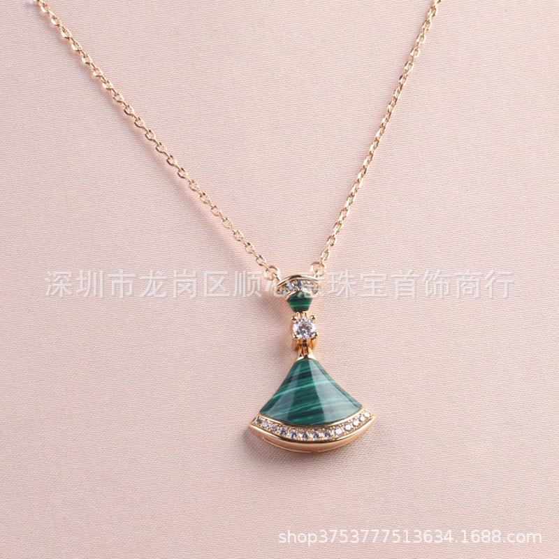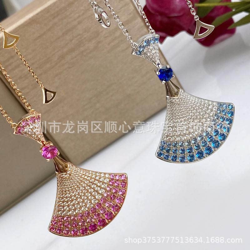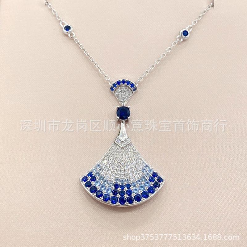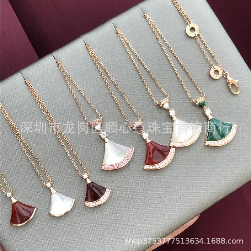 Collar Falda Plata 925 Chapado en Oro de 18K Gipsófila Calcedonia Fritillaria Forma de Abanico Personalidad Moda Dama Collar Falda