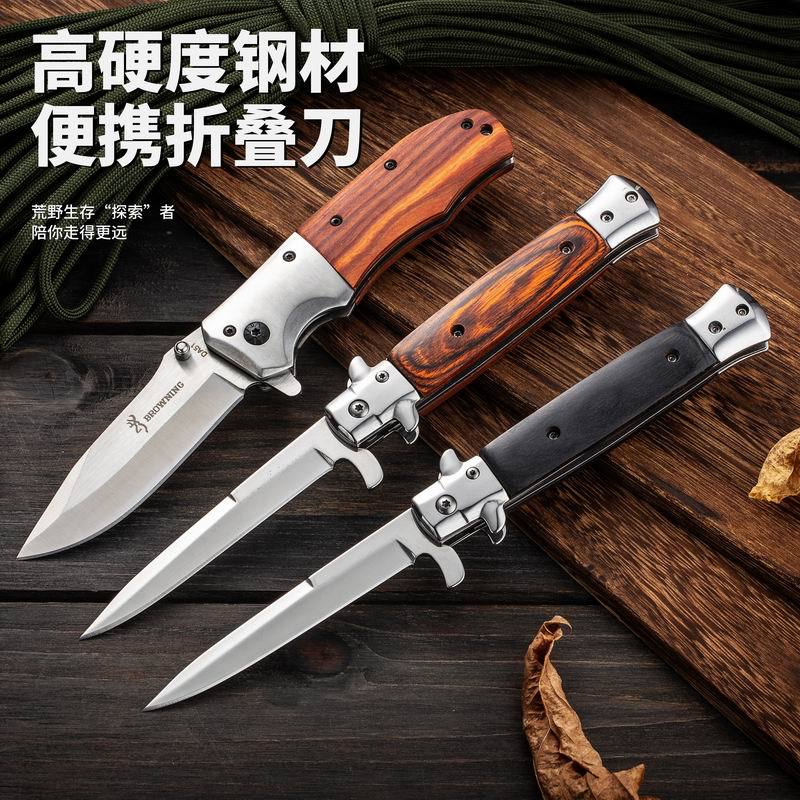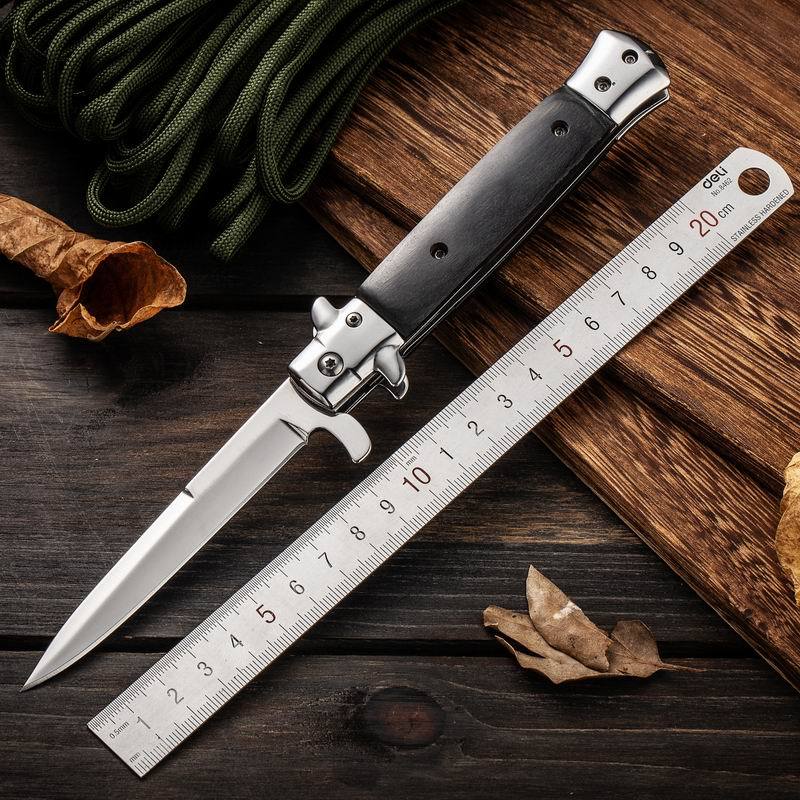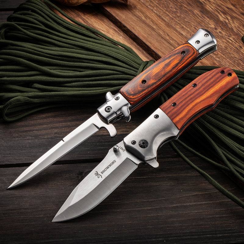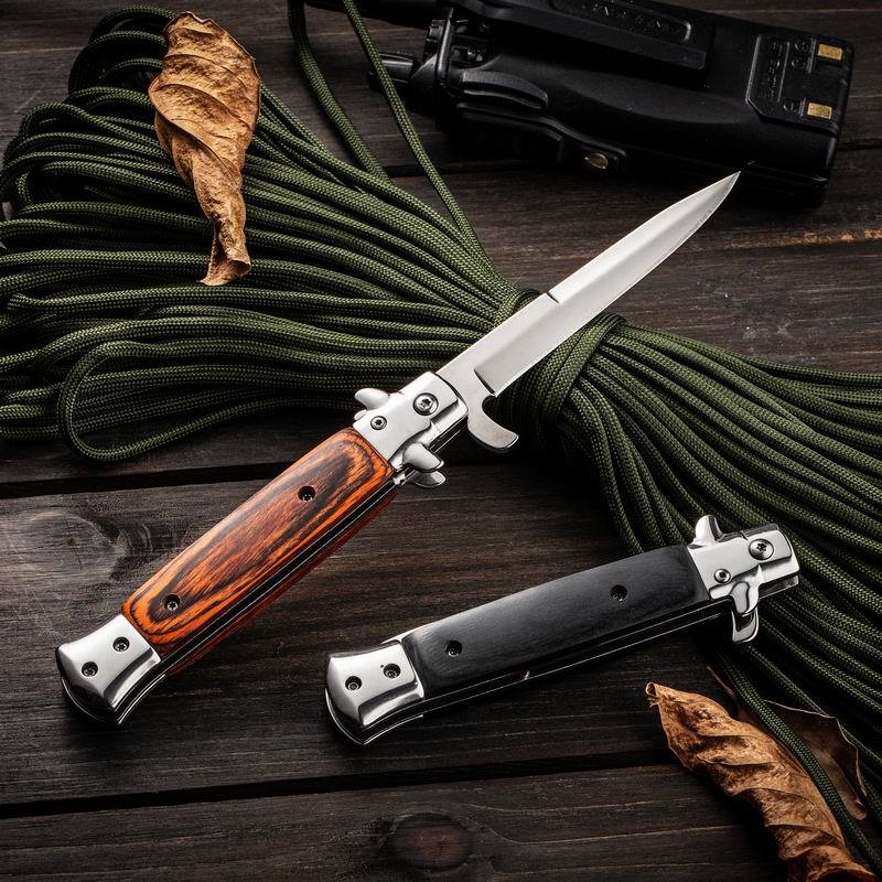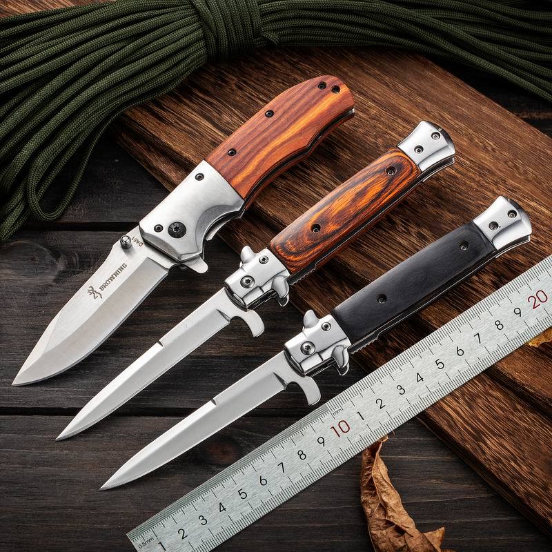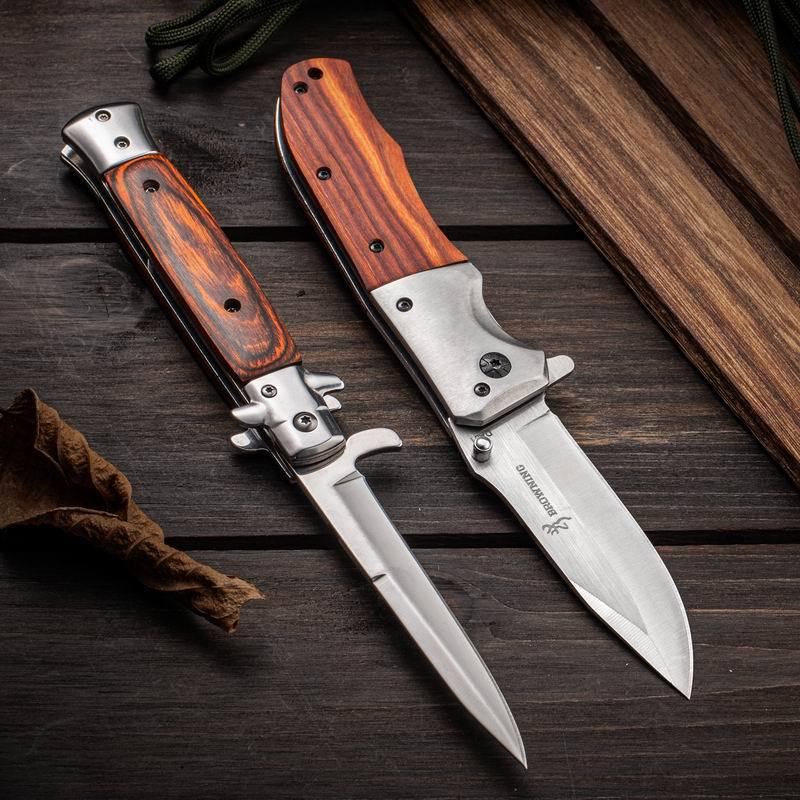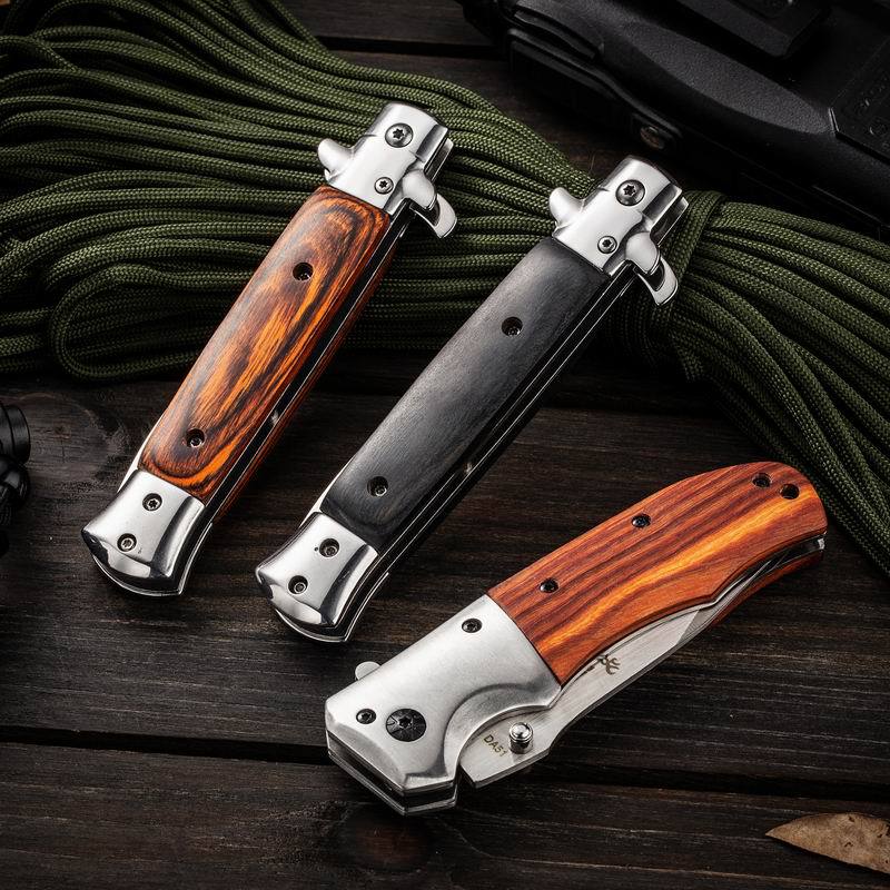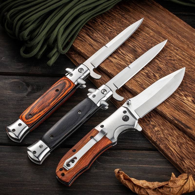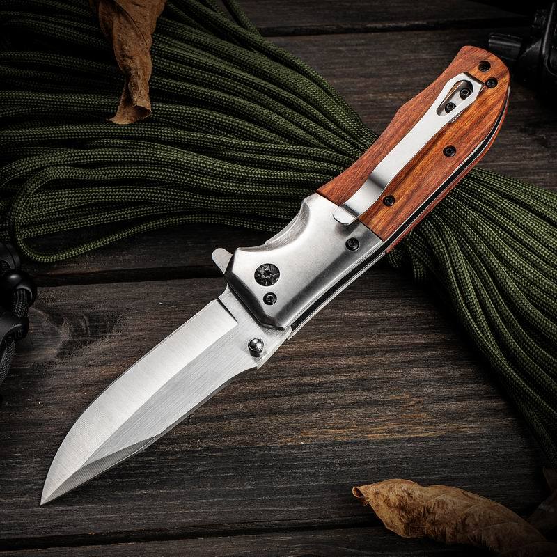 Suministro Directo de Fábrica Cuchillo Yangjiang para Acampada al Aire Libre Portátil de Alta Dureza Acero Inoxidable Mango de Madera de Color Cuchillo Plegable