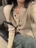 Cárdigan de punto con cuello en V estilo perezoso de alta calidad para mujer, diseño de suéter, abrigo ajustado de nicho para otoño e invierno, manga larga.