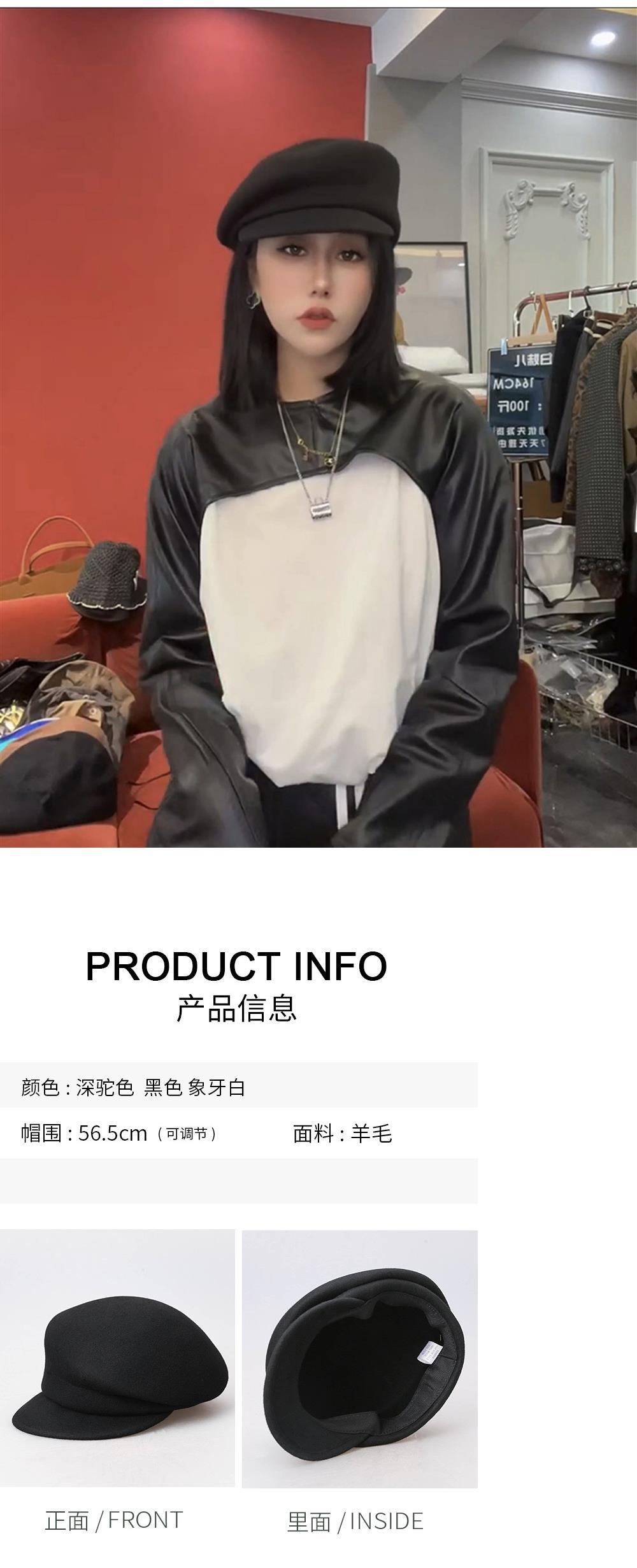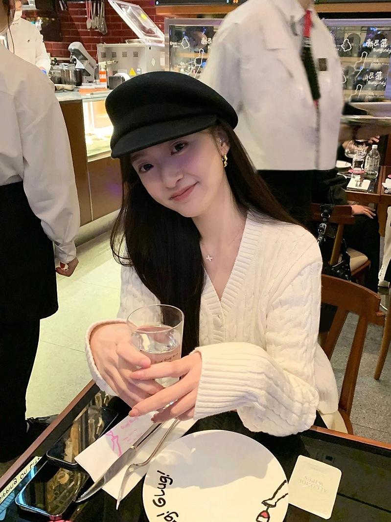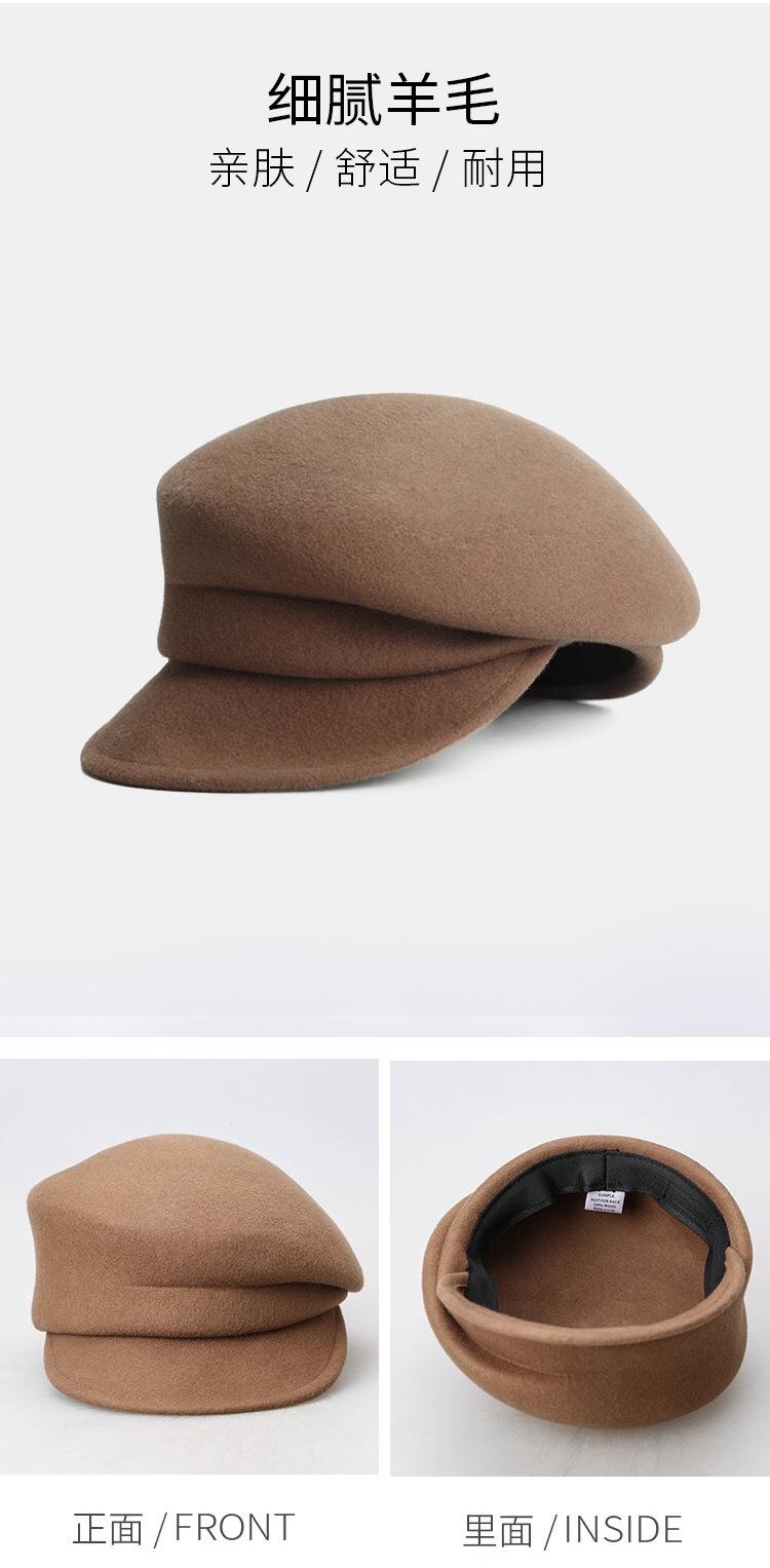 Sombrero de lana de otoño e invierno gorra con visera para mujer estilo europeo moderno que hace que la cara se vea pequeña sombrero octogonal retro británico de copa alta popular en línea
