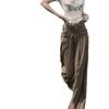 Pantalones anchos informales marrones estilo americano retro para mujer, primavera y verano, cintura alta, diseño Dape, estilo nicho, ajustados.