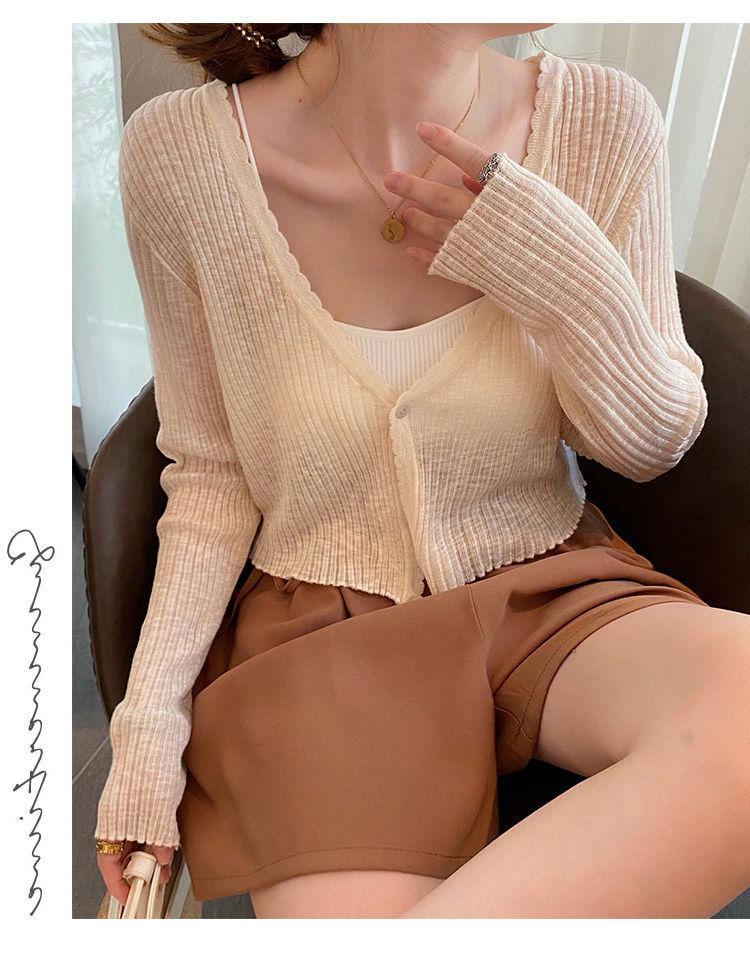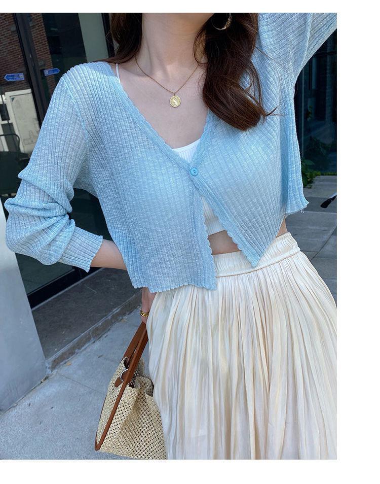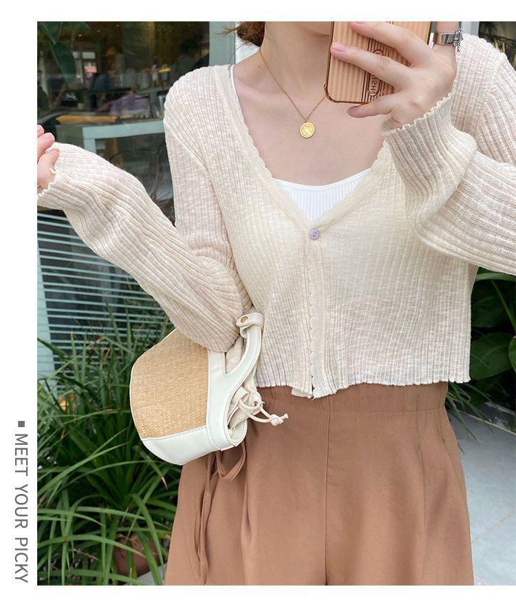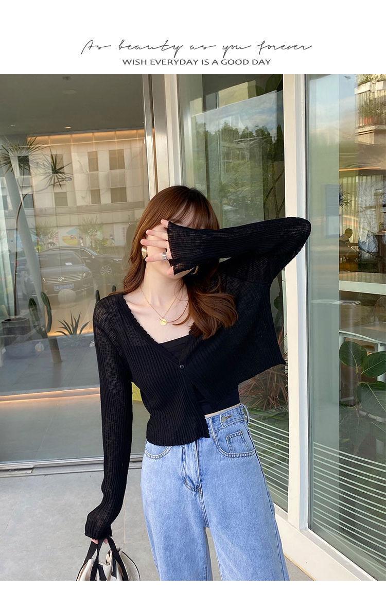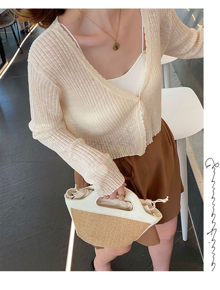 Cárdigan de punto con protector solar para mujer, novedad de verano 2023, blusa exterior fina y suelta, chaqueta chal corta de seda helada