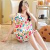 Pijama de verano de cuatro piezas para mujer, estilo nuevo, de algodón de imitación, camisón de manga corta, ropa de abrigo de alta calidad, jersey de dibujos animados, ropa para el hogar.